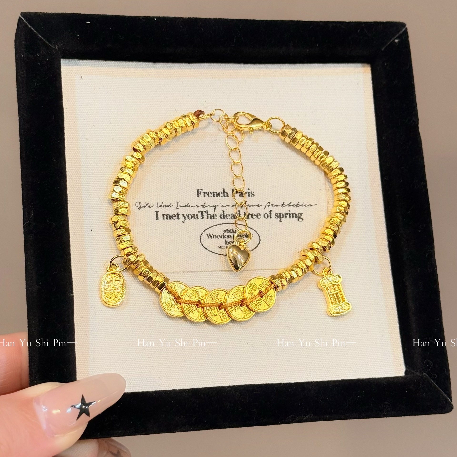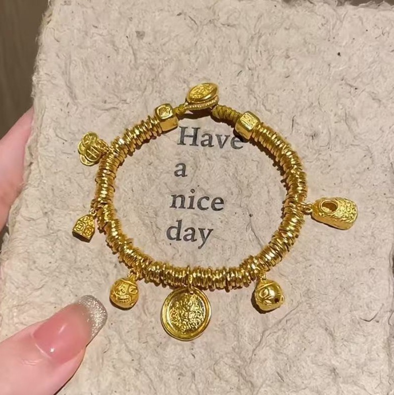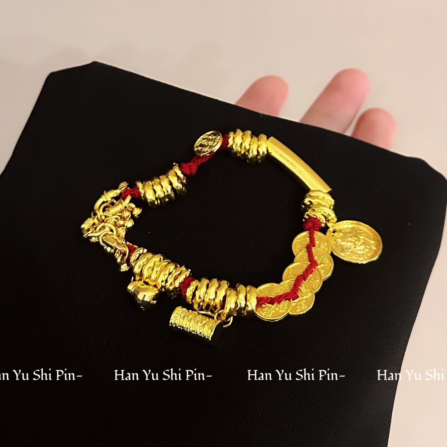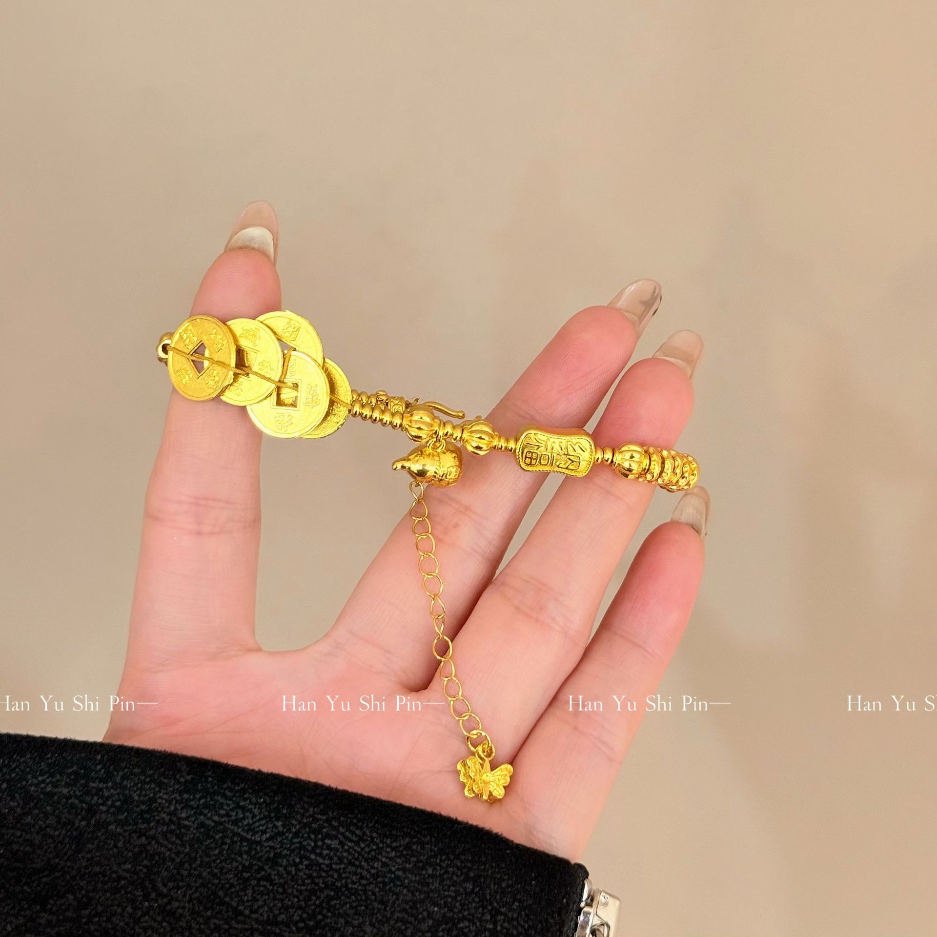 复古五帝钱盘缠手链时尚新中式金色葫芦吊坠手环轻奢高级感手串