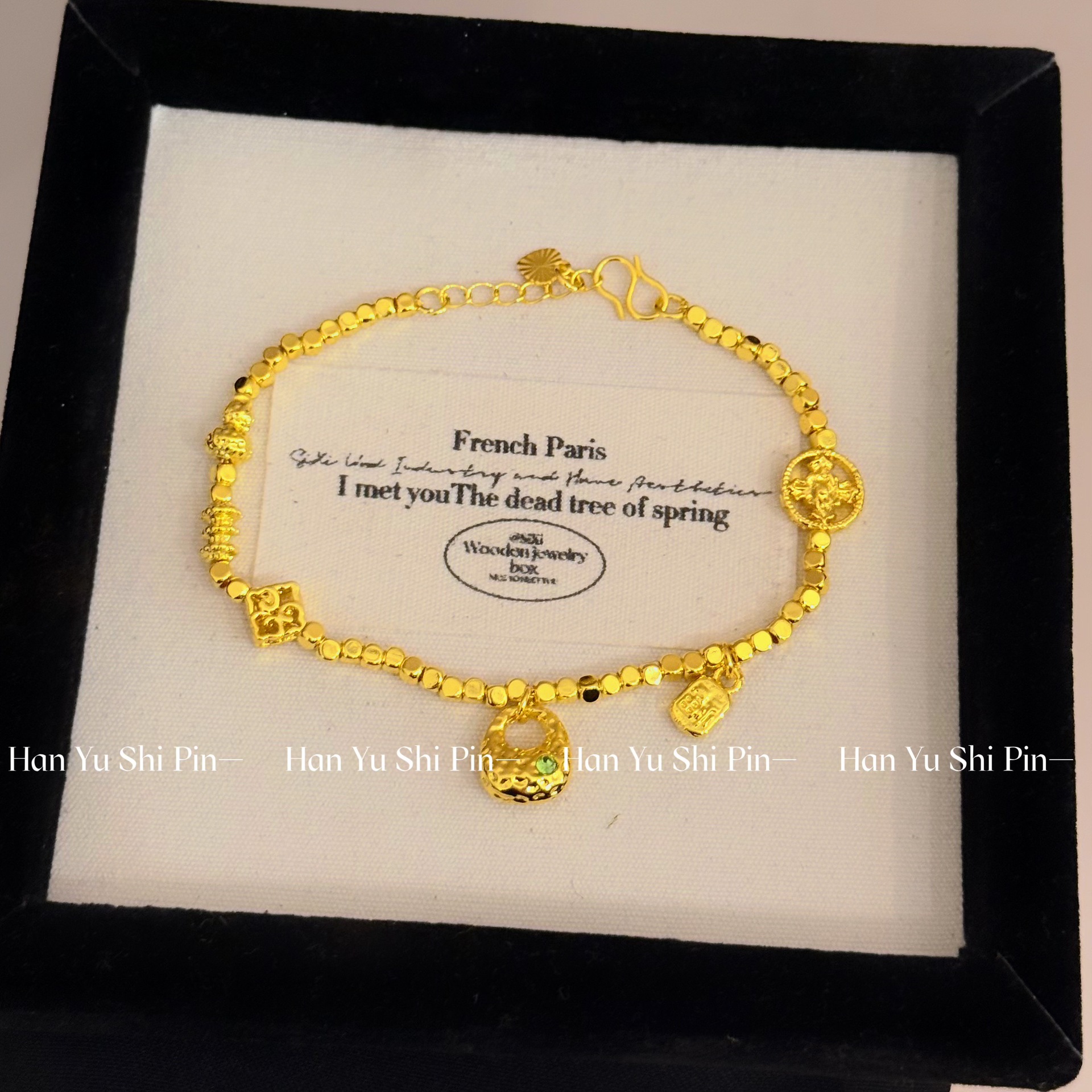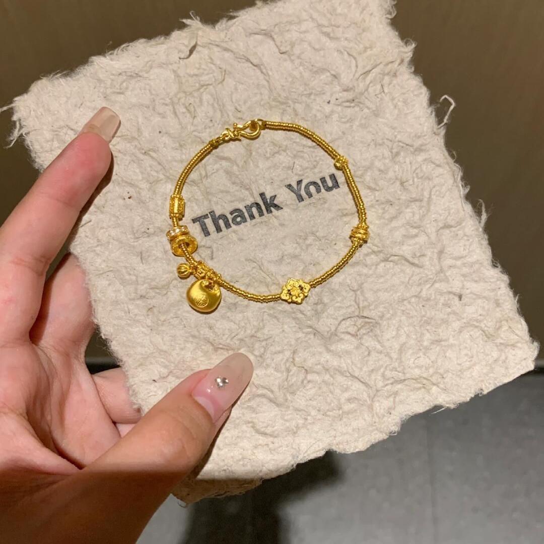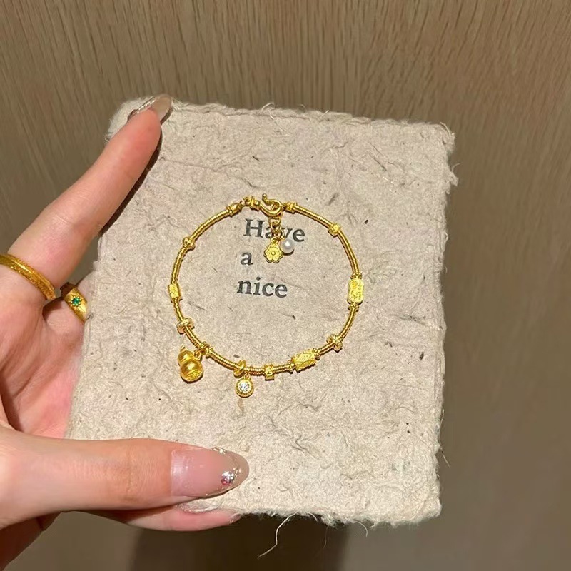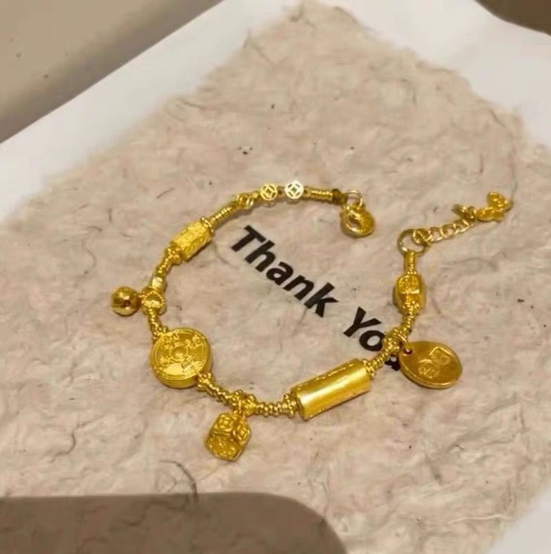 复古五帝钱盘缠手链时尚新中式金色葫芦吊坠手环轻奢高级感手串