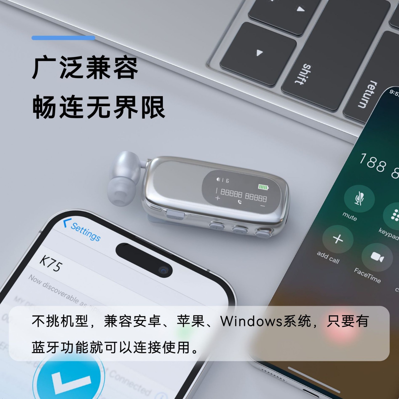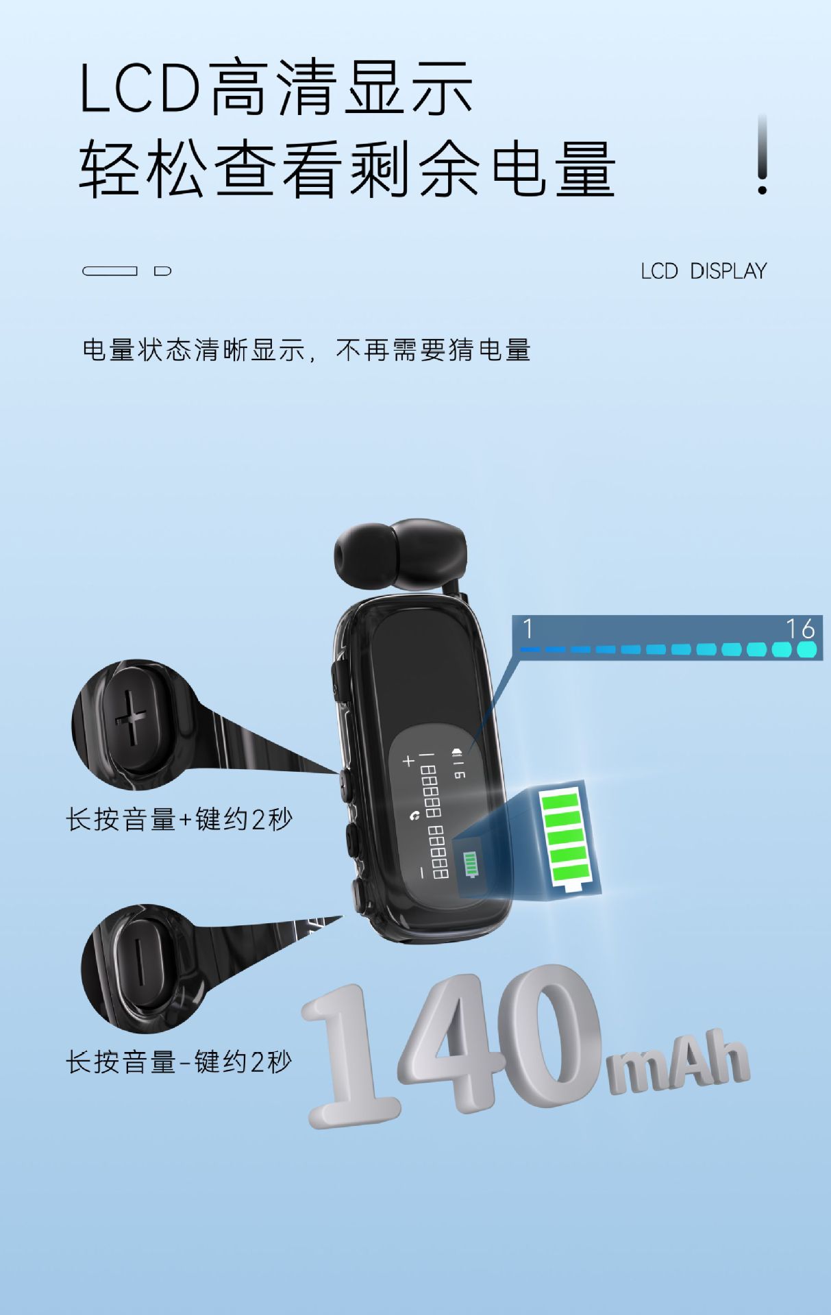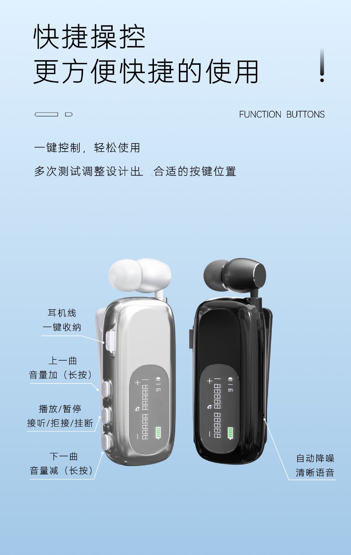 新款V5.4无线入耳式超长续航数显降噪跨境单耳拉线领夹式耳机