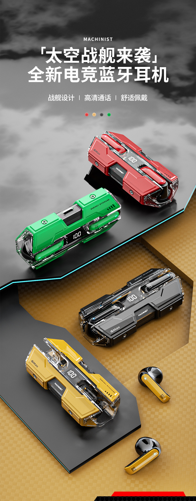 华强北新款机甲耳机GM20无线蓝牙耳机游戏低延迟tws 蓝牙耳机TC04