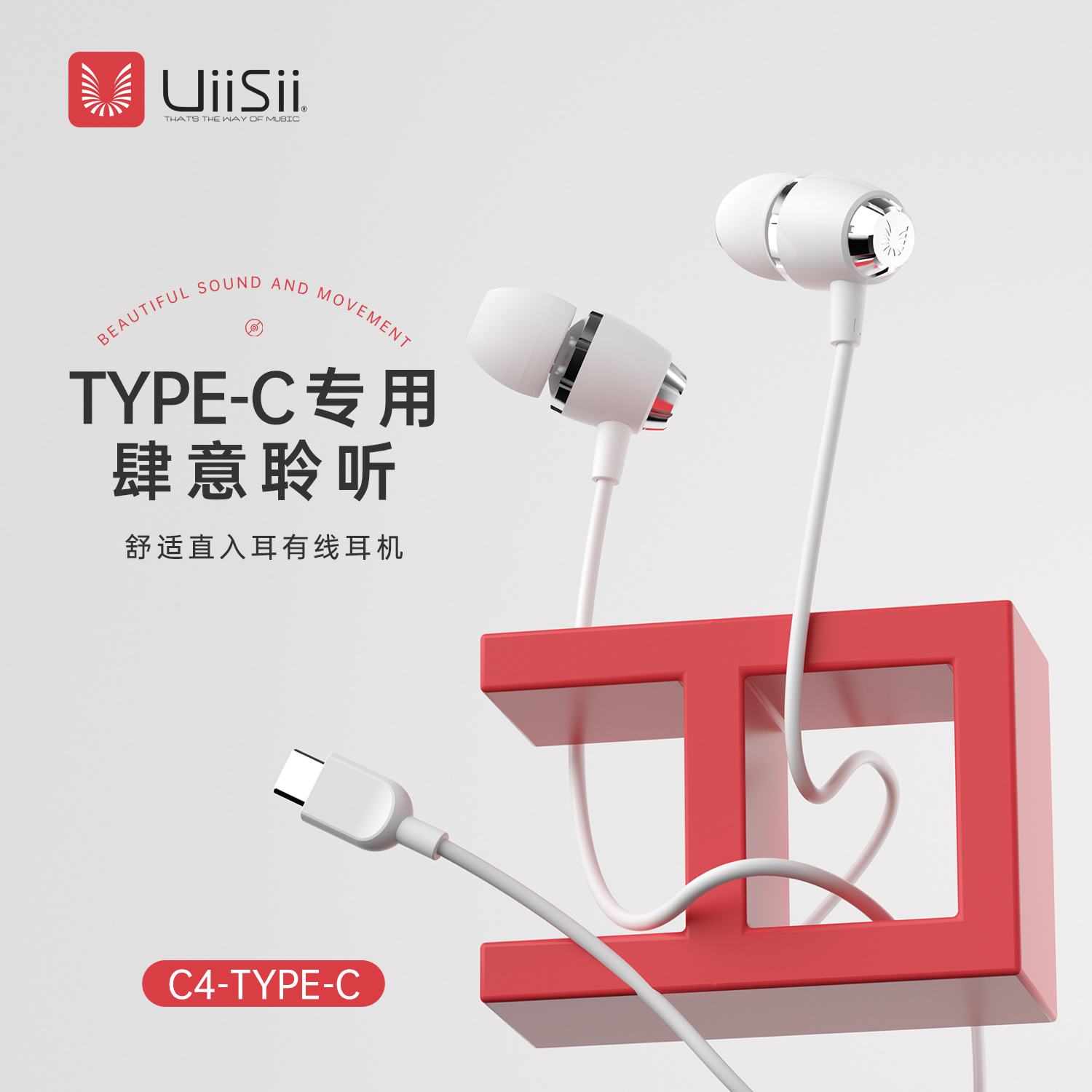 UiiSii新品C4线控耳机type-c接口入耳式重低音带麦高音质有线耳机