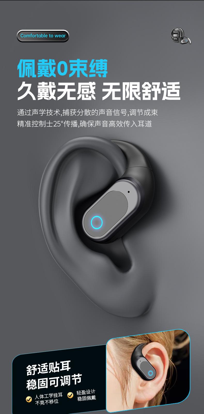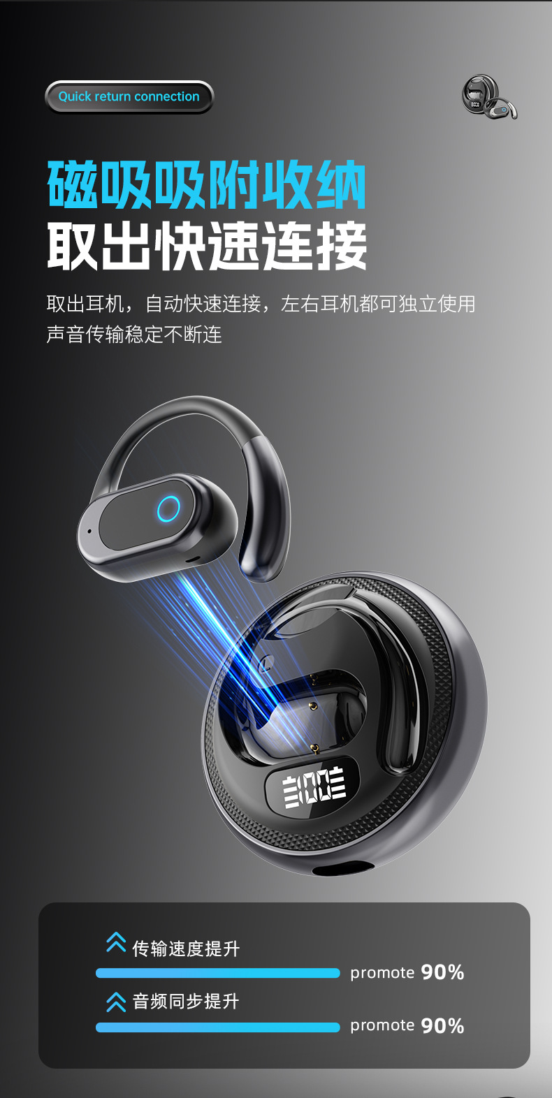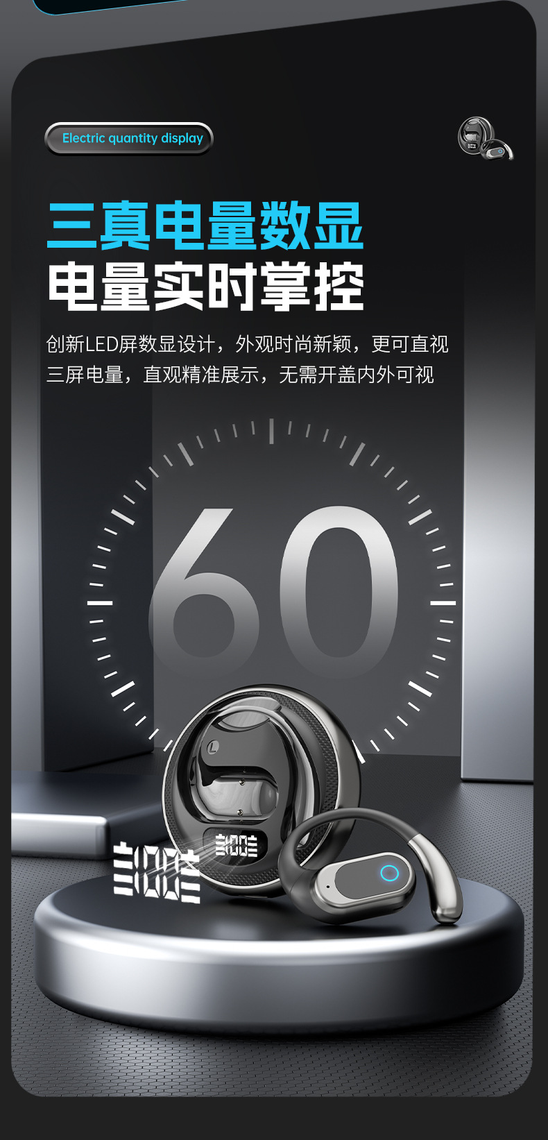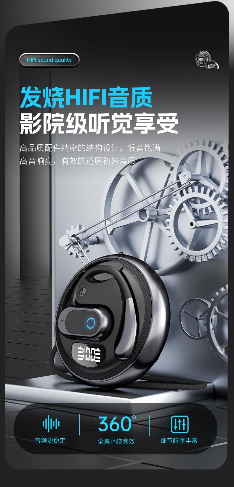 新款金属挂耳式数显挂脖便携式无线蓝牙耳机超长续航运动降噪耳机