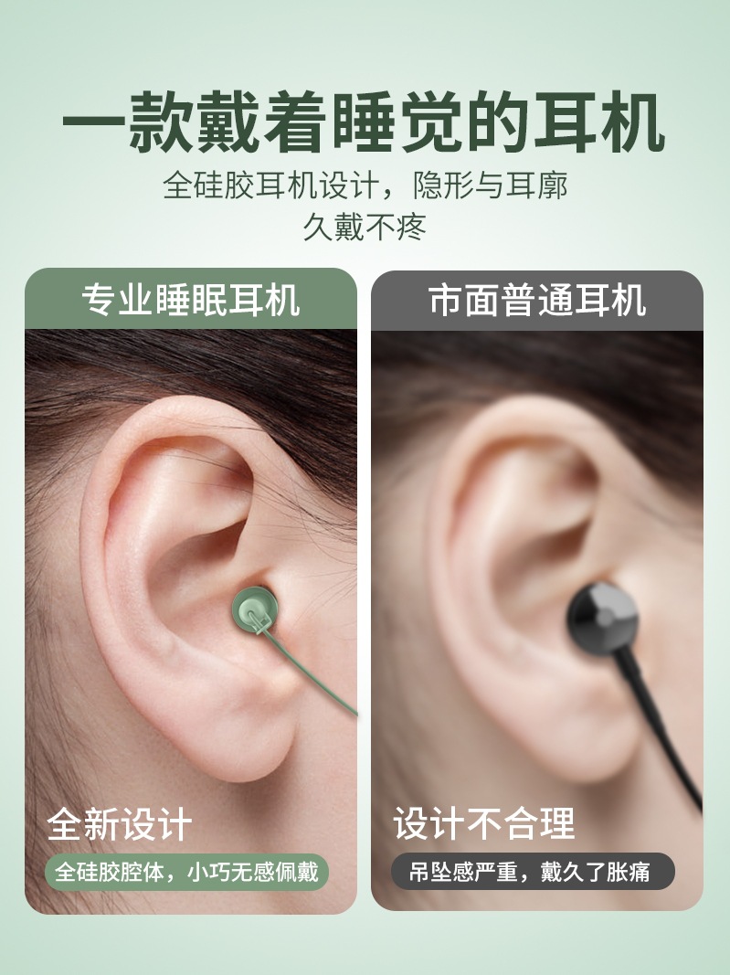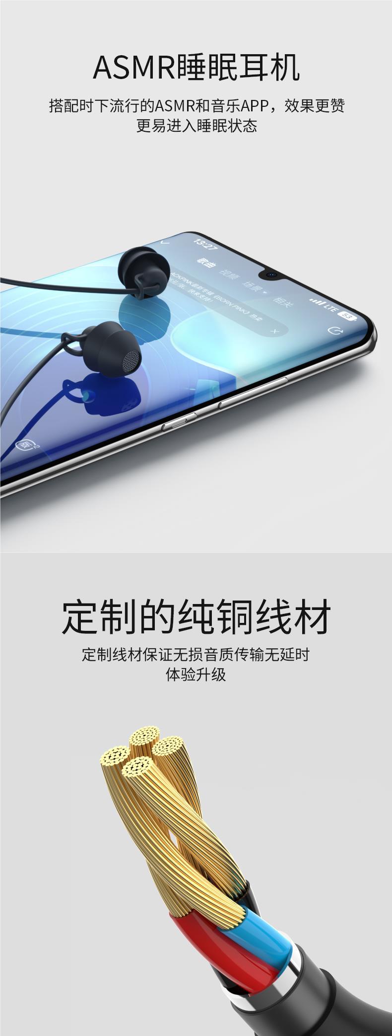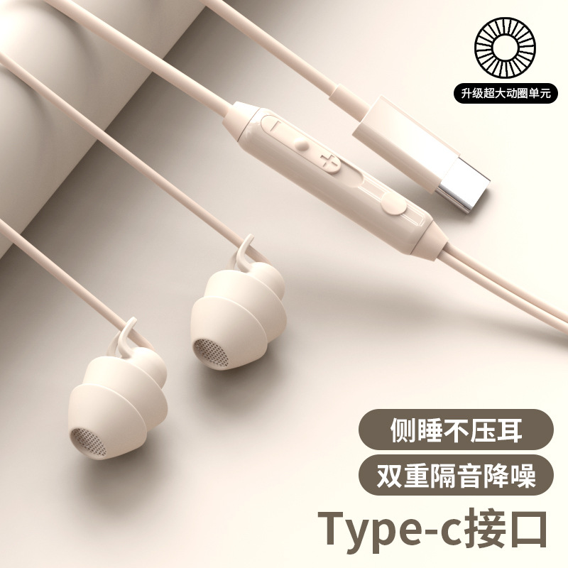 asmr睡眠耳机有线适用oppo华为降噪type-c圆口有线学生高音质隔音