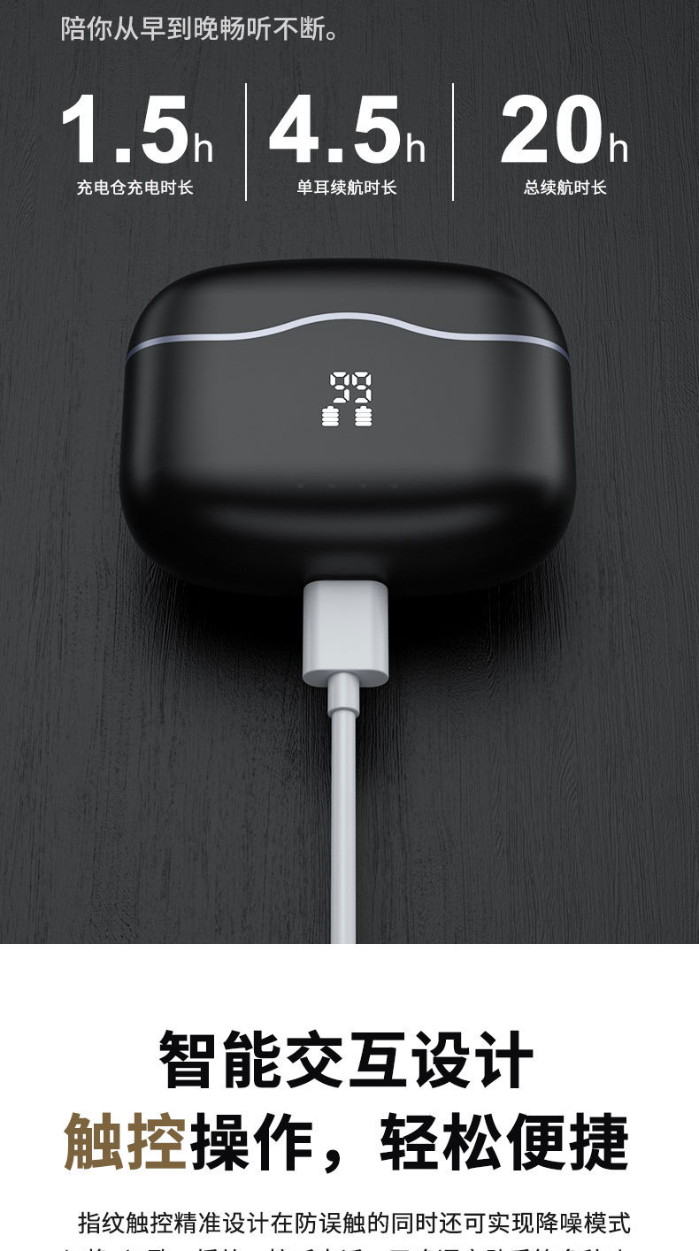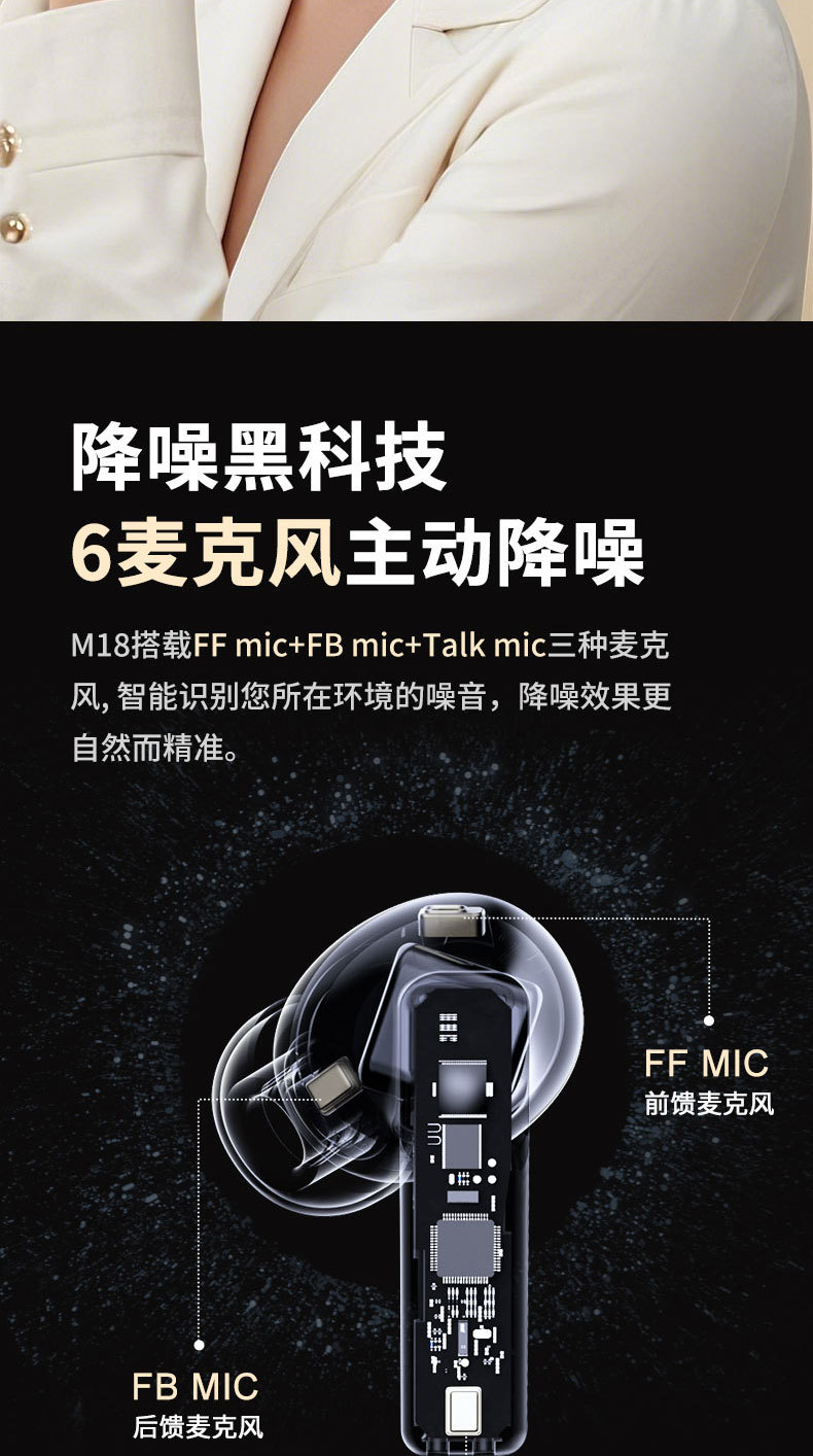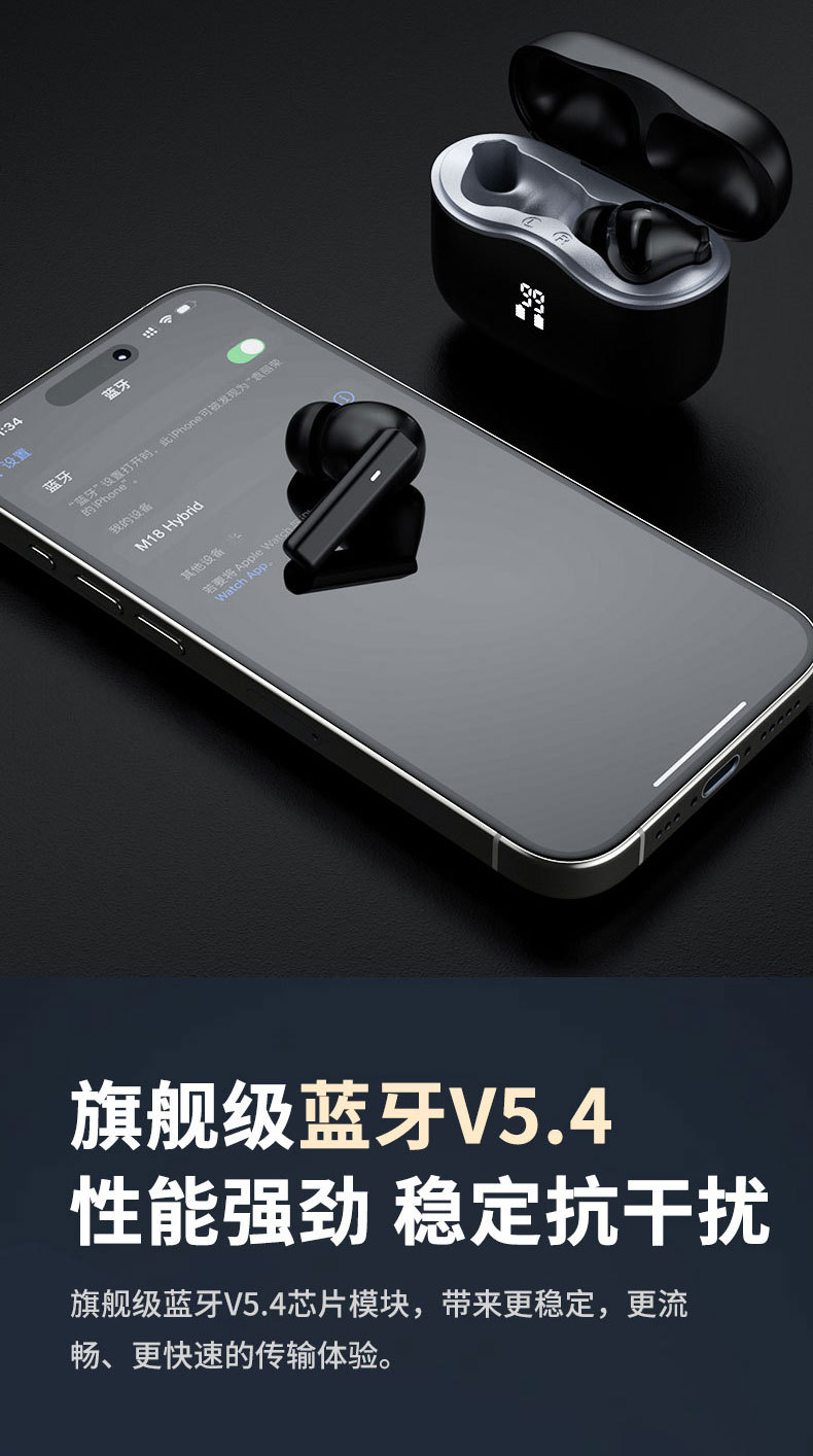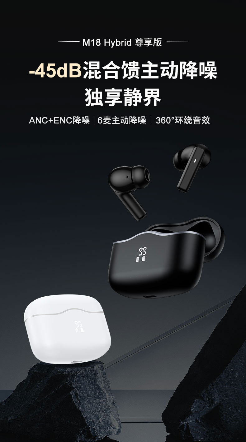 伽德仕M18ANC+ENC六麦主动降噪蓝牙耳机 混合馈 智能数显超长续航