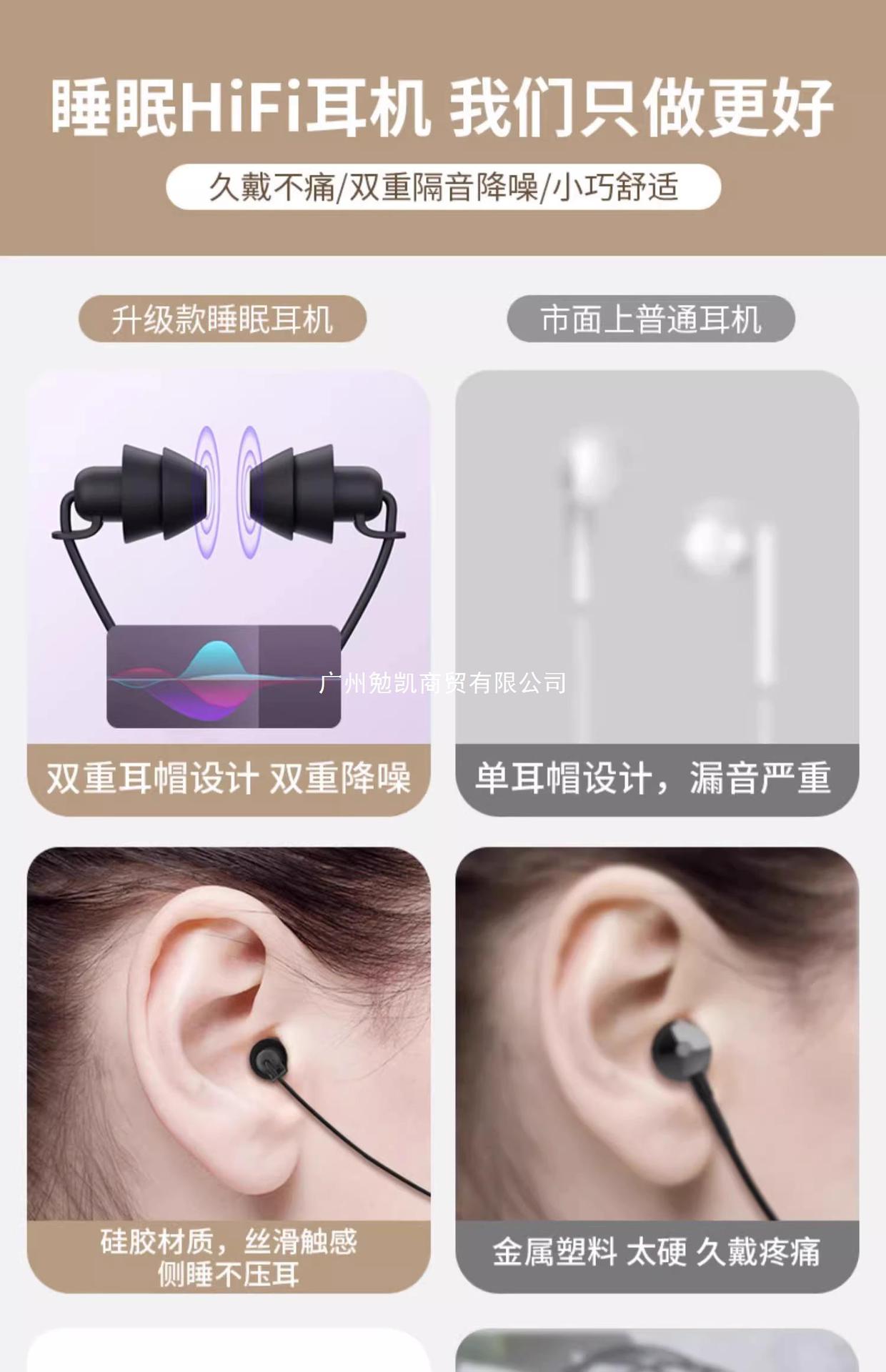 睡眠耳机有线typec接口2024新款入耳式圆孔降噪睡觉专用扁口侧睡