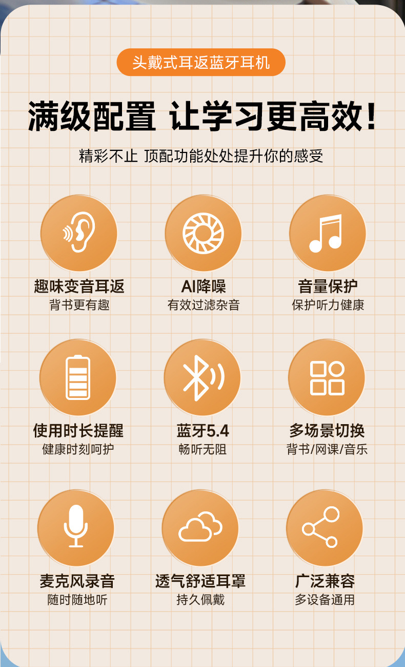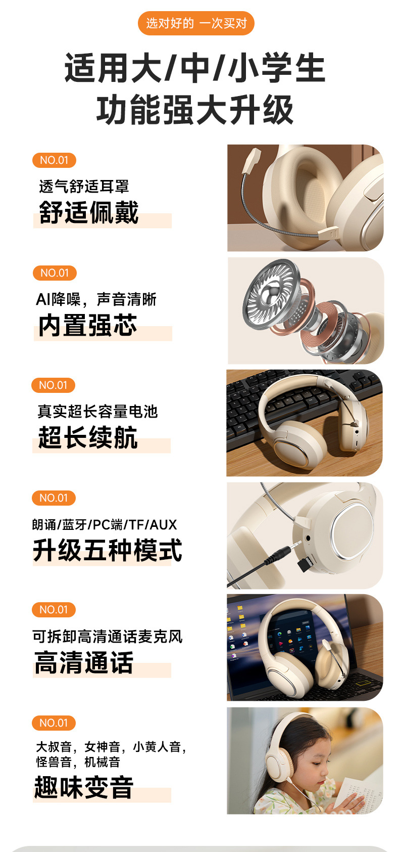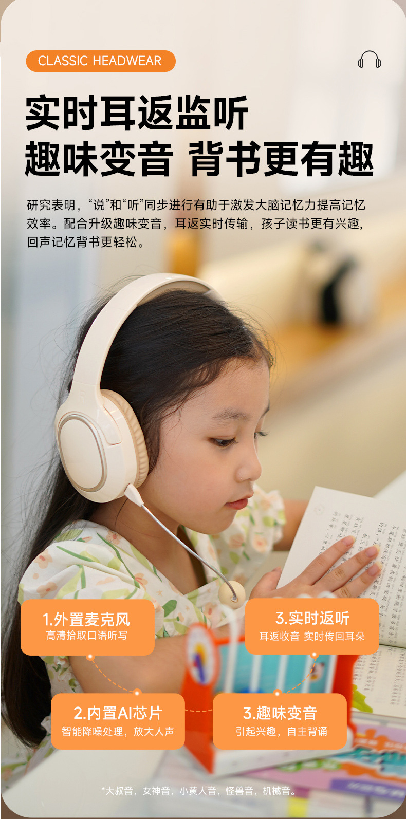 背书录音耳返耳机头戴式学生诵读加强记忆无线蓝牙耳麦厂家直销