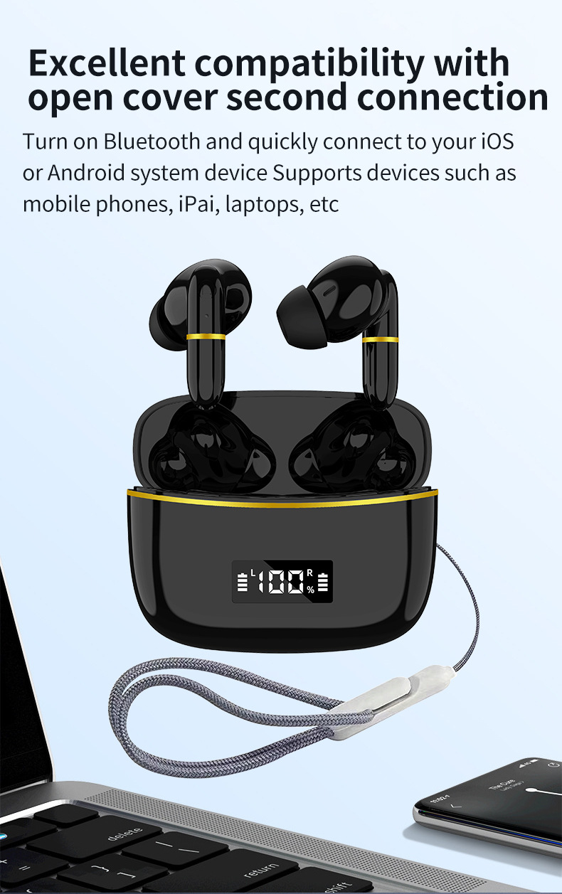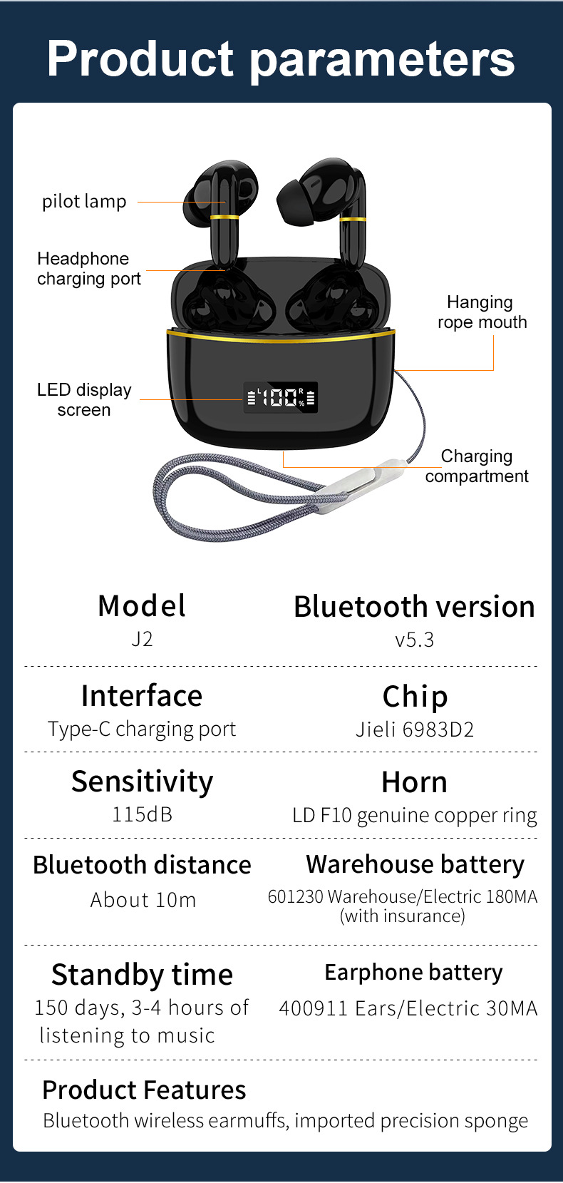 新款J2蓝牙耳机双耳入耳式TWS数显带仓立体声触控商务款跨境批发