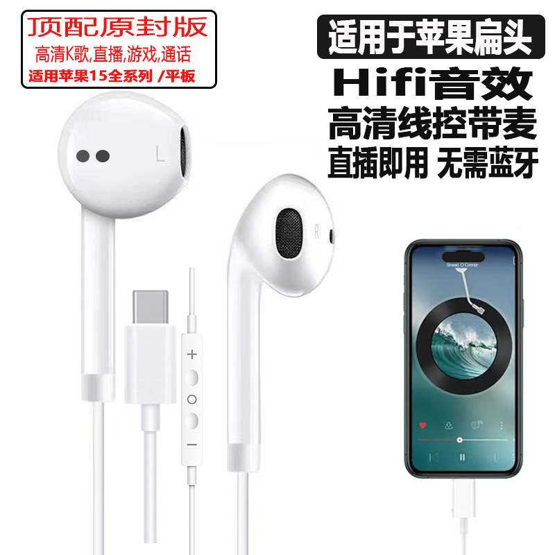 适用于苹果有线耳机15pro/14/13/12/11/ipad原装K歌直播游戏耳机