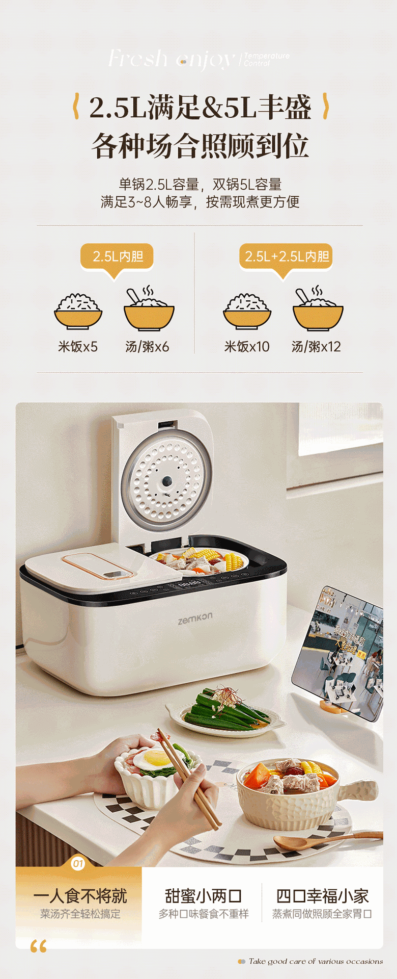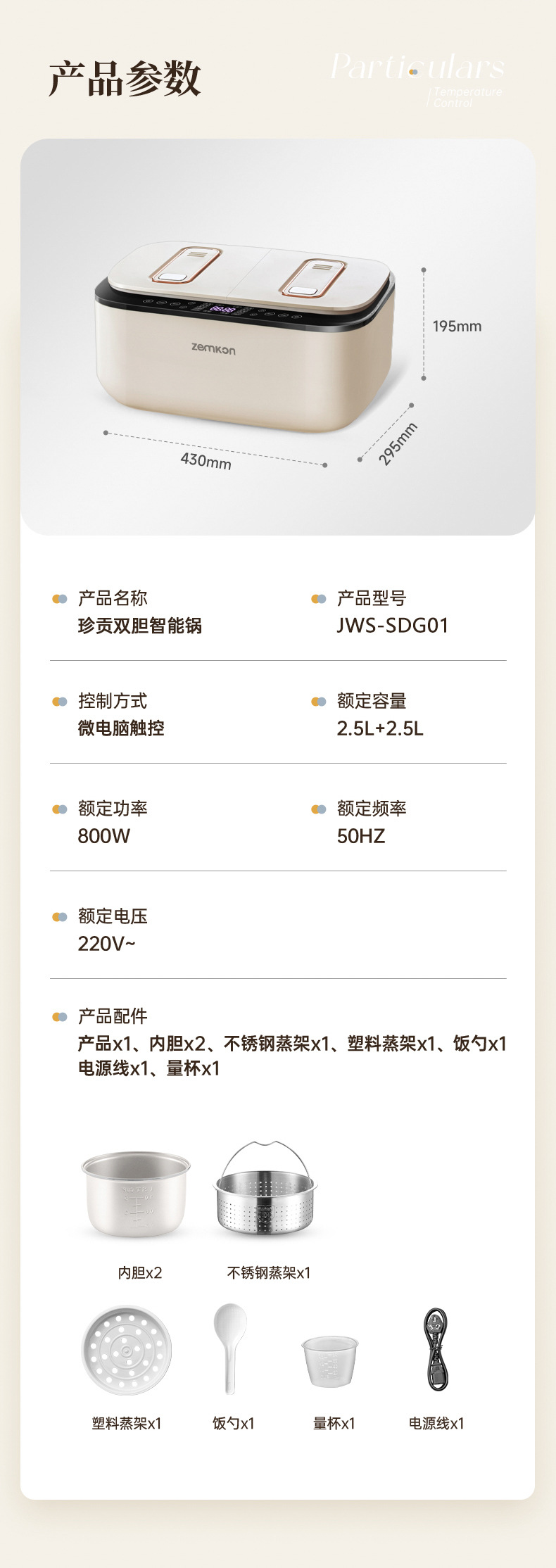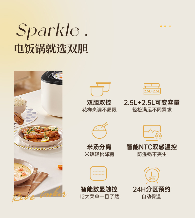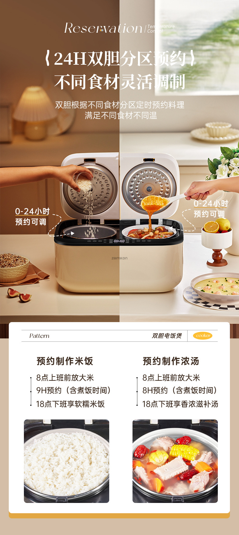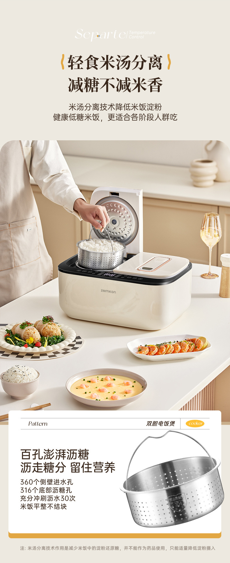 德国Zemkon双胆电饭煲4一5人智能米汤分离3~4人家用5一6人电饭锅