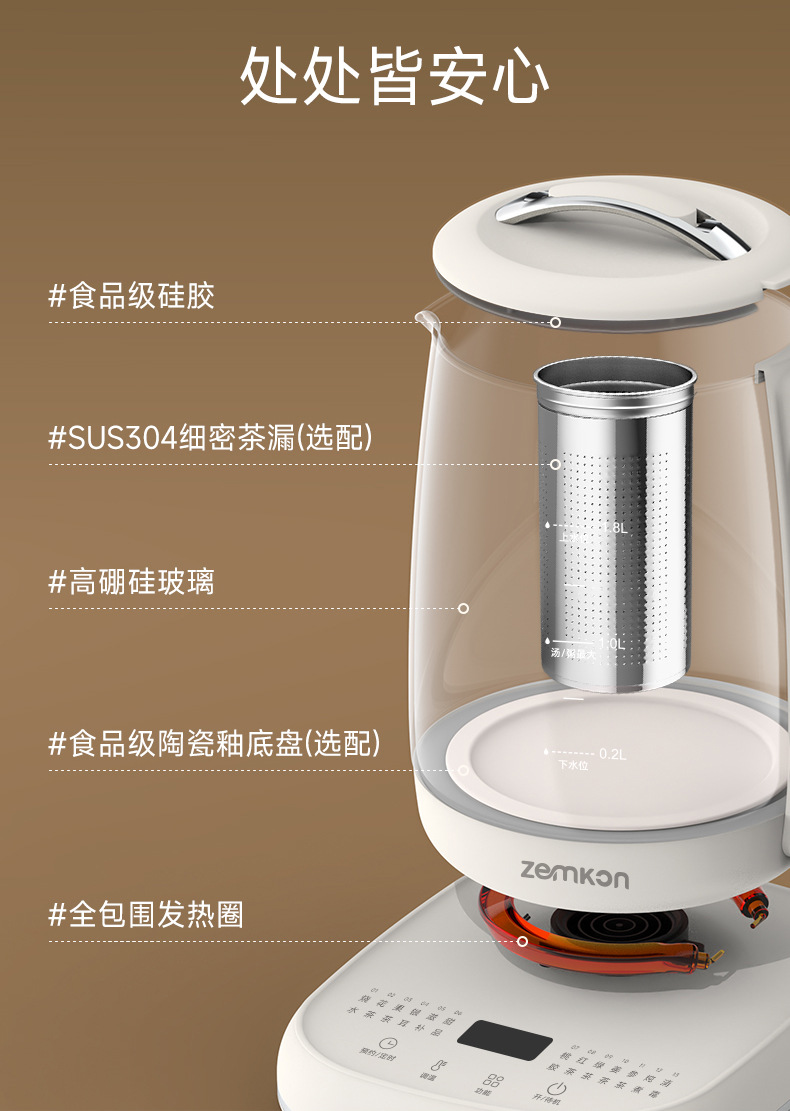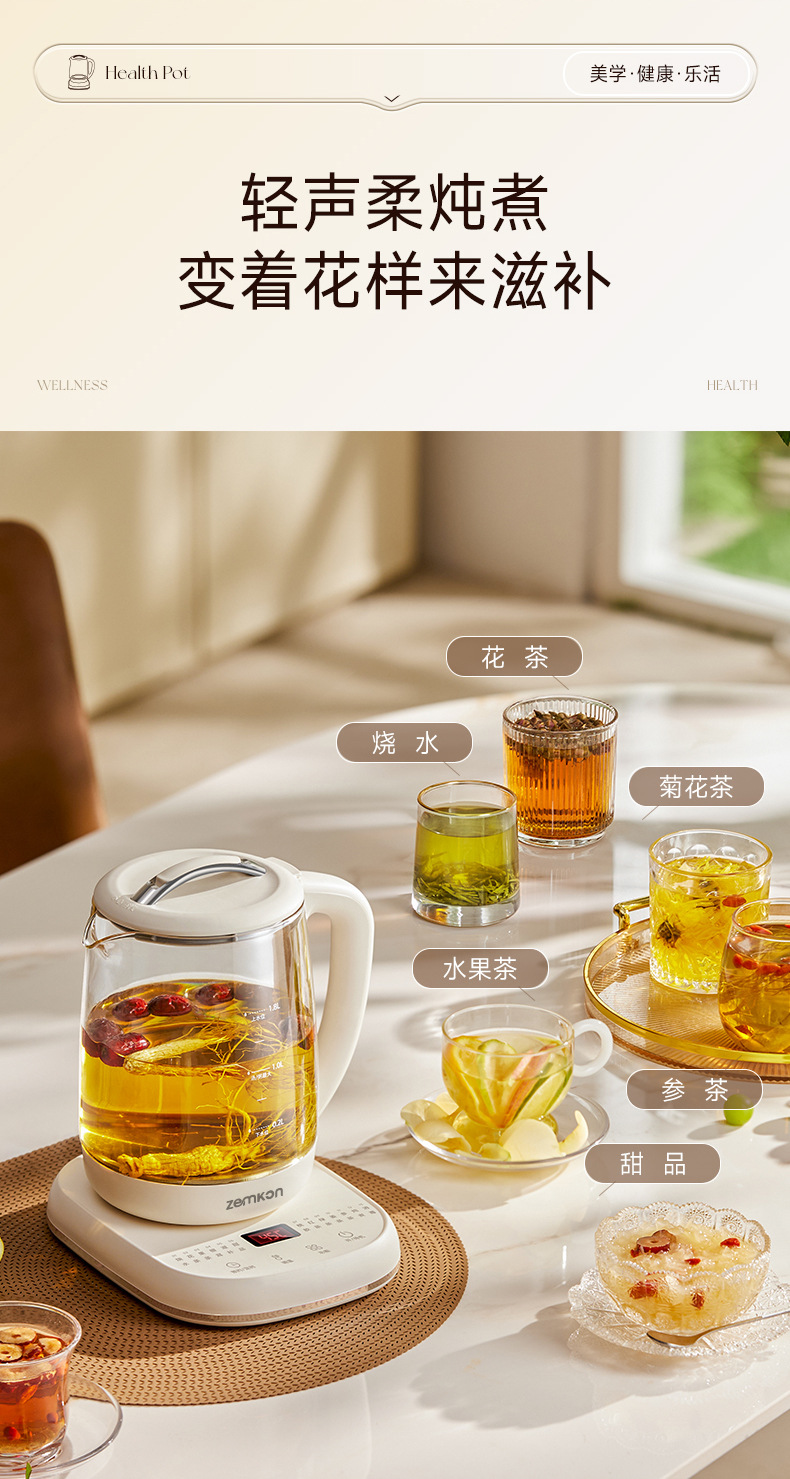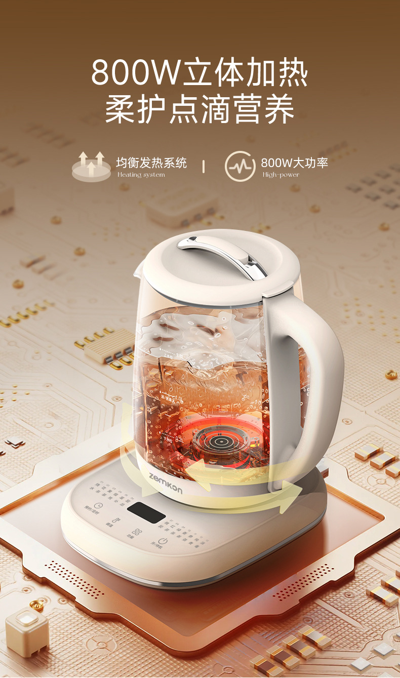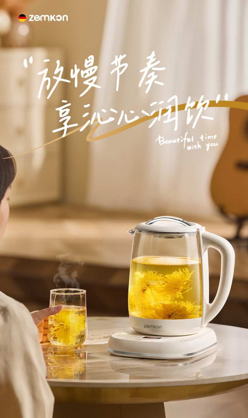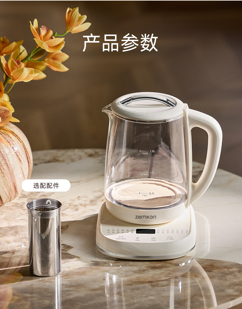 德国Zemkon多功能养生壶家用煮茶壶全自动办公室1.8L花茶烧水壶