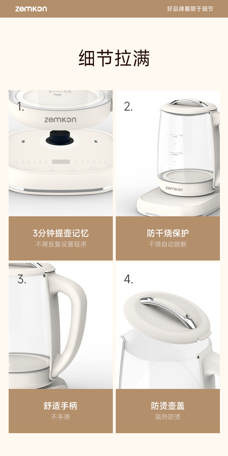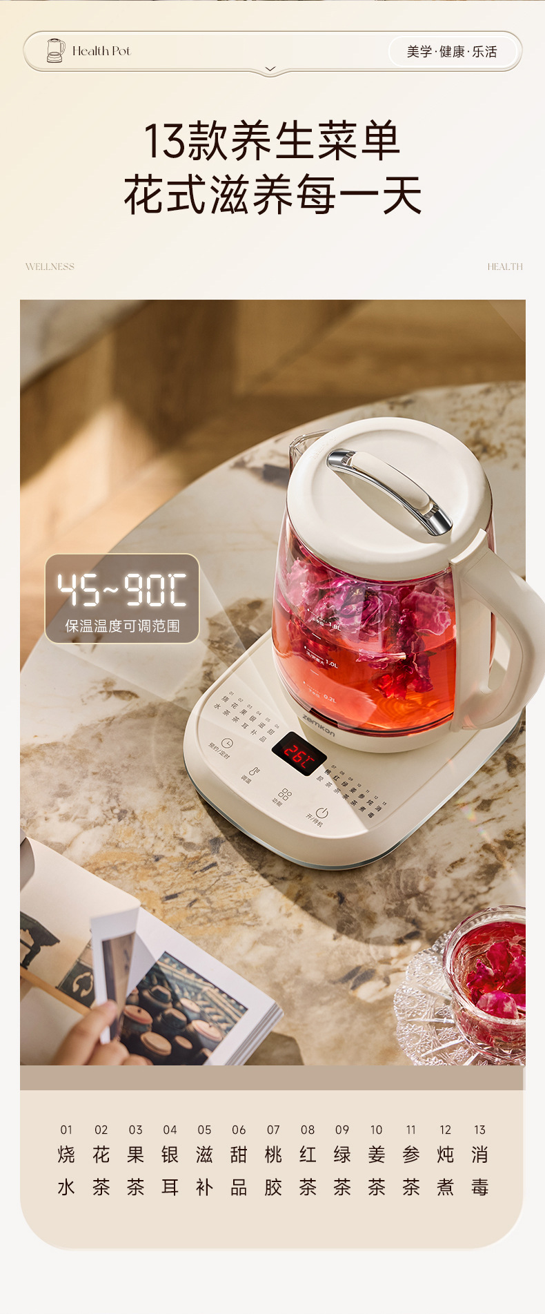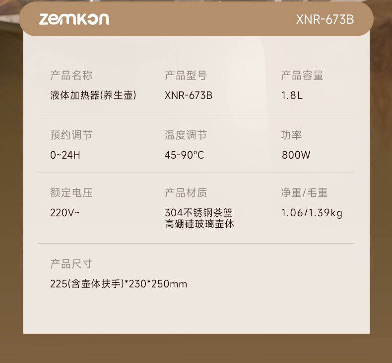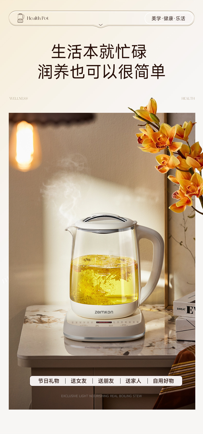 德国Zemkon多功能养生壶家用煮茶壶全自动办公室1.8L花茶烧水壶