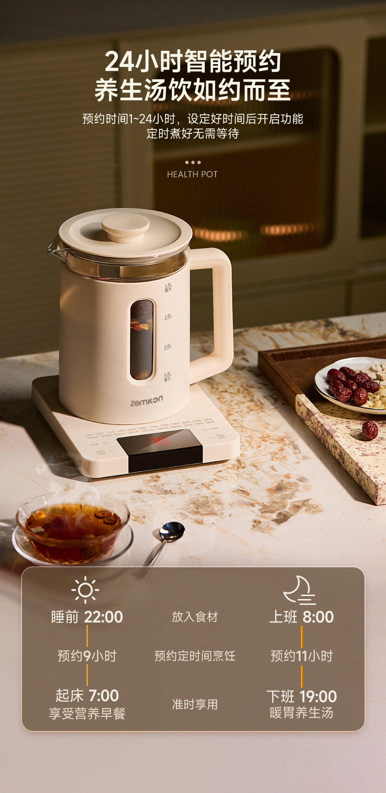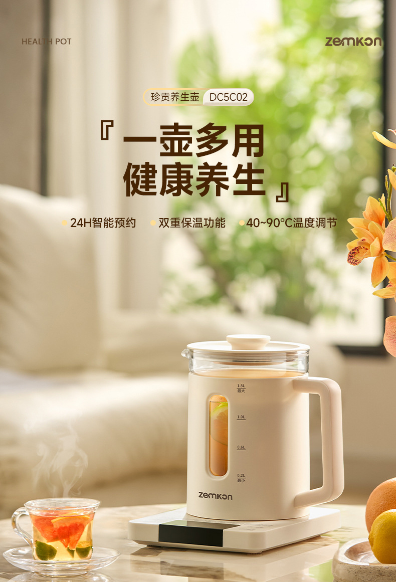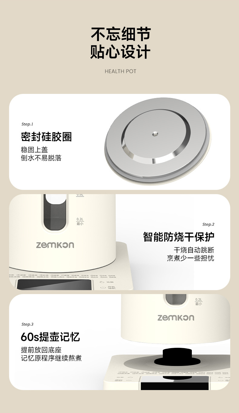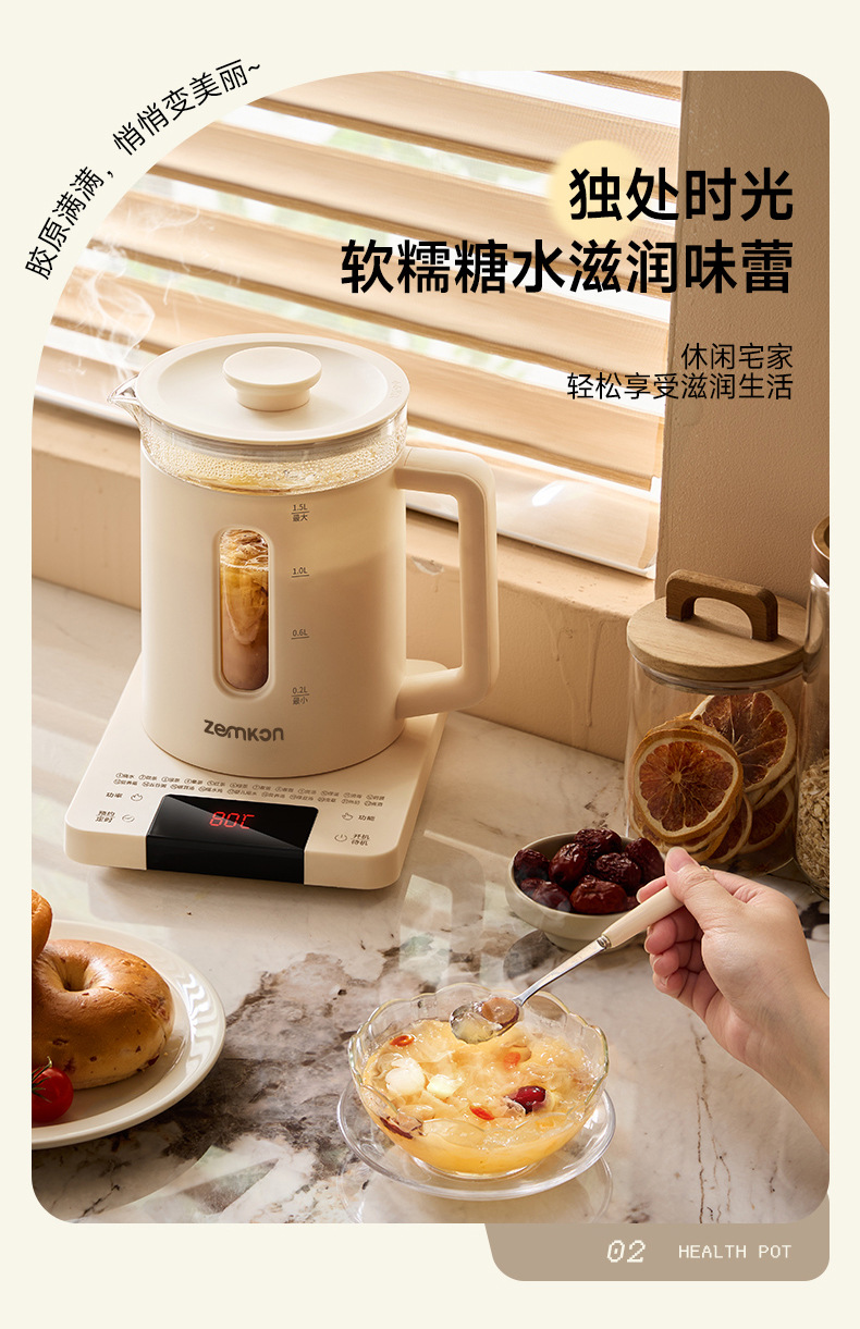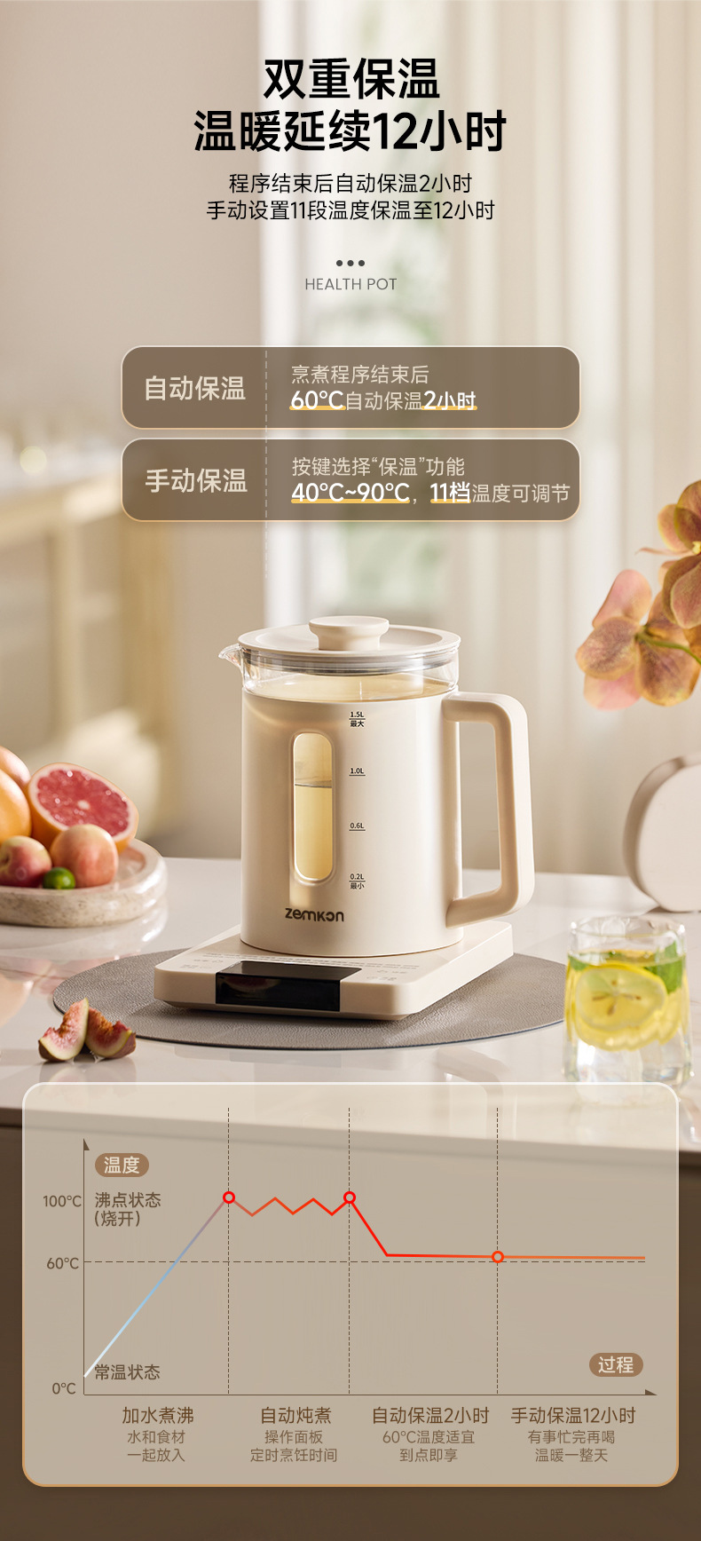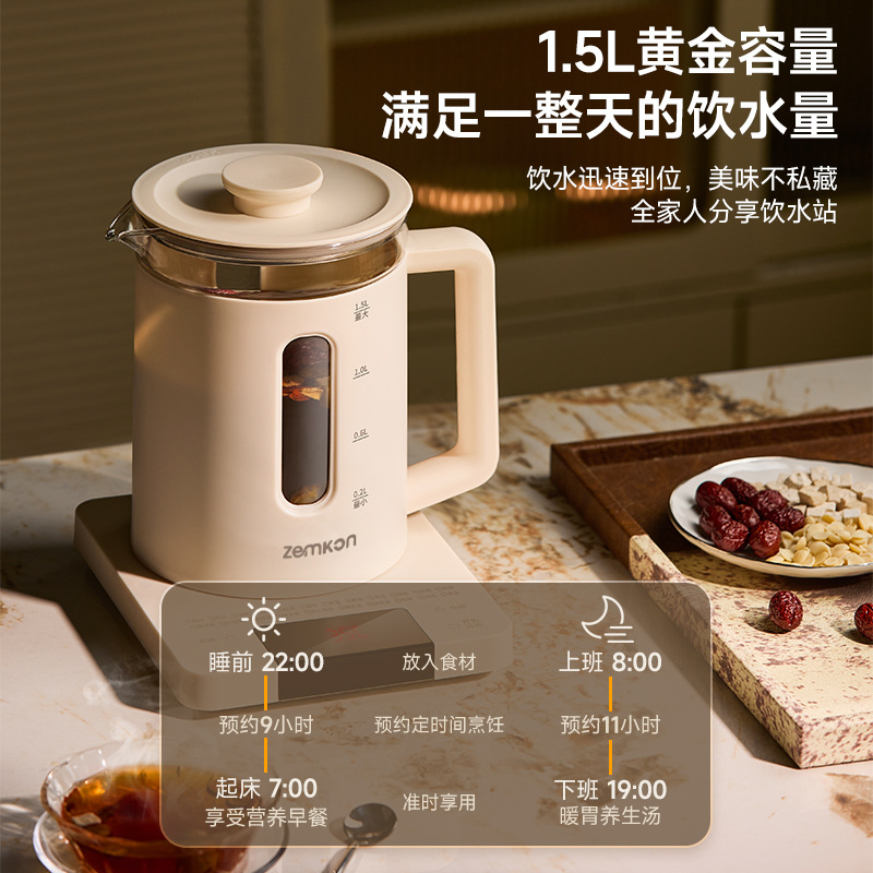 德国Zemkon养生壶多功能恒温壶家用烧水壶加厚玻璃全自动煮茶壶