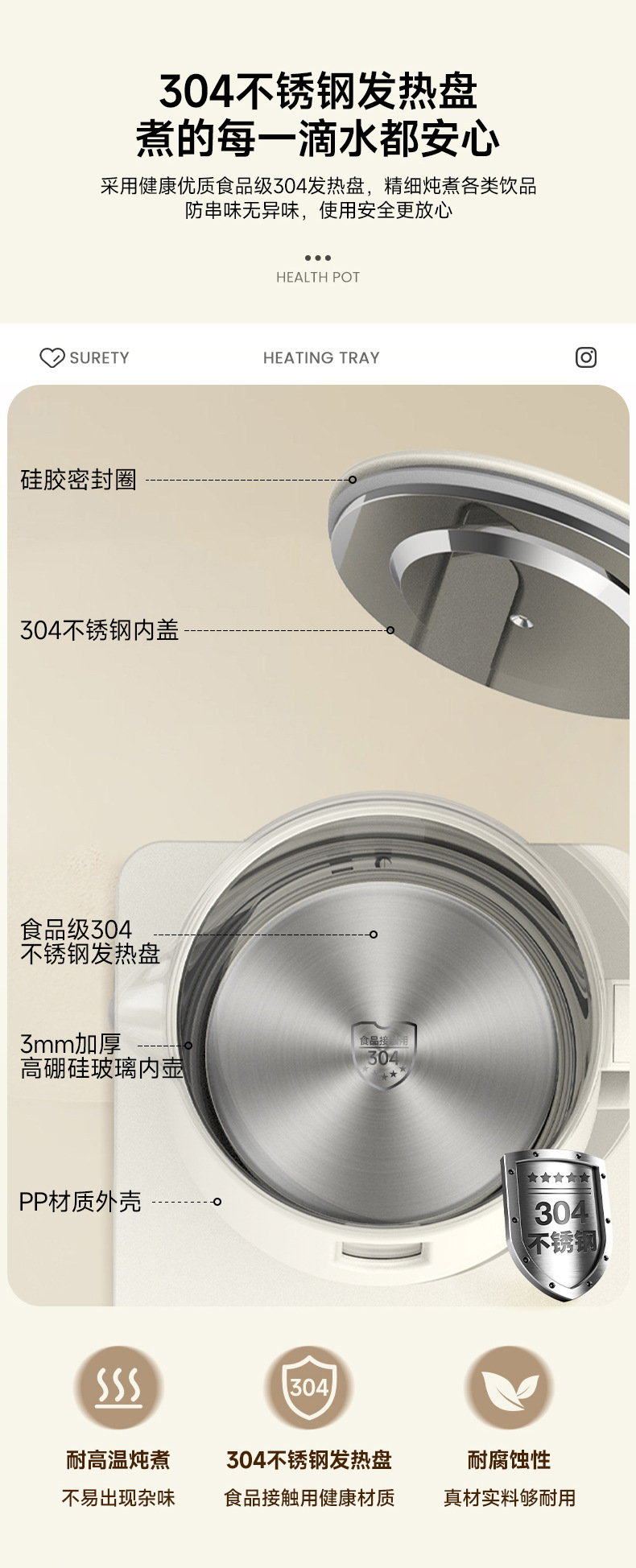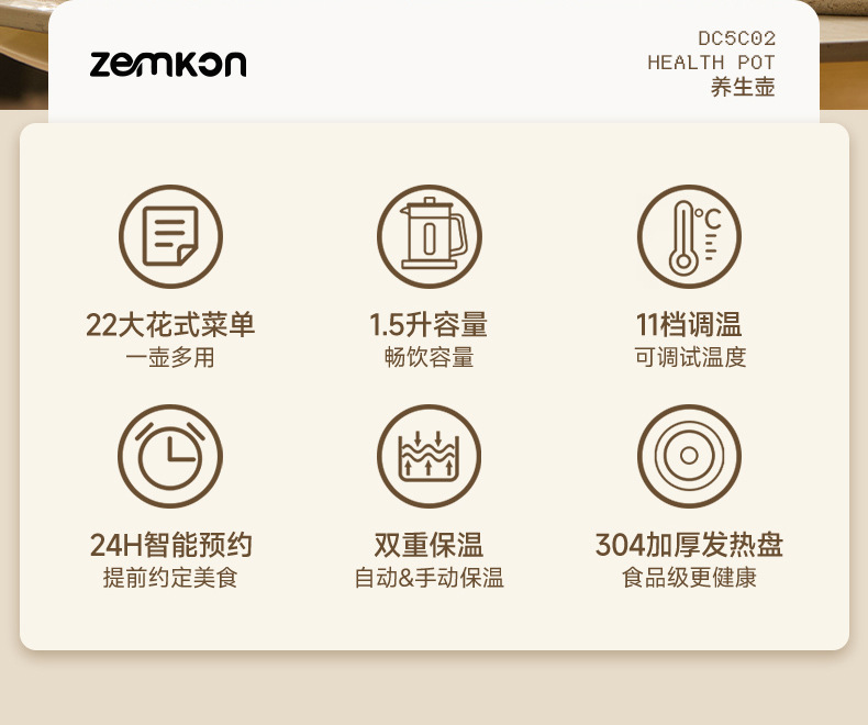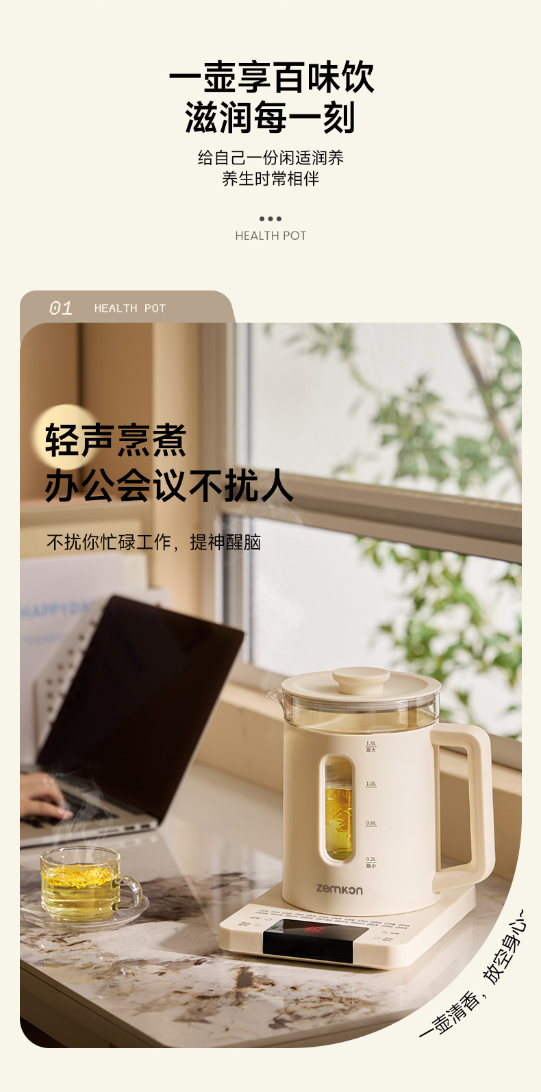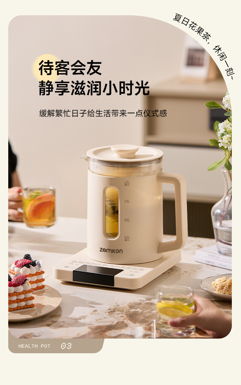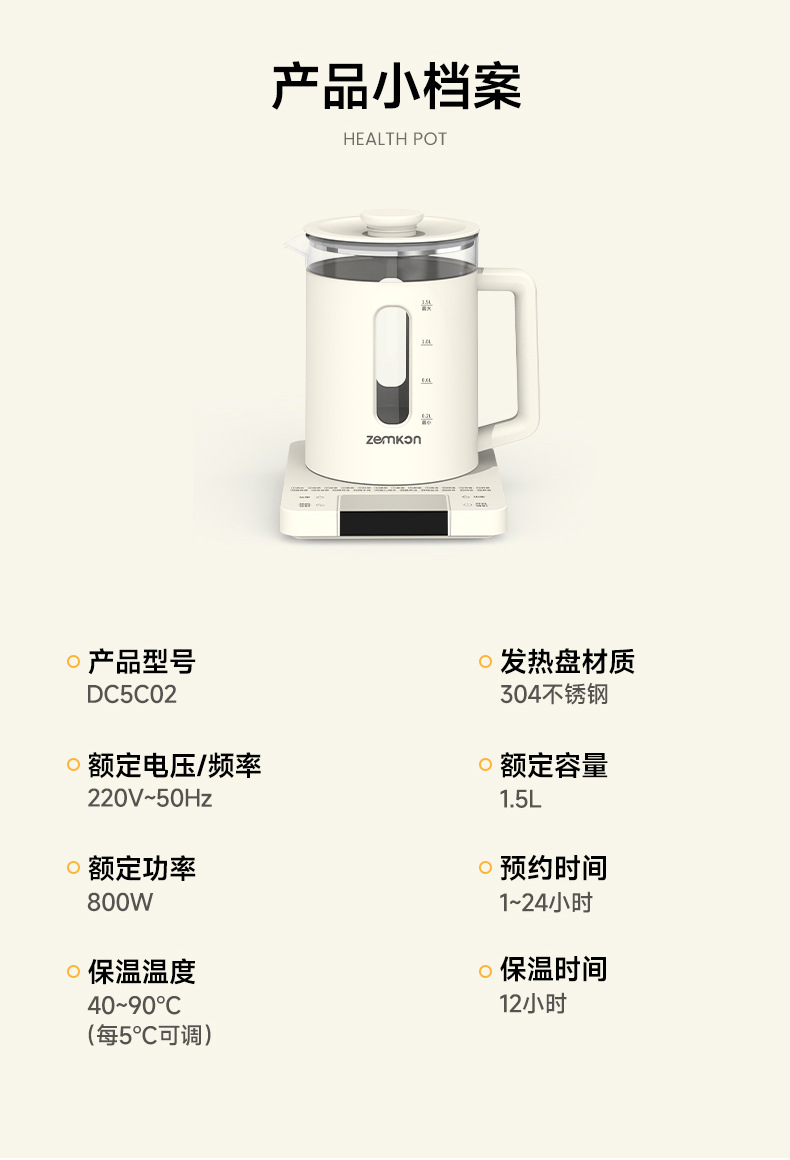 德国Zemkon养生壶多功能恒温壶家用烧水壶加厚玻璃全自动煮茶壶