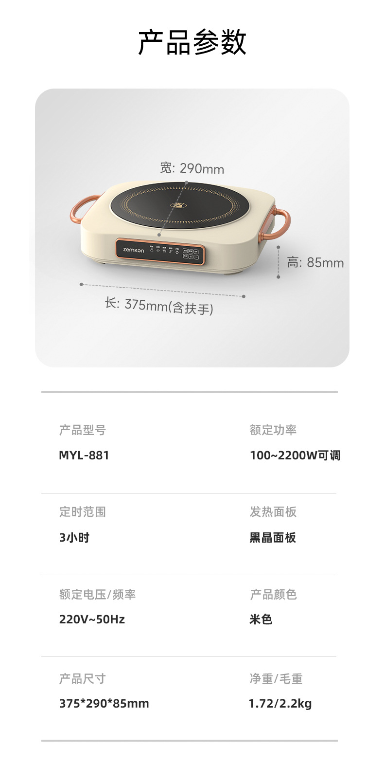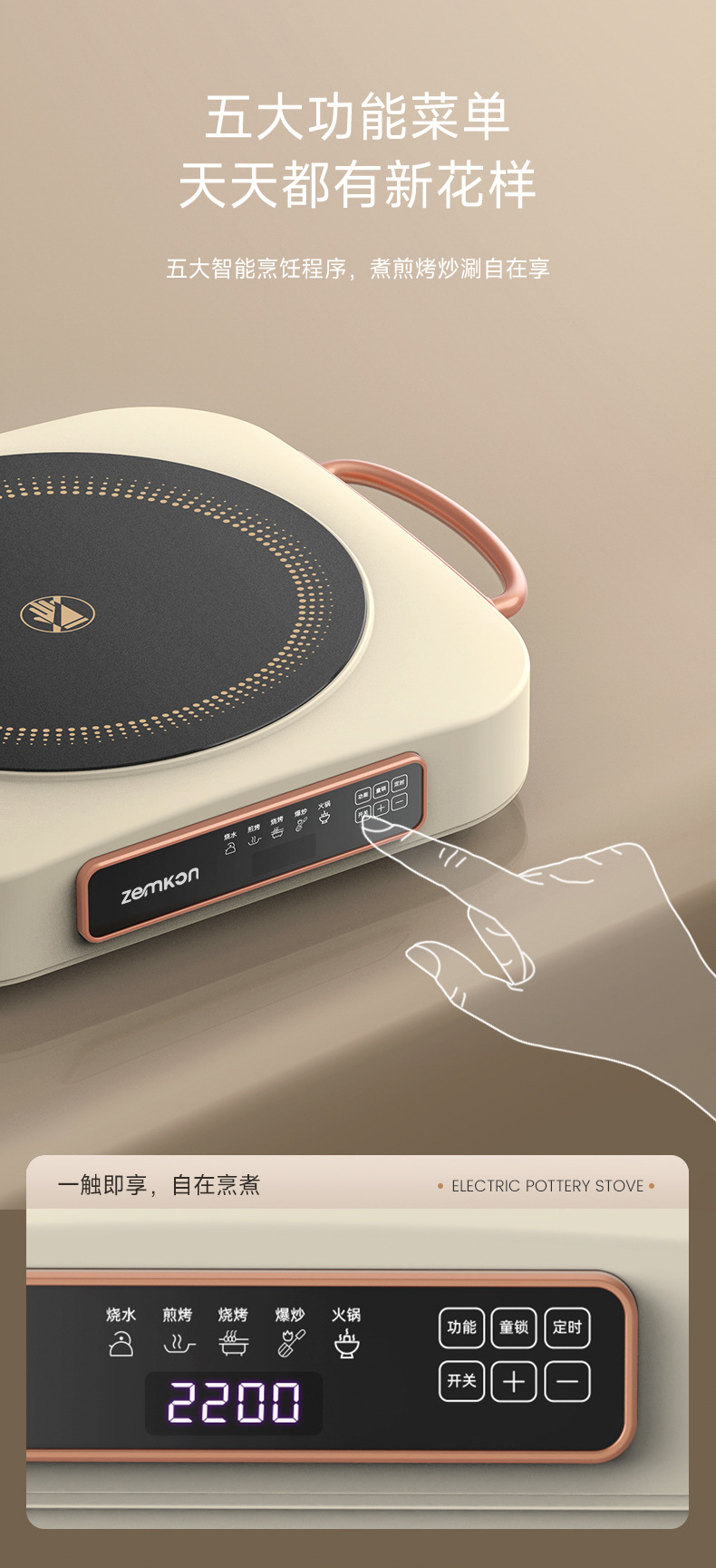 德国品牌Zemkon电陶炉家用小型迷你电茶炉围炉煮茶厂家批发电磁炉