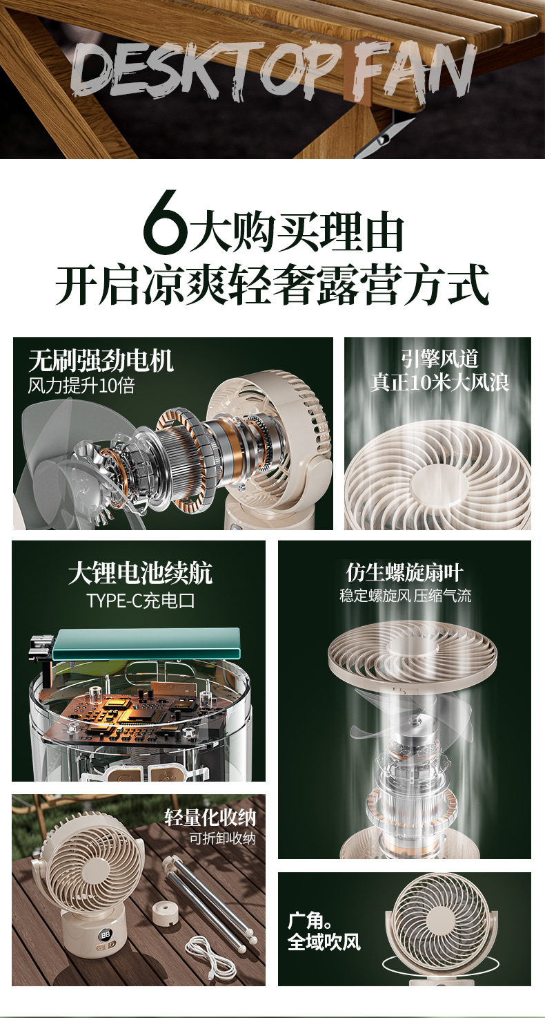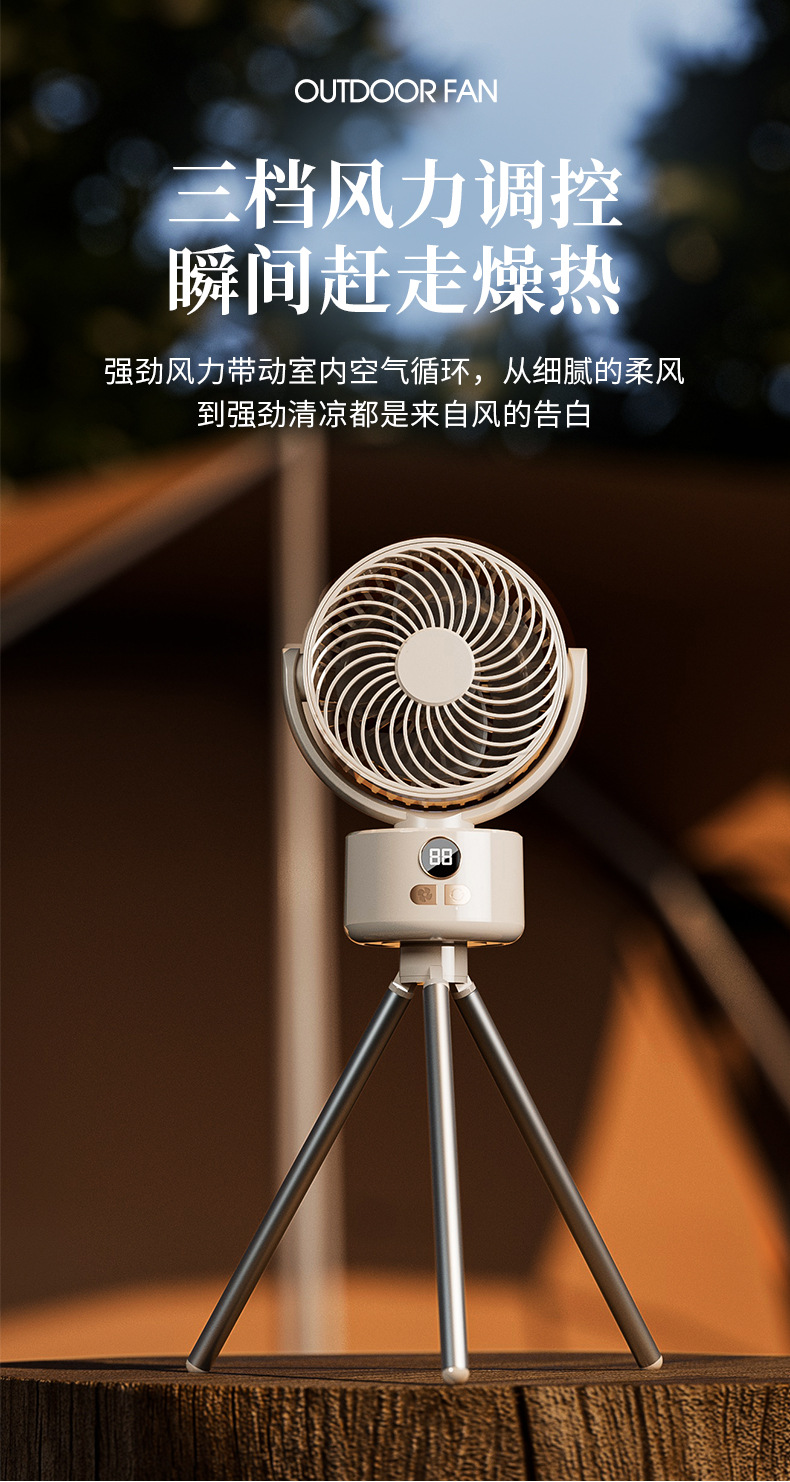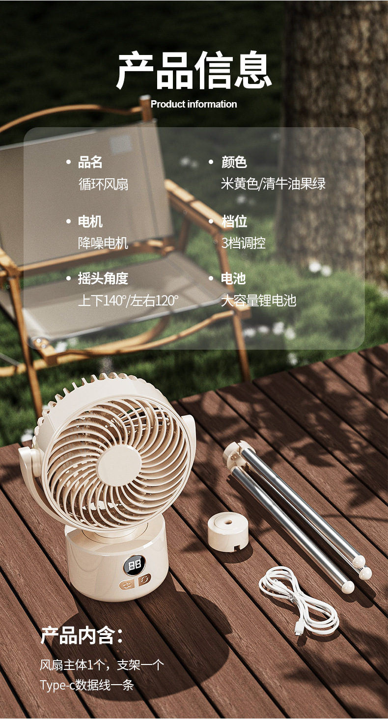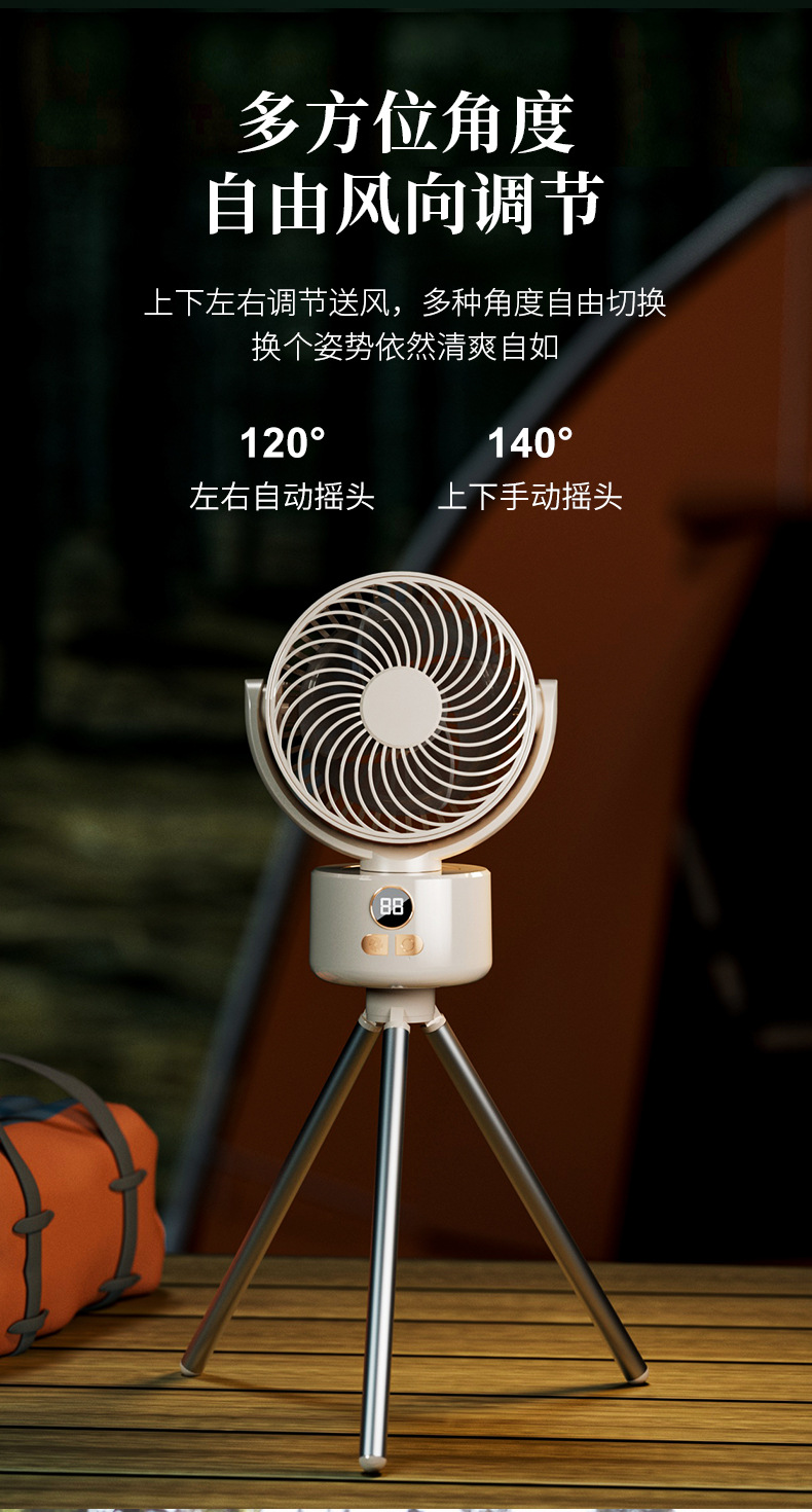 加工定制 露营风扇户外桌面循环大风力家用usb数显两用三脚架风扇