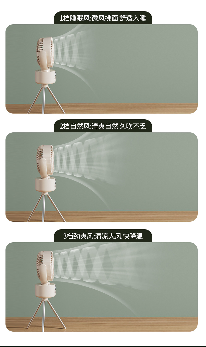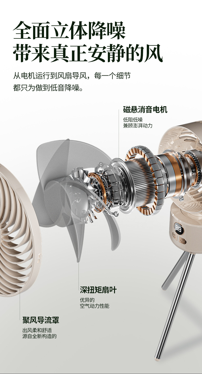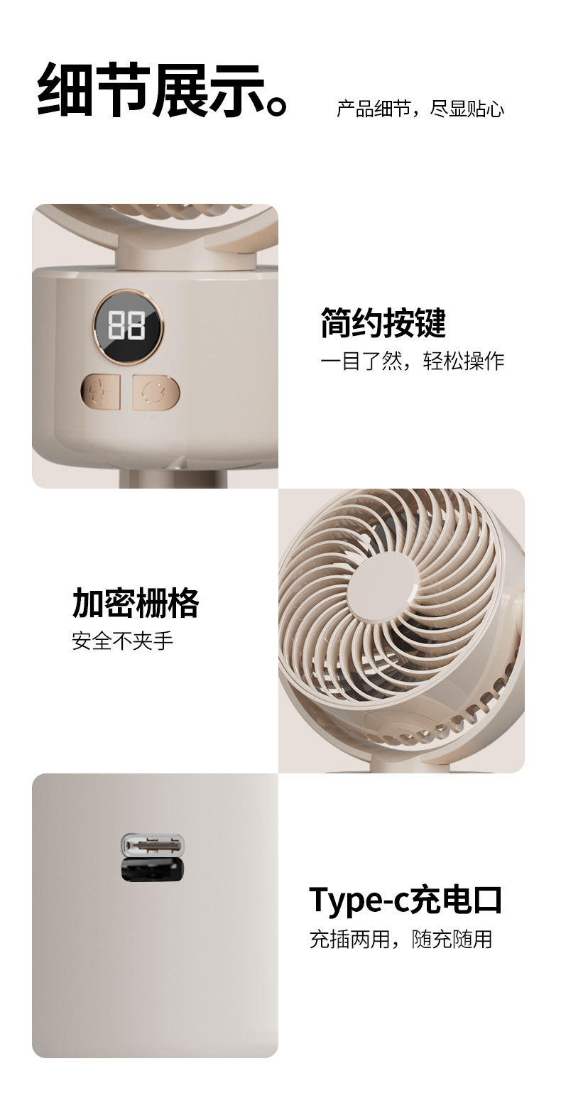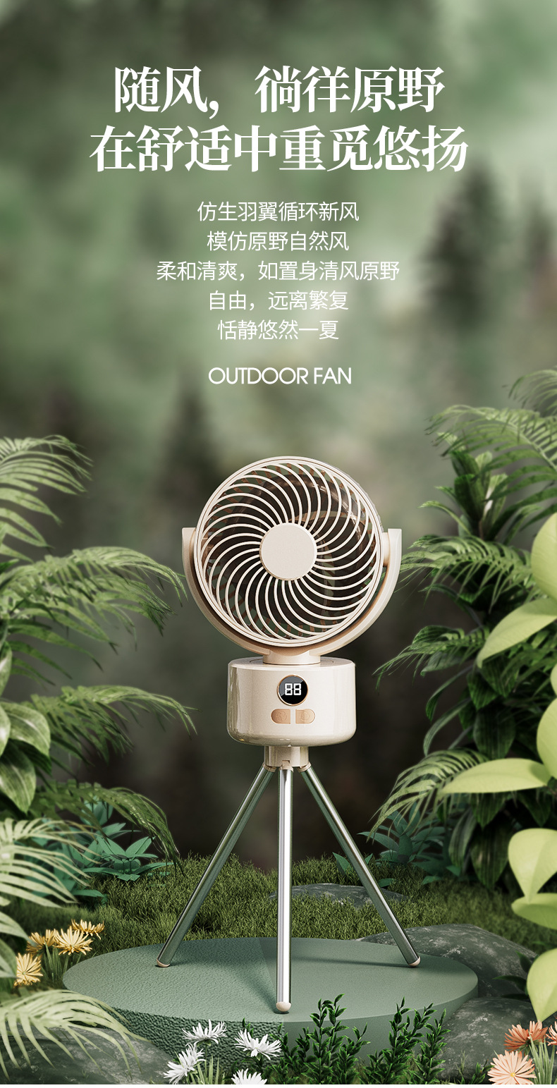 加工定制 露营风扇户外桌面循环大风力家用usb数显两用三脚架风扇