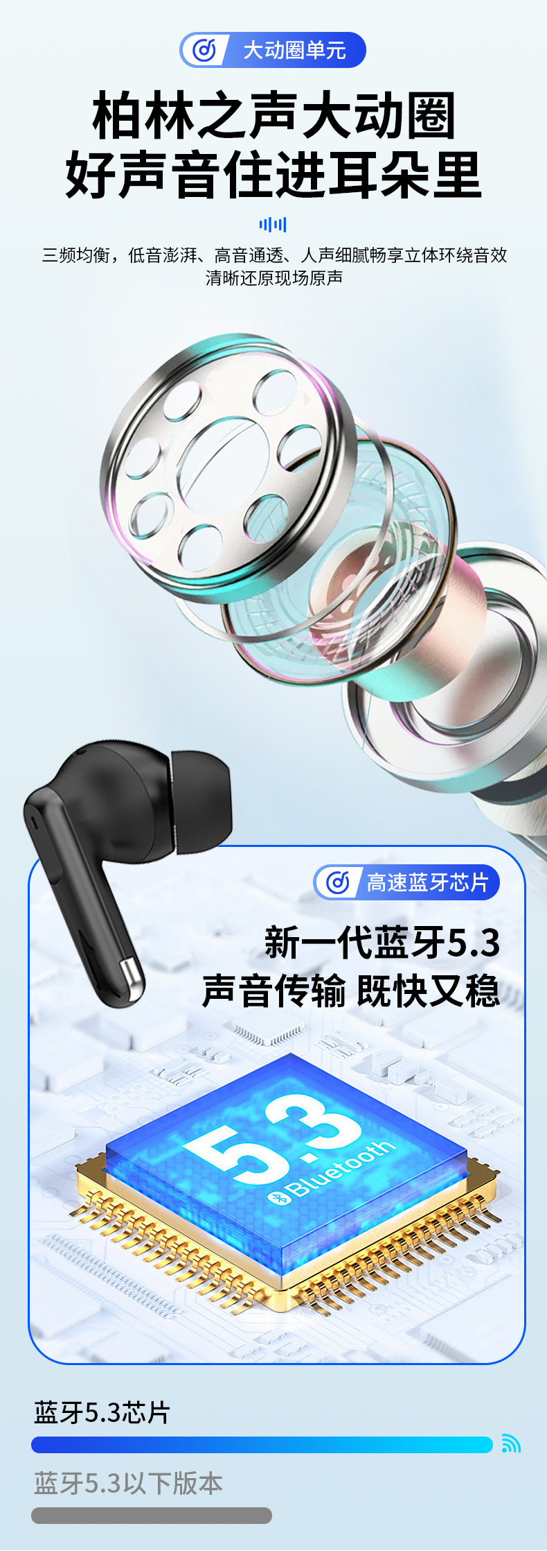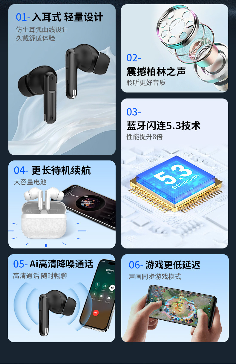 无线蓝牙耳机大电量超长续航高音质适用苹果华为运动ANC降噪耳机