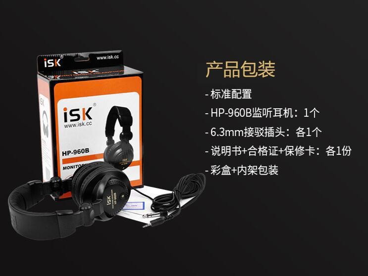 iSK HP960B头戴式直播录音监听耳机腔体设计佩戴舒适游