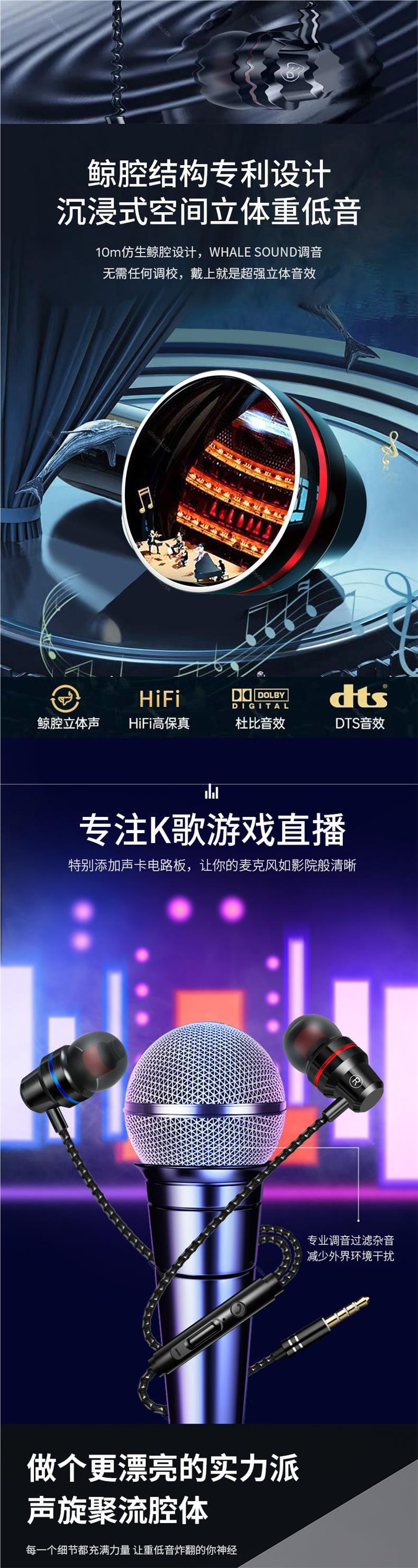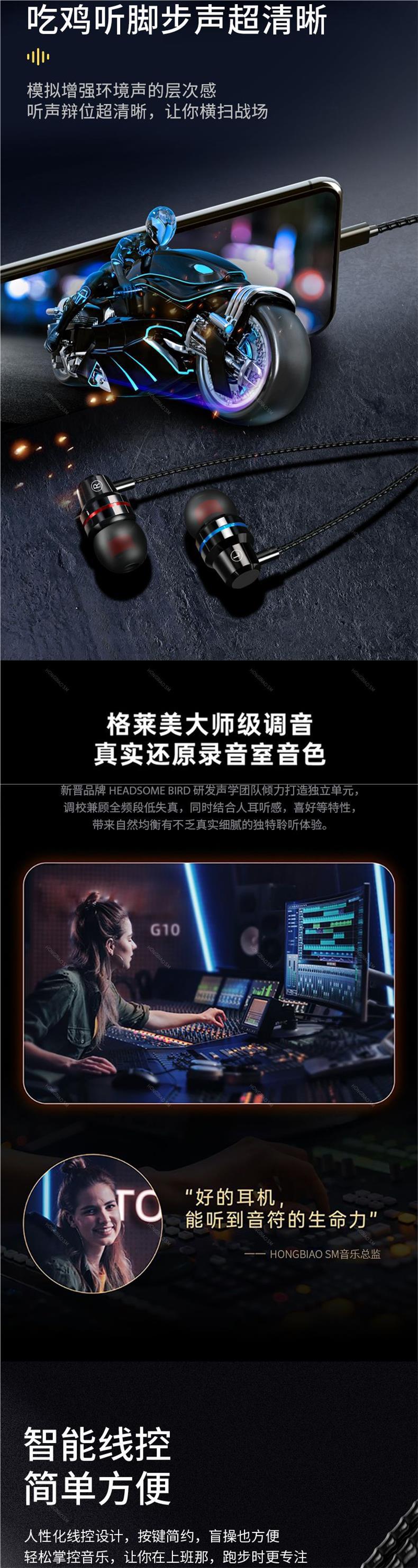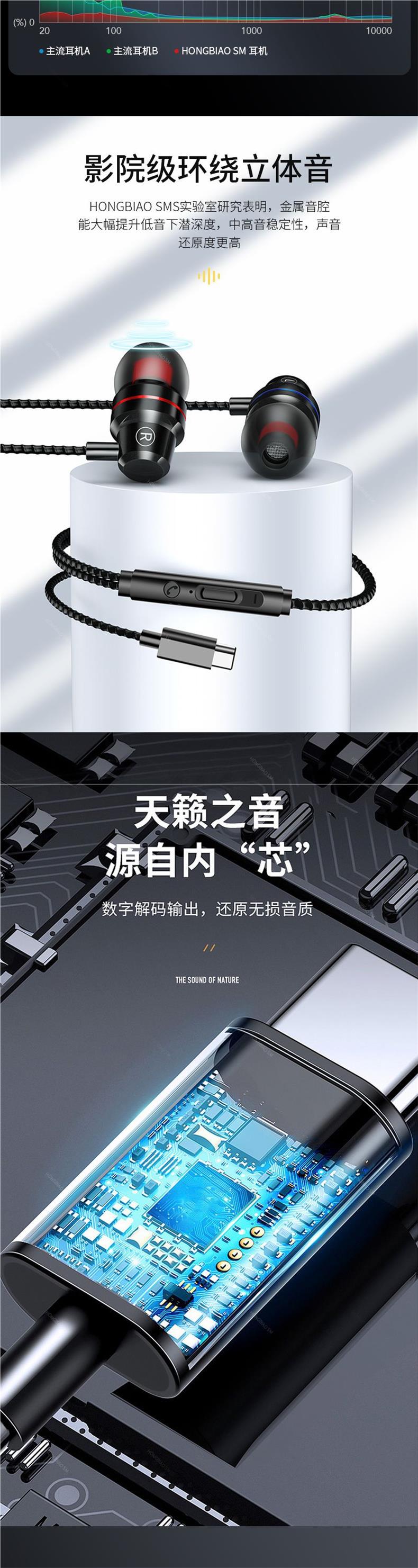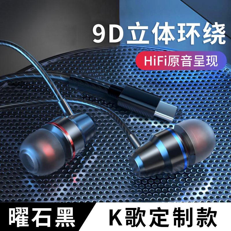 耳机有线入耳式高音质typec线控带麦圆孔适用于OPPO小米vivo通用