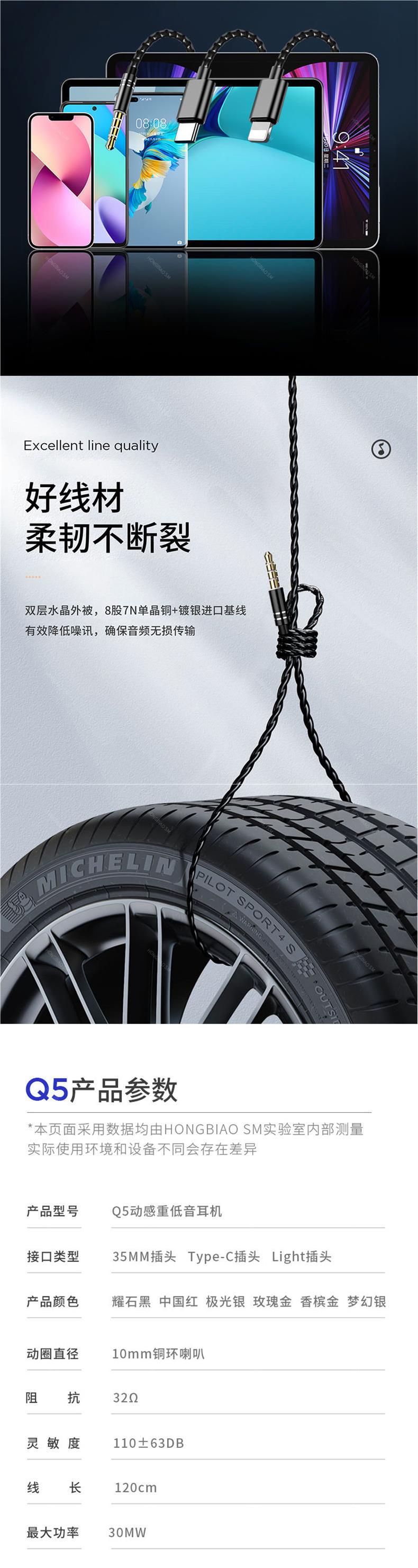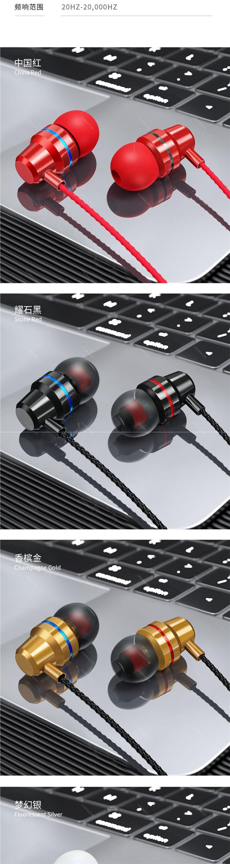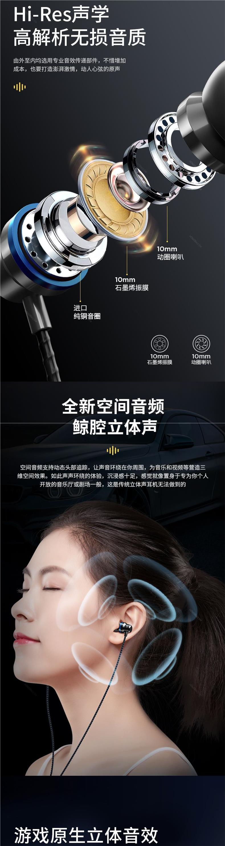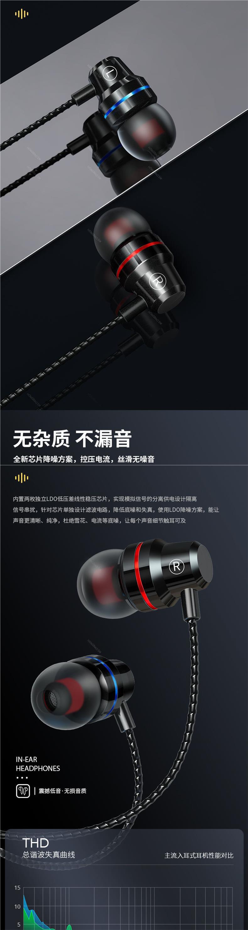 耳机有线入耳式高音质typec线控带麦圆孔适用于OPPO小米vivo通用