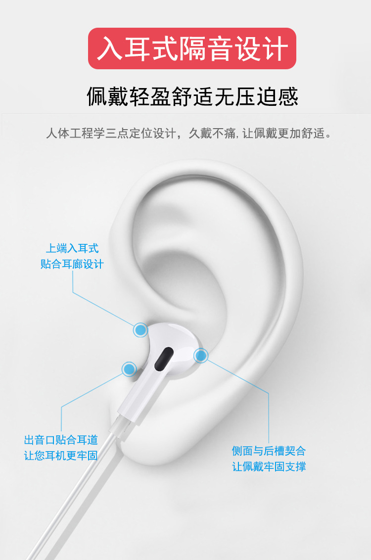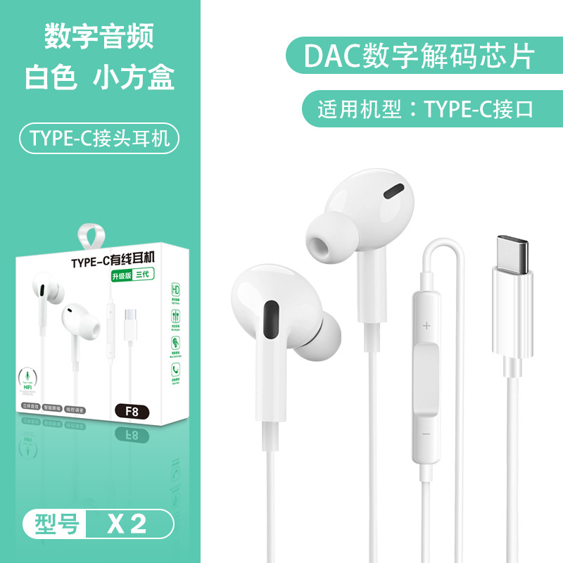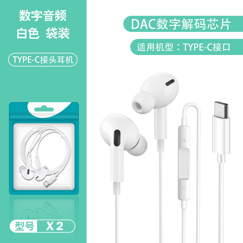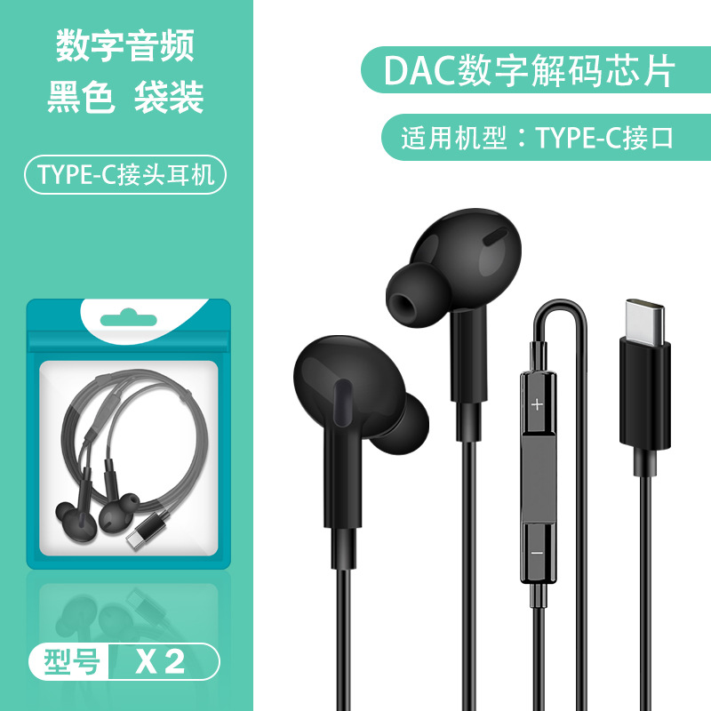 TYPE-C扁有线数字耳机适用华为游戏入耳式重低音线控耳机批发