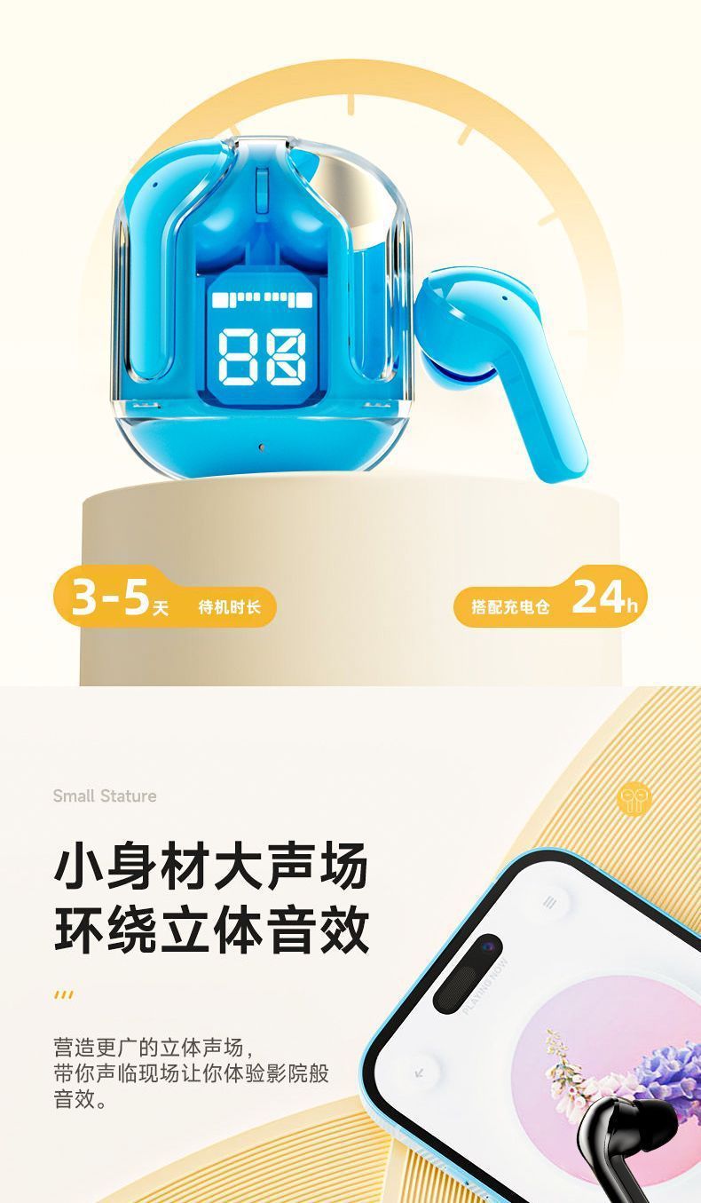 源头工厂新款运动蓝牙XT16耳机入耳数显长续航透明一代适用安卓苹