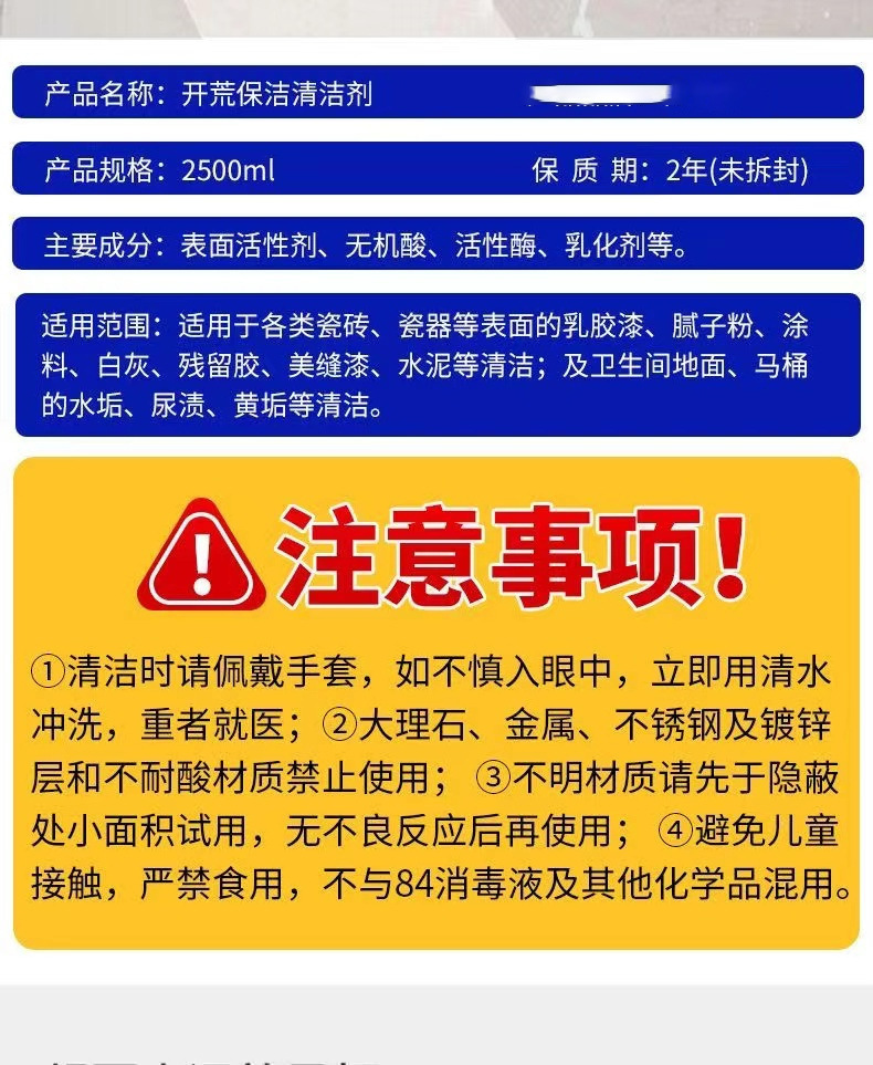新房装修开荒保洁清洁剂瓷砖专用水泥腻子粉乳胶漆清洗剂神器地板