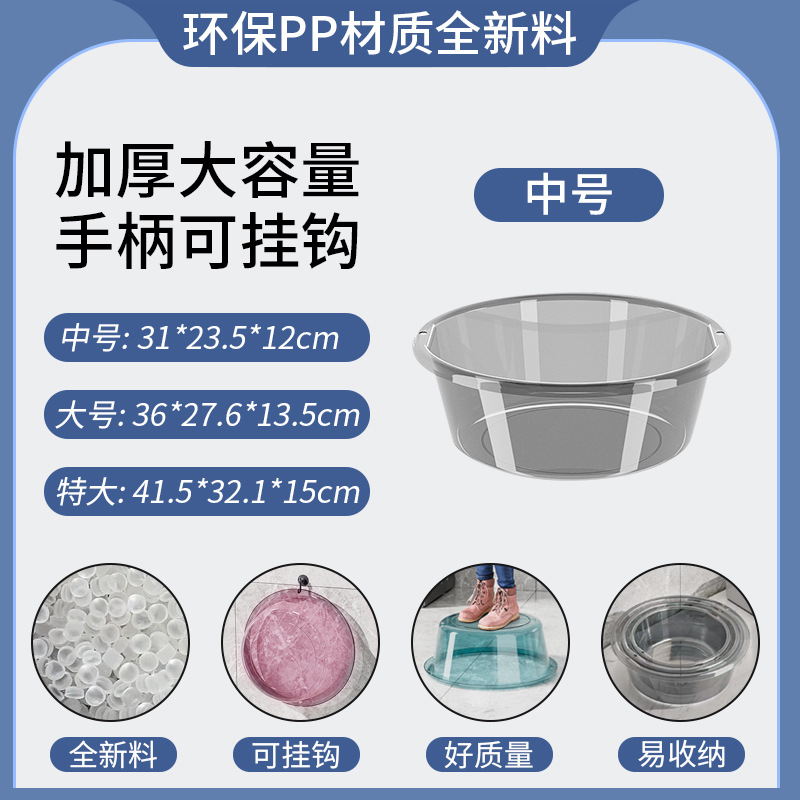 丰进加厚洗脸盆PP塑料透明脸盆加大号洗菜盆家用儿童洗澡洗脚盆