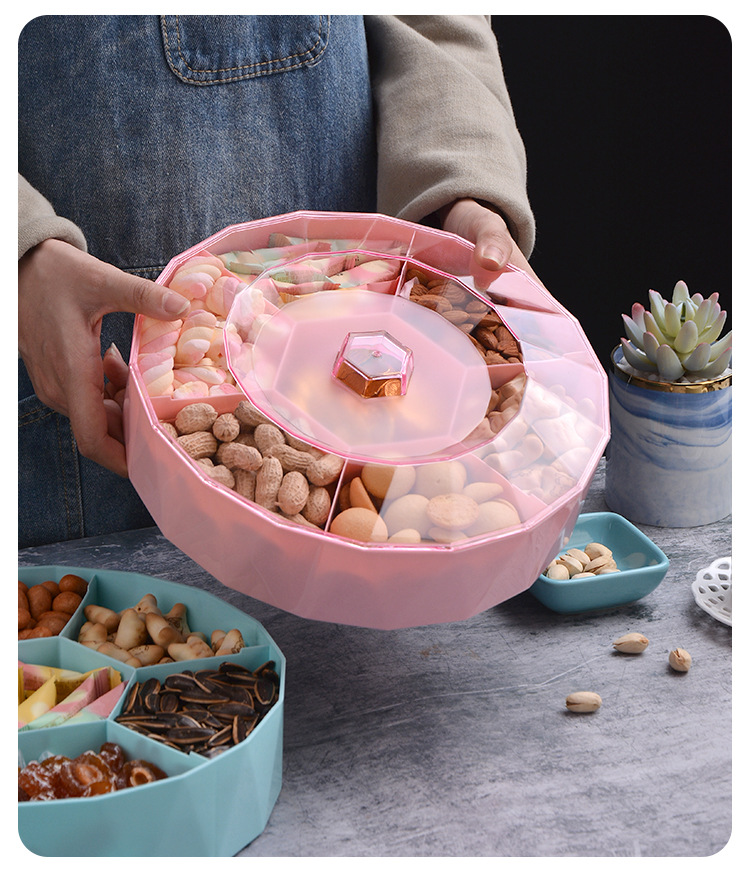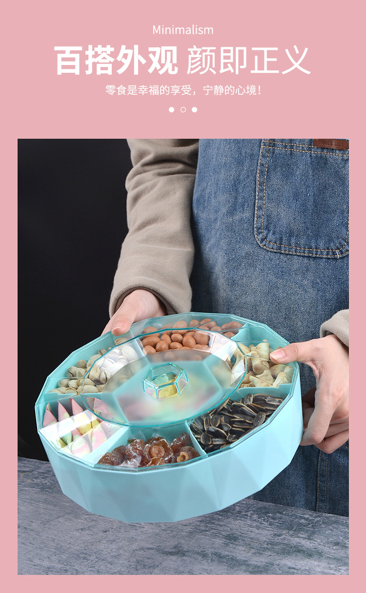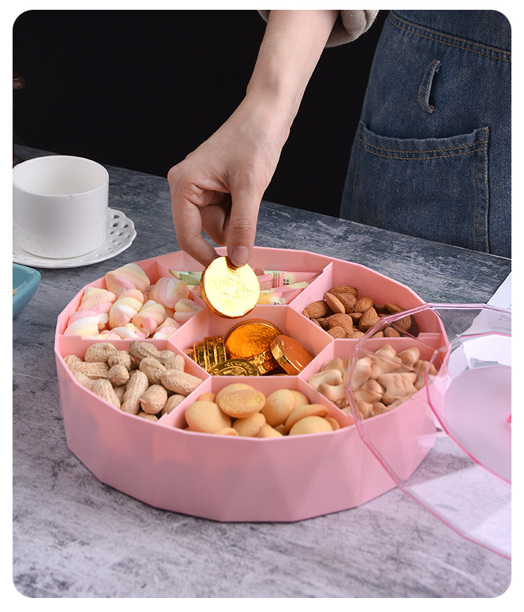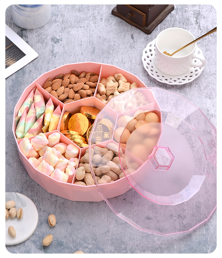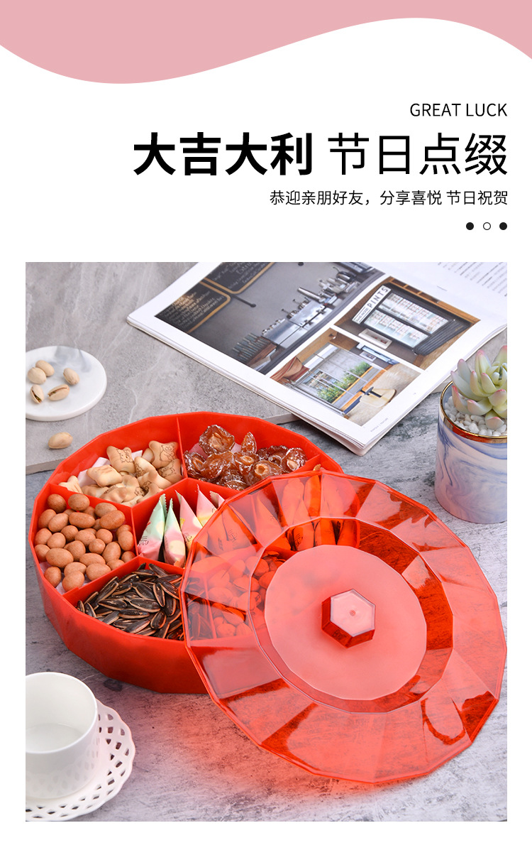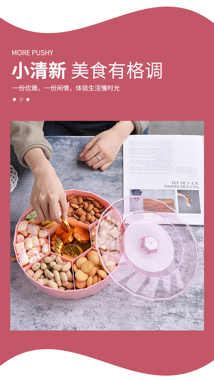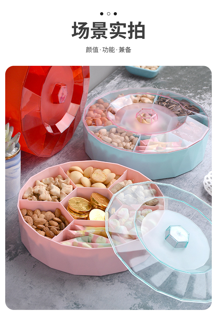 创意塑料带盖分格糖果盒家用客厅透明零食盘果盘婚庆喜糖干果盒子