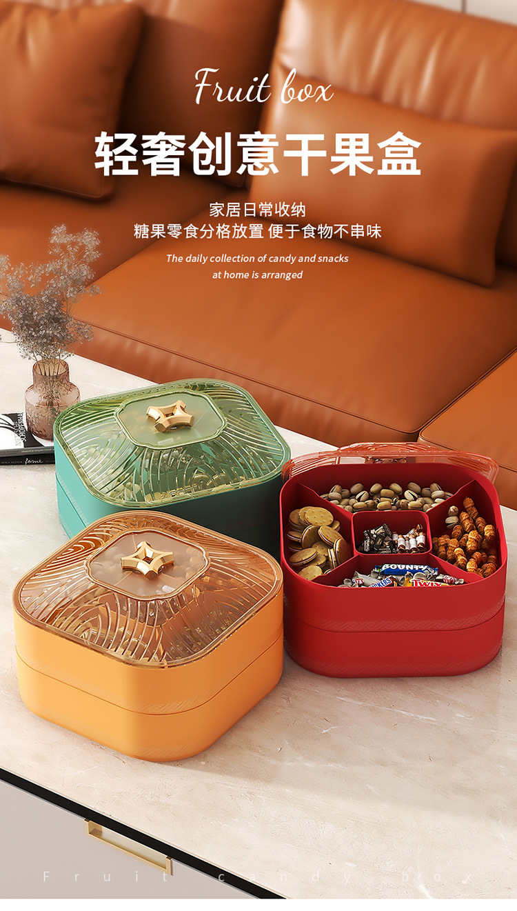 多层分格果盘家用客厅茶几糖果盒带盖防尘干果盘客厅零食盒子