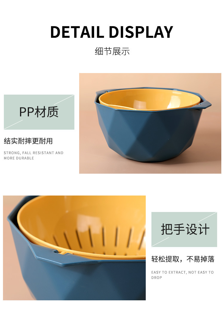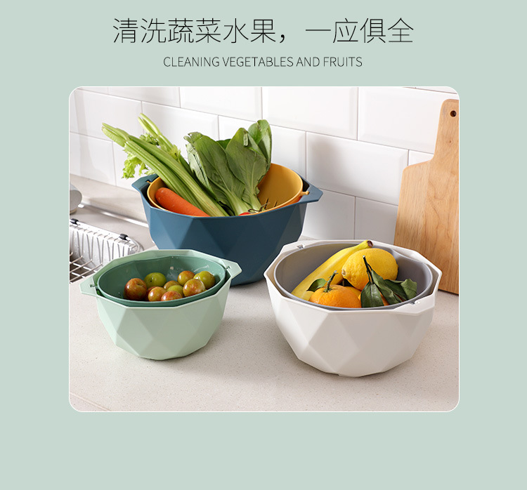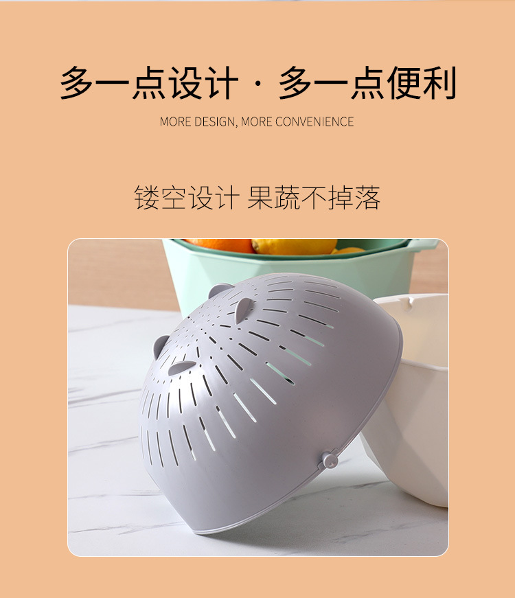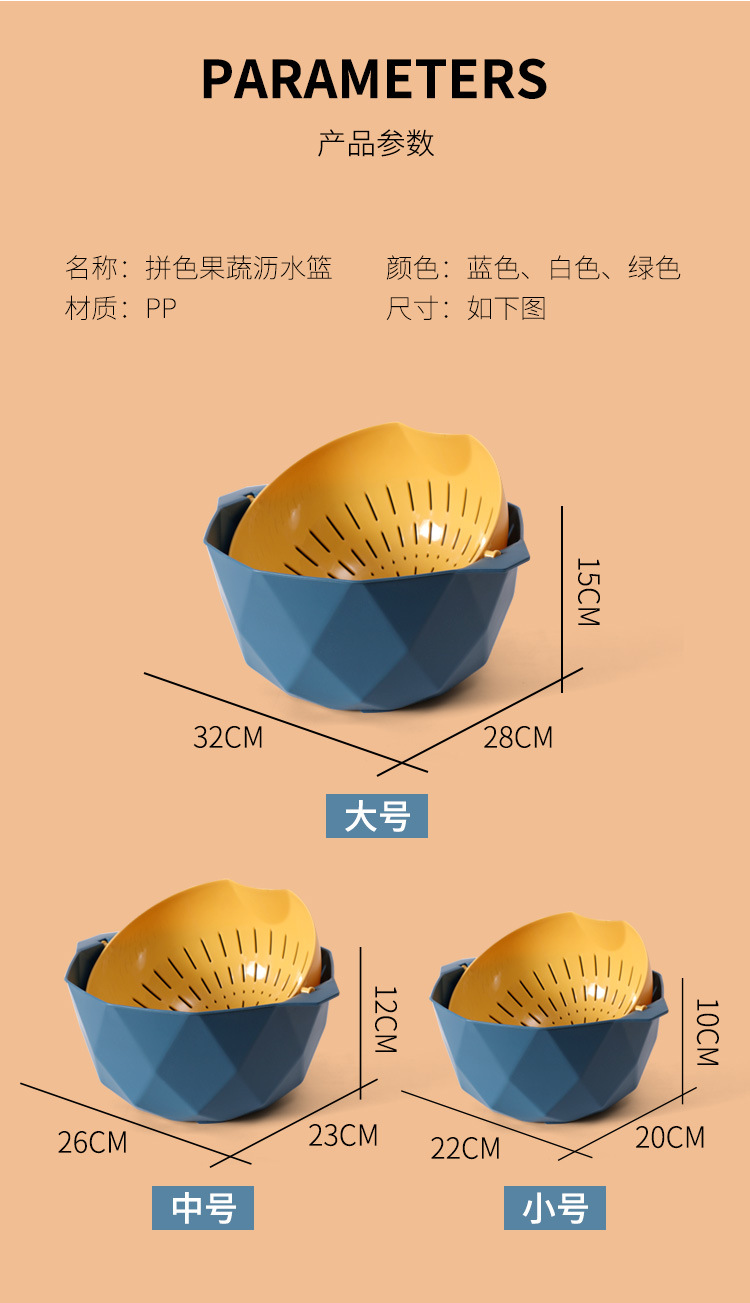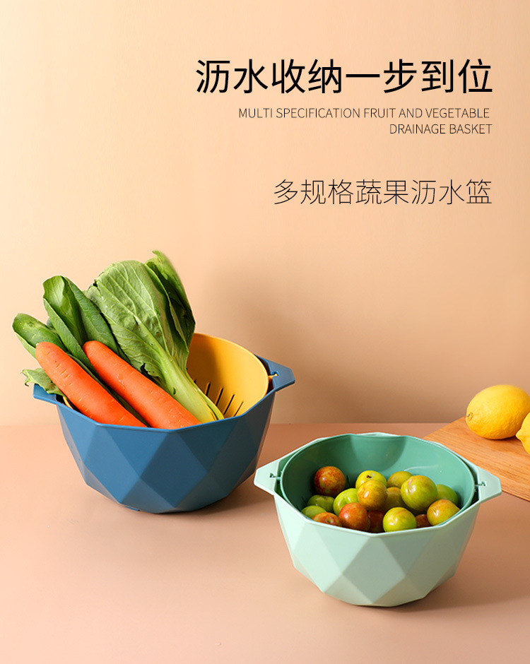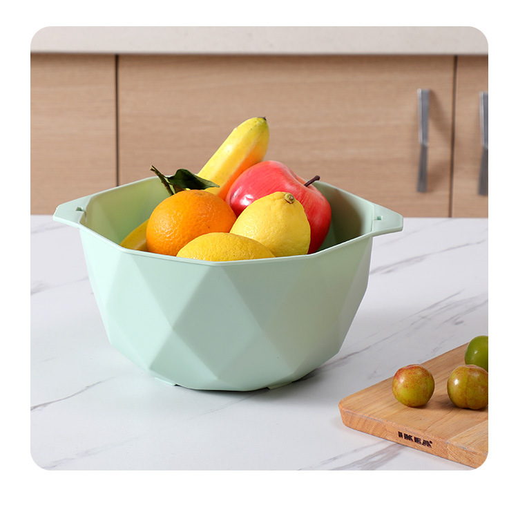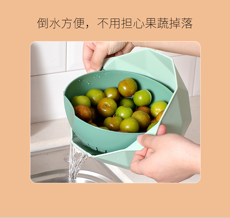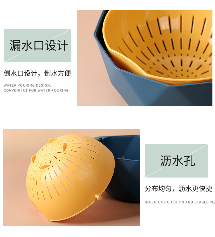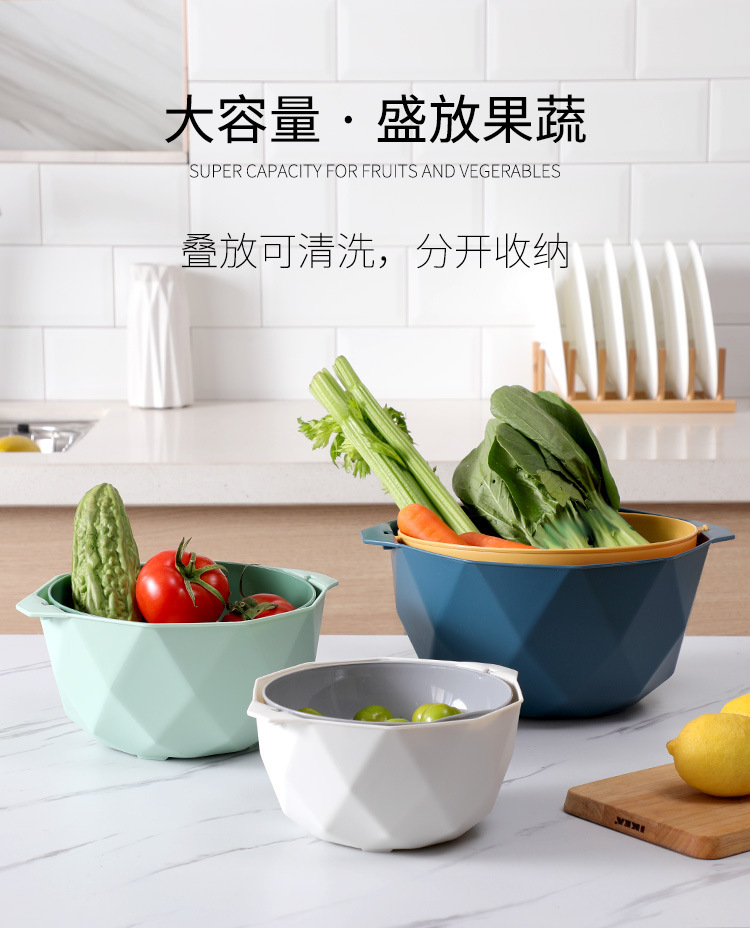 家用创意多功能双层沥水篮拼色水果收纳篮加厚厨房塑料洗菜篮批发