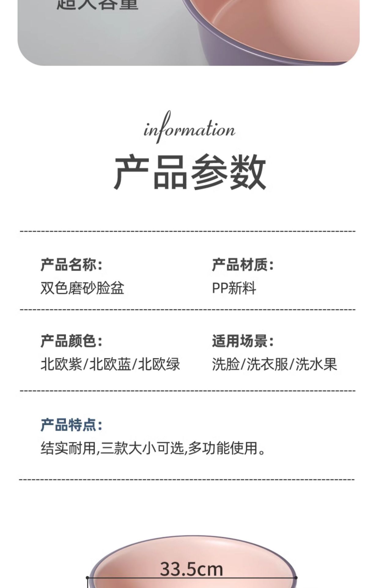 加厚PP塑料洗脸盆撞色双拼色大号洗衣服盆子婴儿学生宿舍洗脚盆