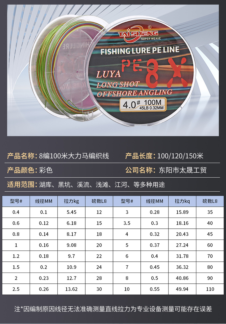跨境专供8编100米大力马编织线PE路亚线远投主线海钓抛竿渔线批发