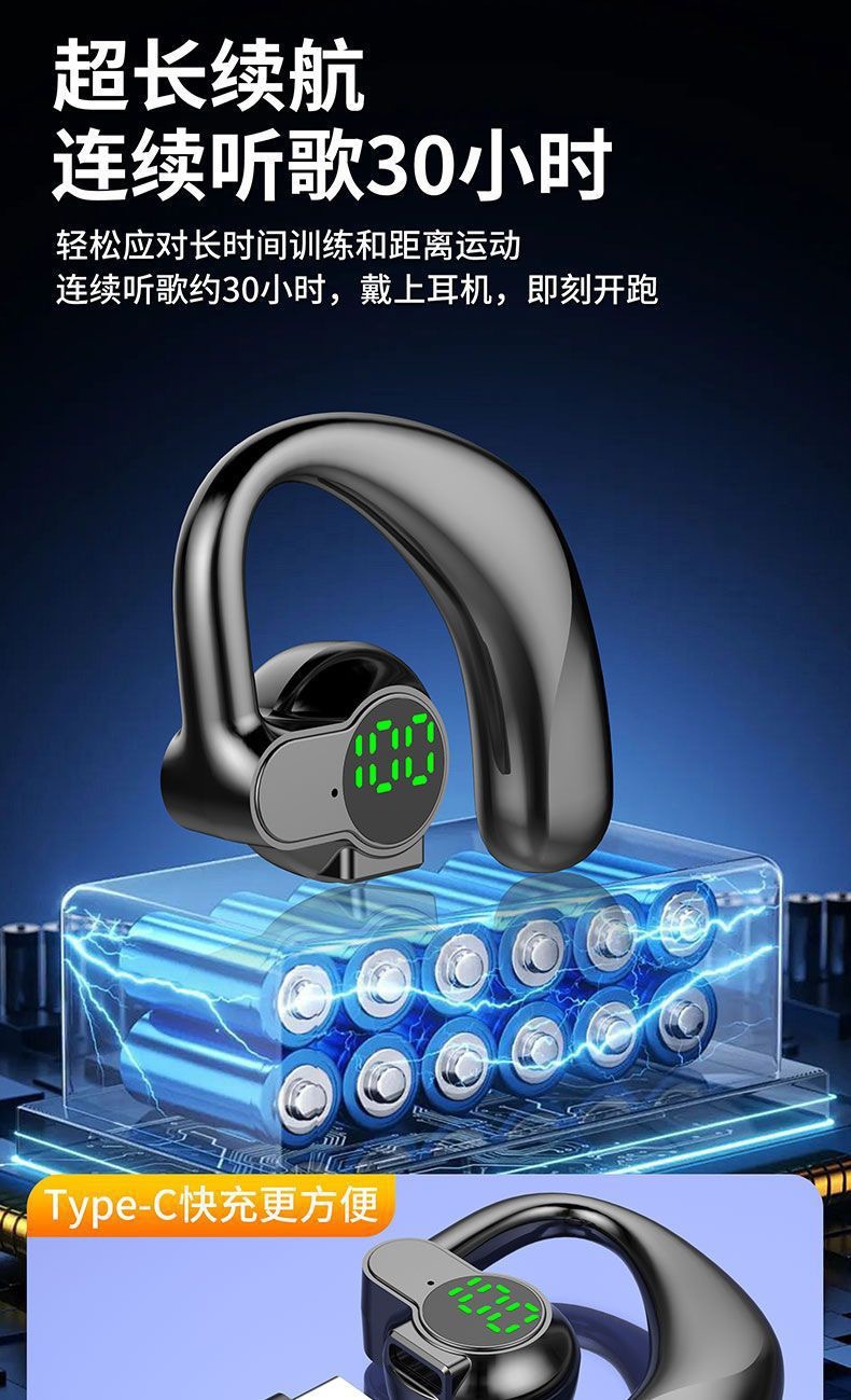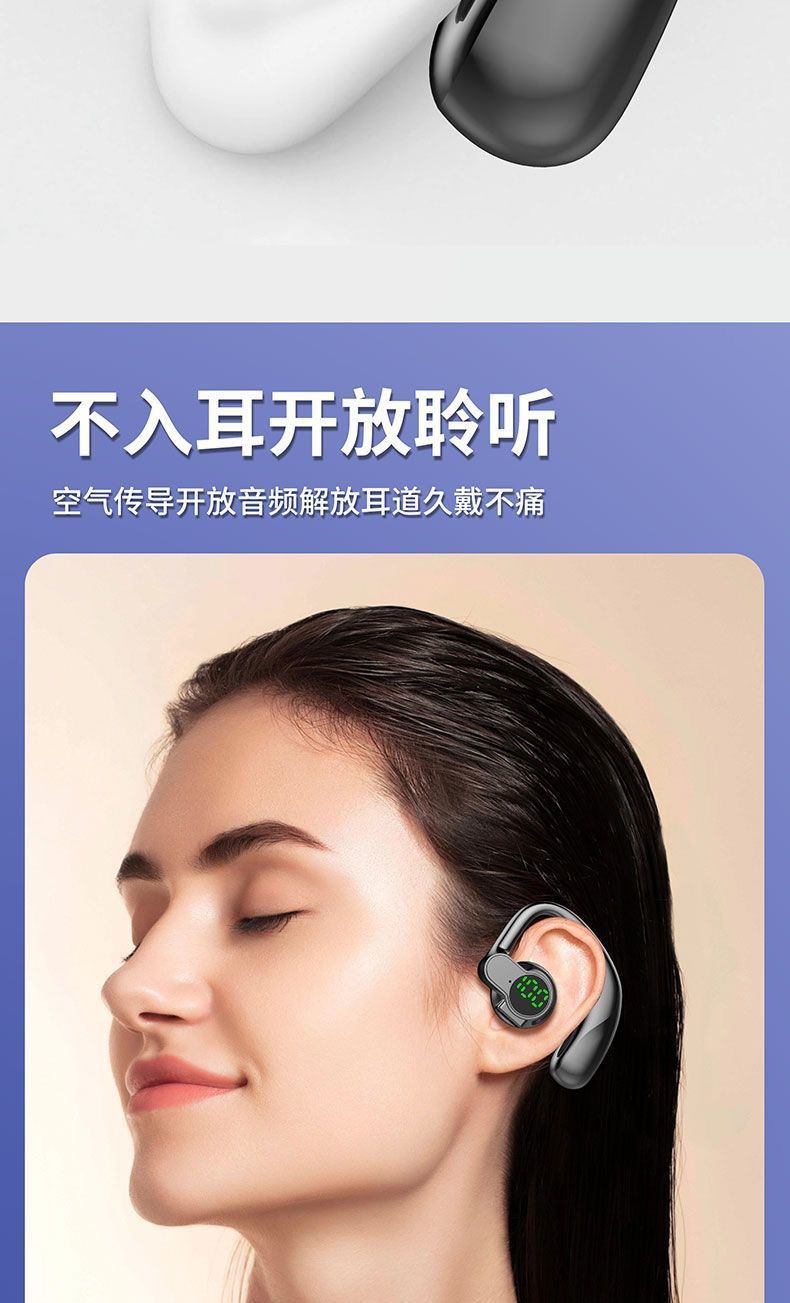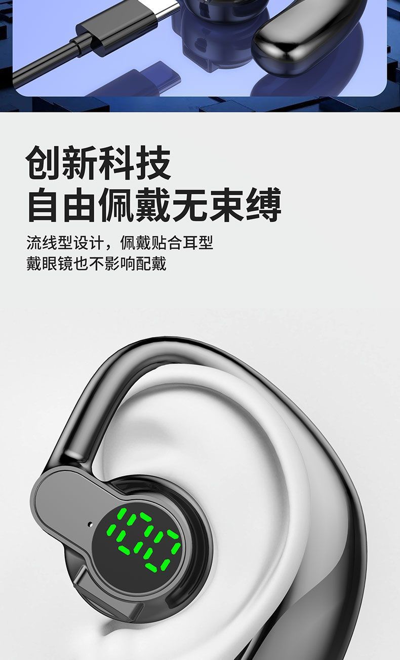 爆款单挂耳式可左右旋转蓝牙耳机led 数显屏不入耳气传导无线批发