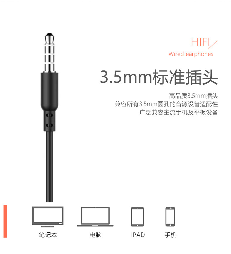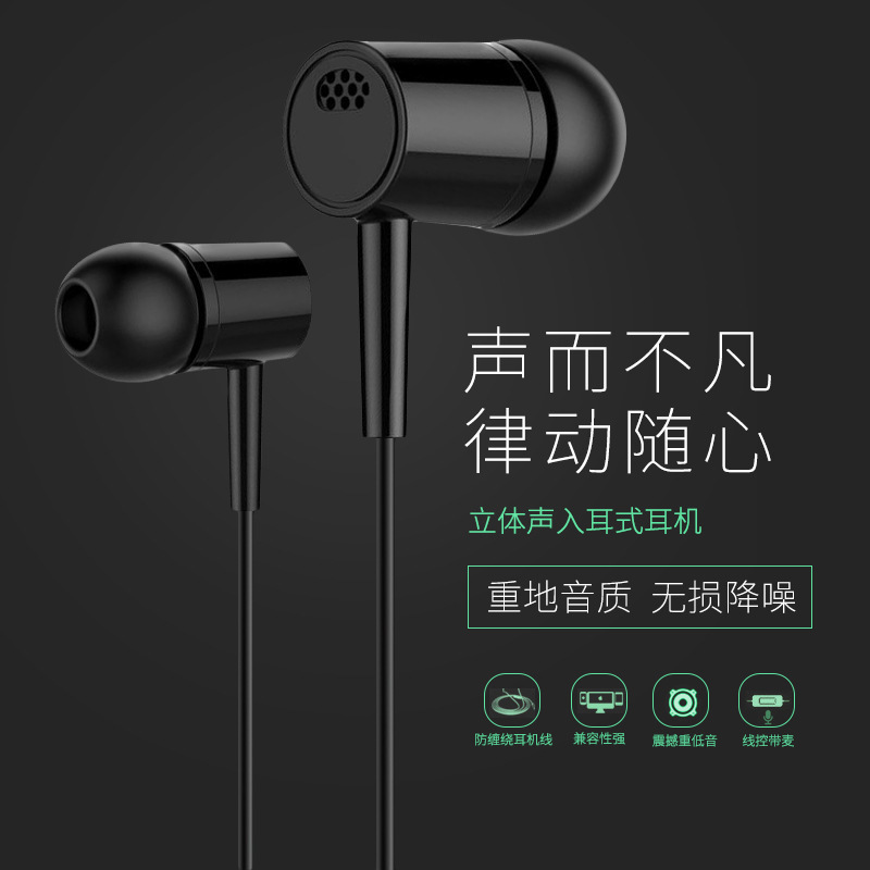 D21重低音入耳式有线耳机线控3.5mm直插通用带麦新款游戏耳塞耳机