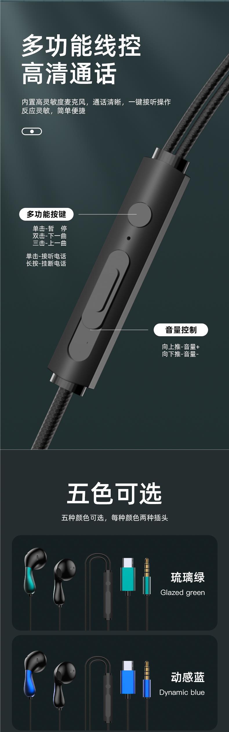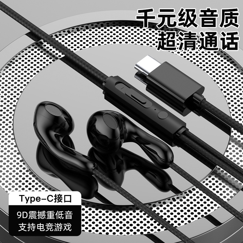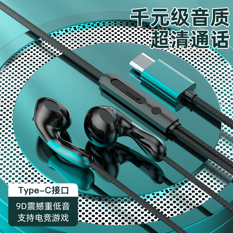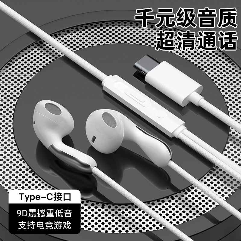 有线耳机高音质入耳式typec接口线控带麦圆孔适用于小米oppo电脑
