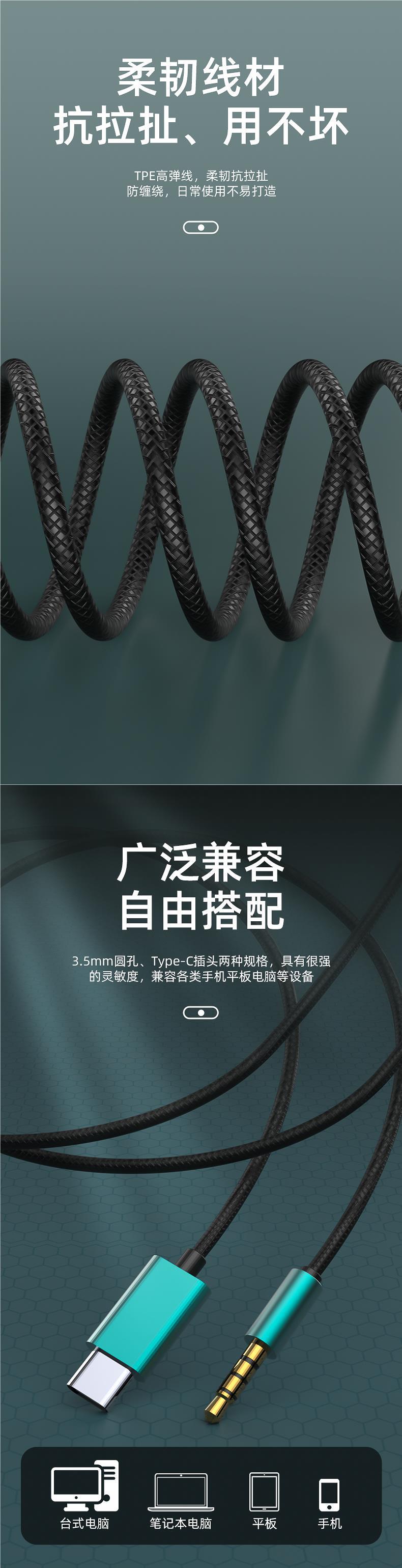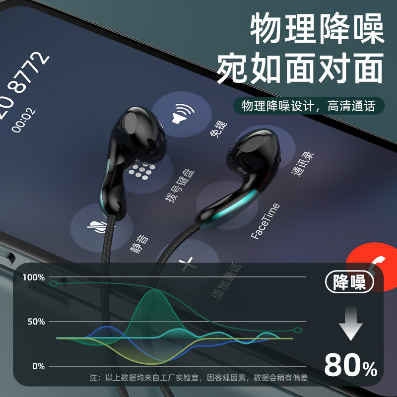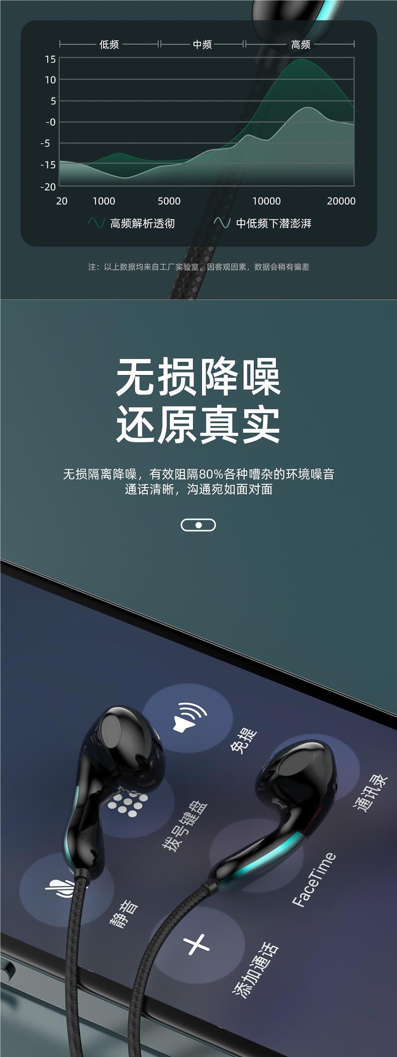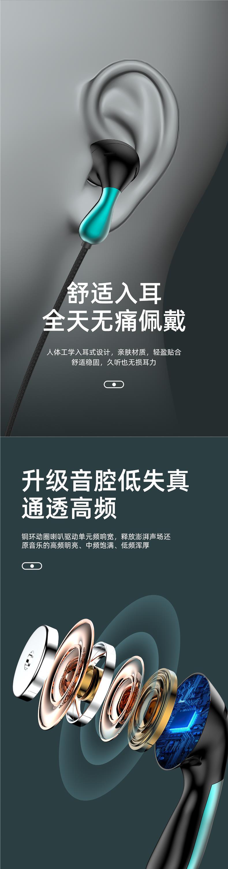 有线耳机高音质入耳式typec接口线控带麦圆孔适用于小米oppo电脑