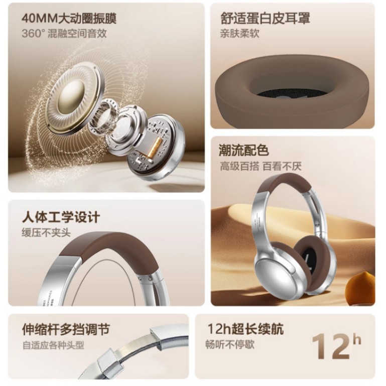 VJE901复古金属头戴式蓝牙耳机运动无线手机通话降噪耳机私模现货