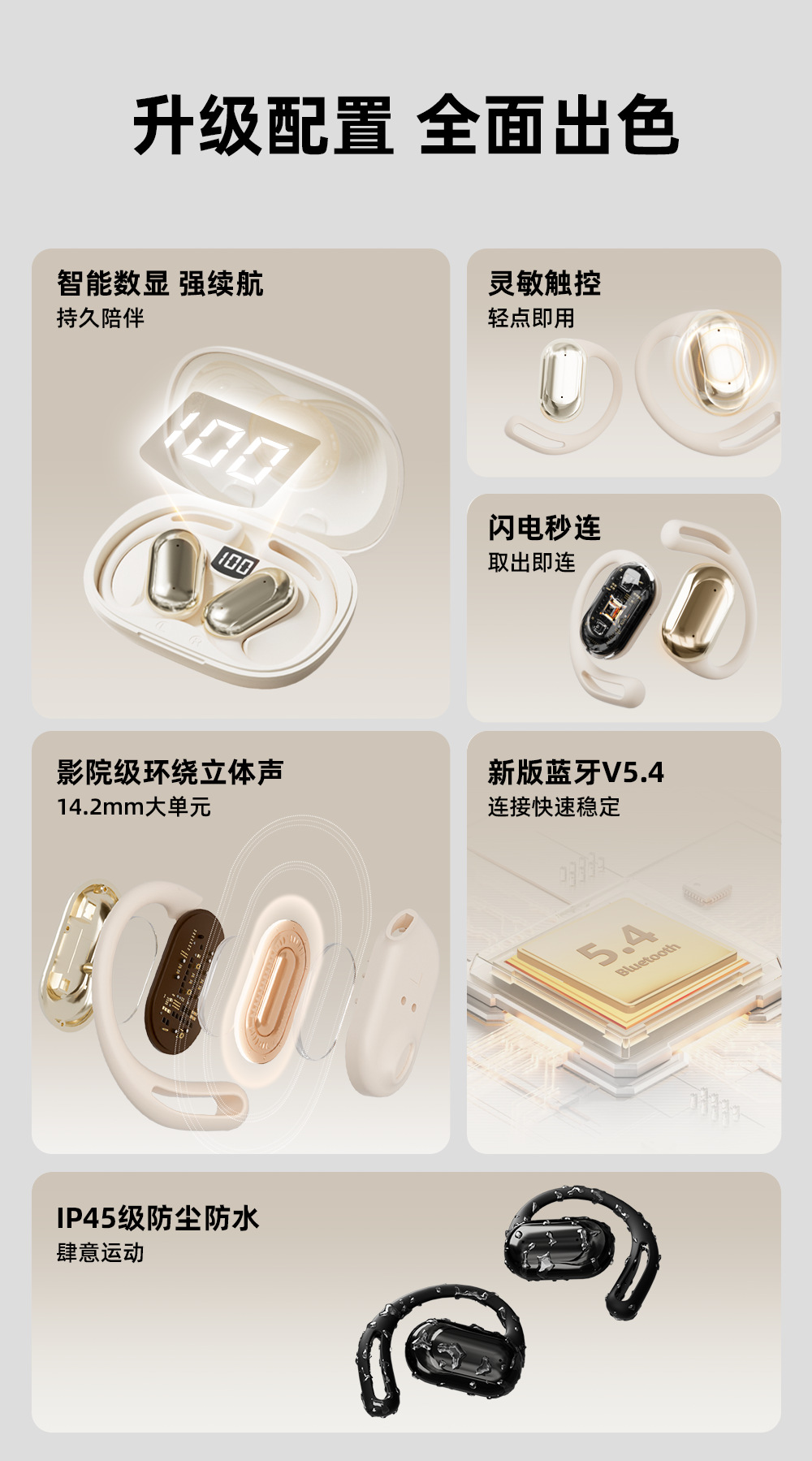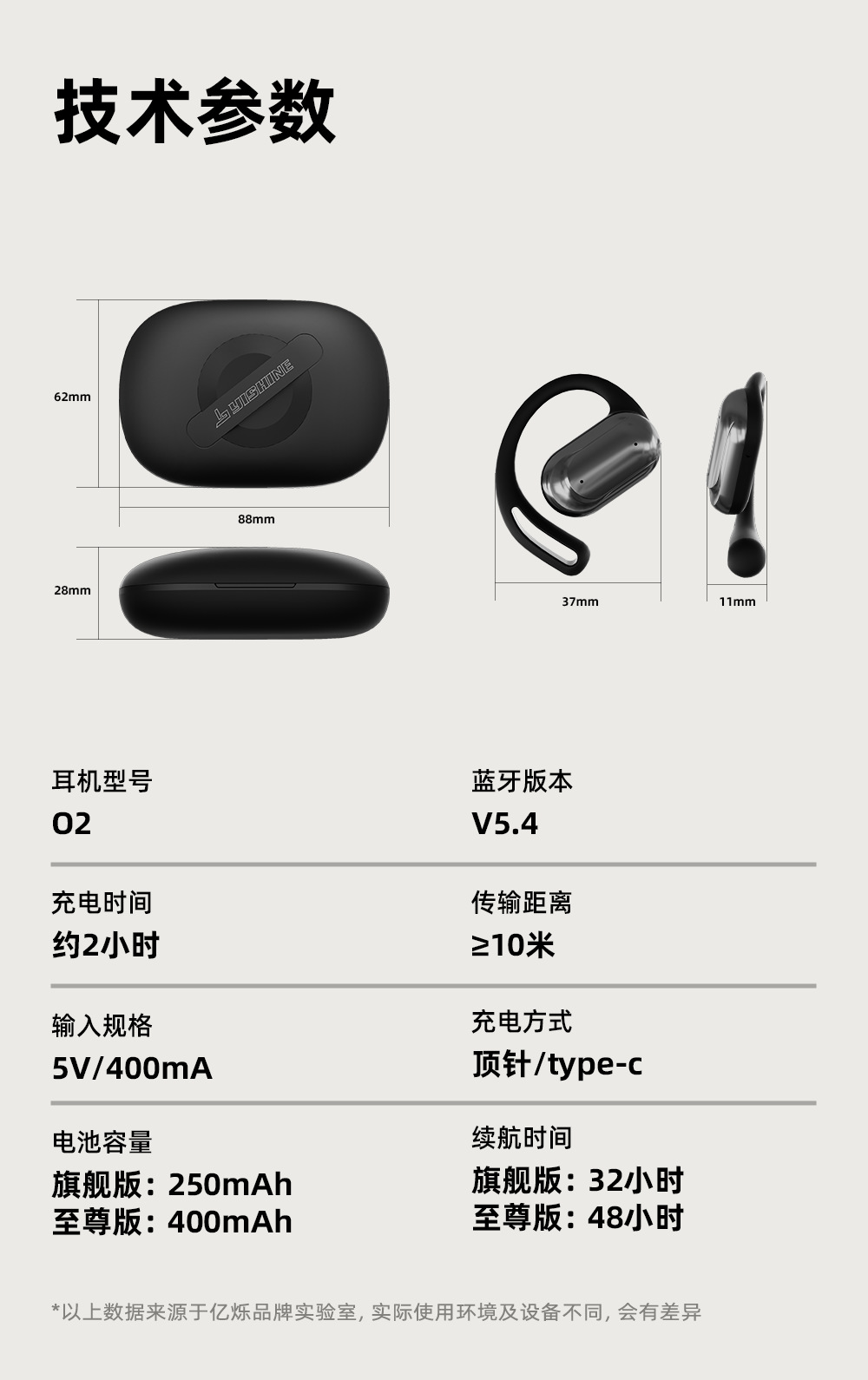 亿烁O2蓝牙耳机超长续航开放式不入耳降噪运动挂耳式ows私模新款