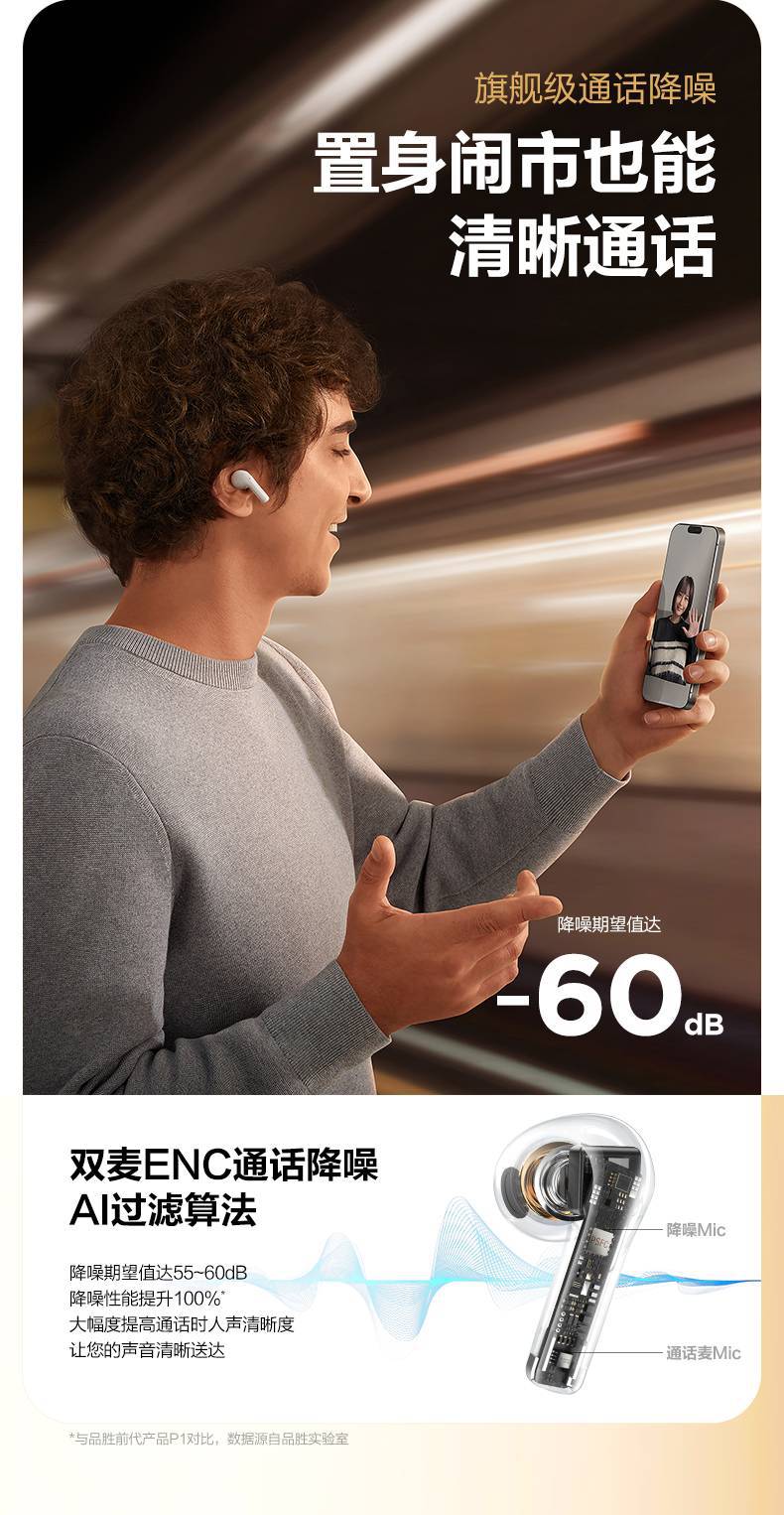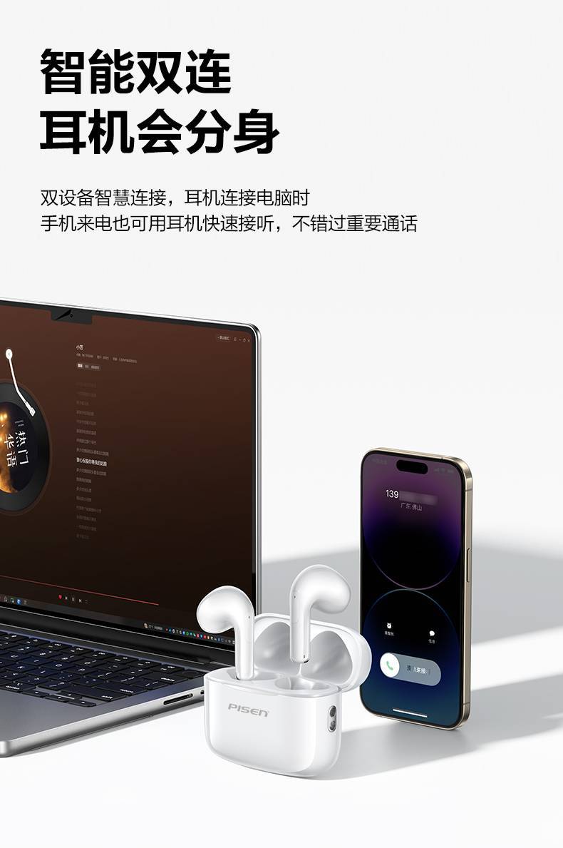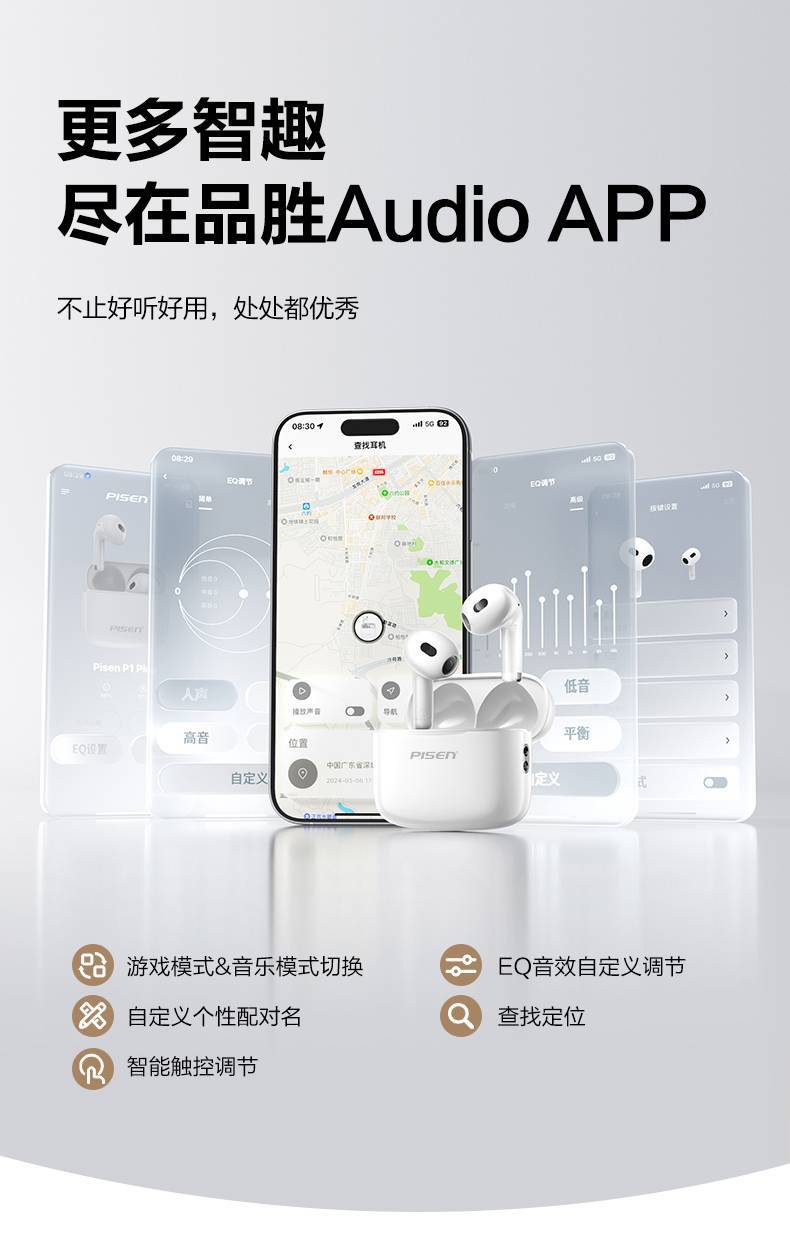 品胜P1Plus无线蓝牙耳机2024款5.4双耳运动音乐耳机超长待机通用