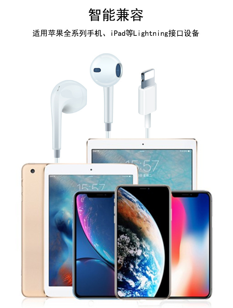 适用苹果lighting破解版耳机7/8/X/11/13/14线控手机入耳式耳塞