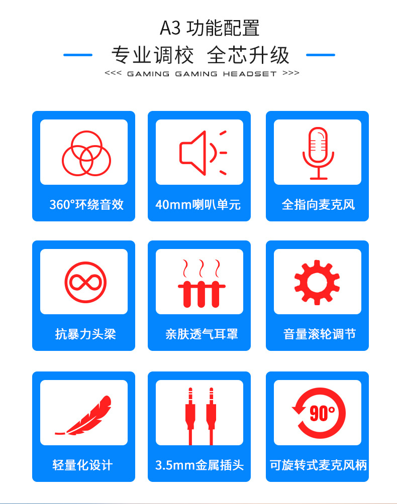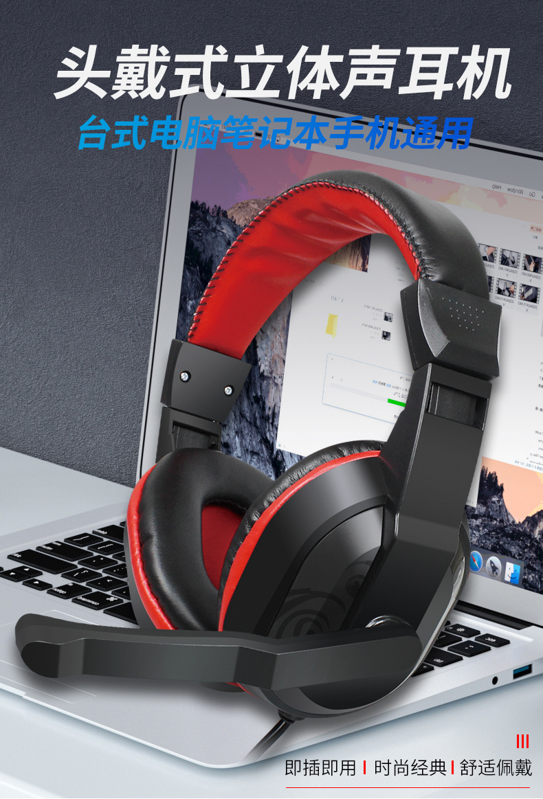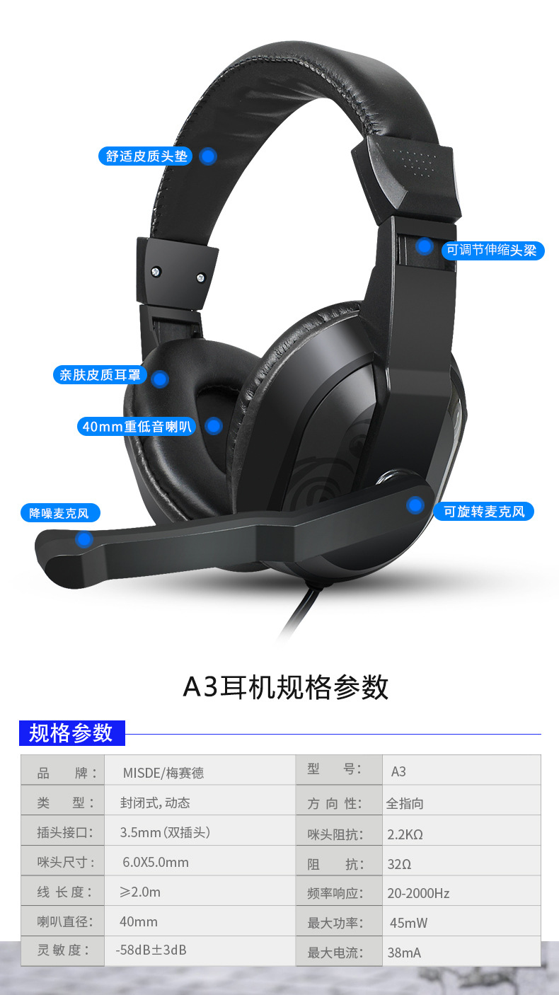 跨境A3头戴式有线耳机台式笔记本电脑游戏吃鸡耳麦带麦克风现货