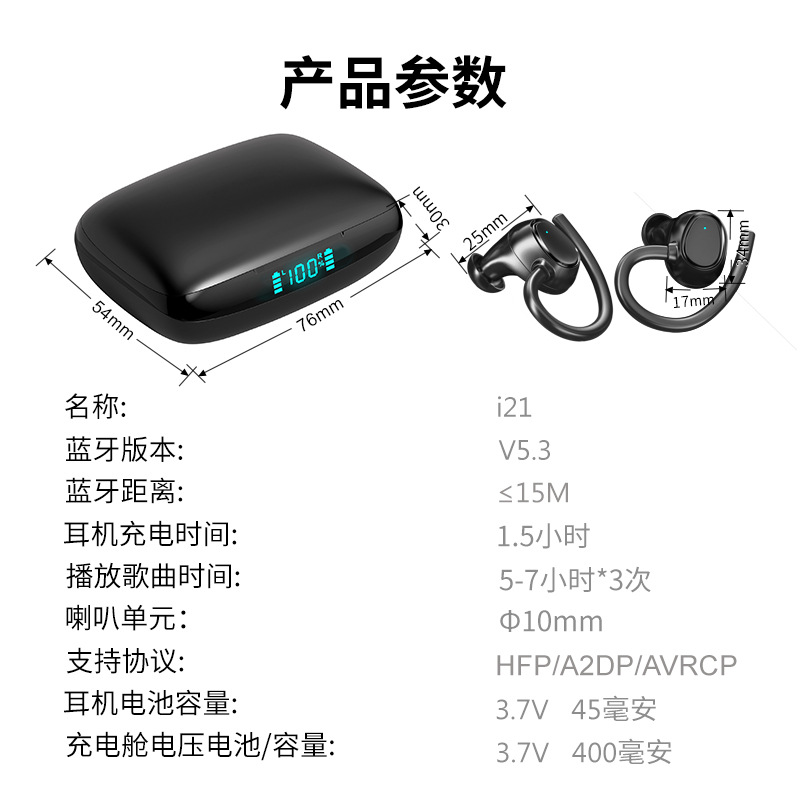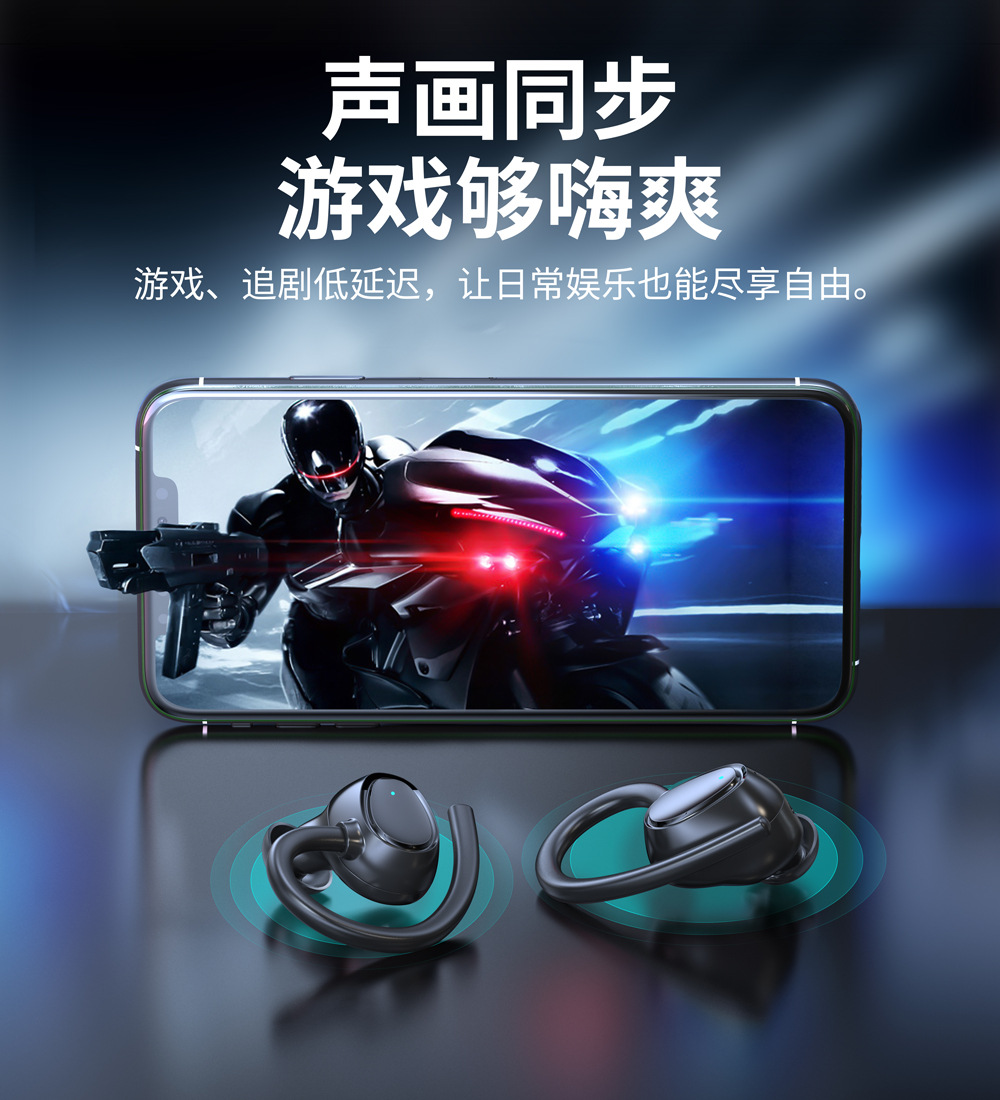 跨境爆款tws蓝牙耳机游戏电竞续航高音质智能数显挂耳式无线耳机