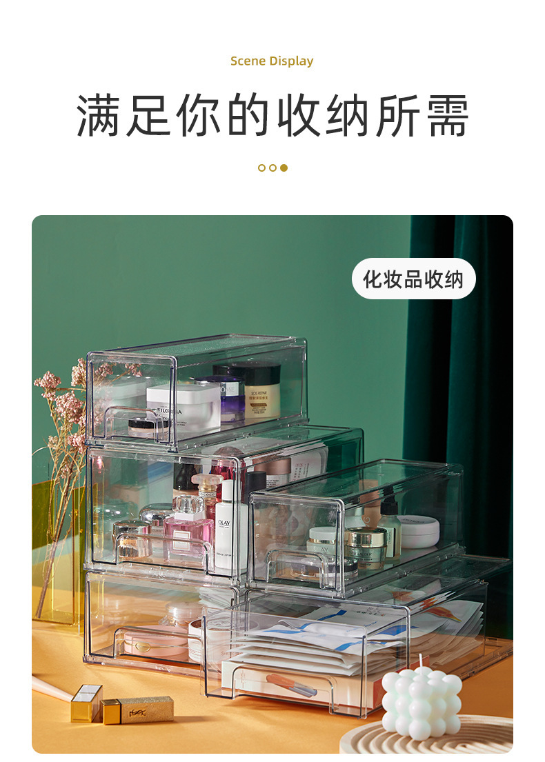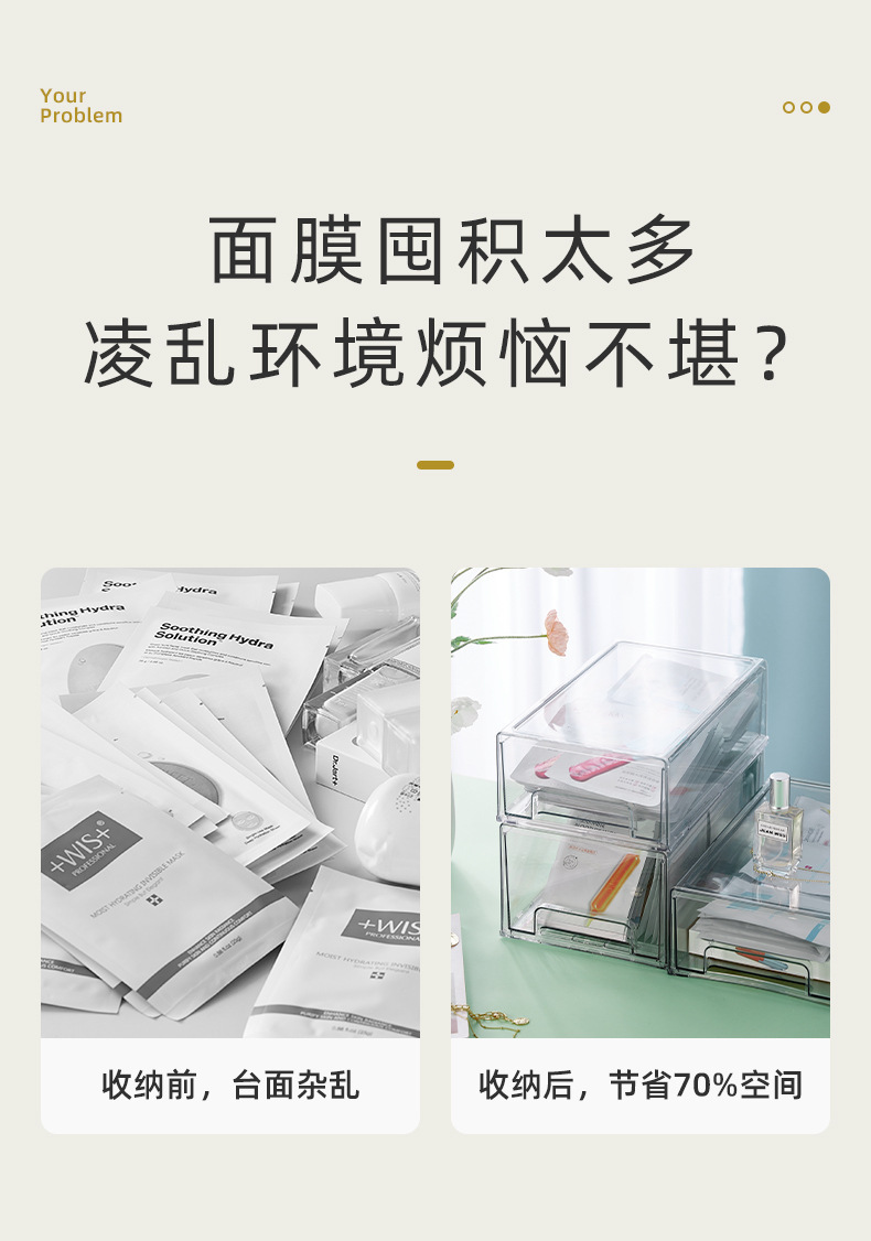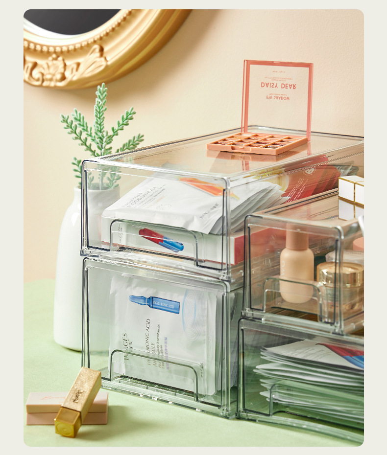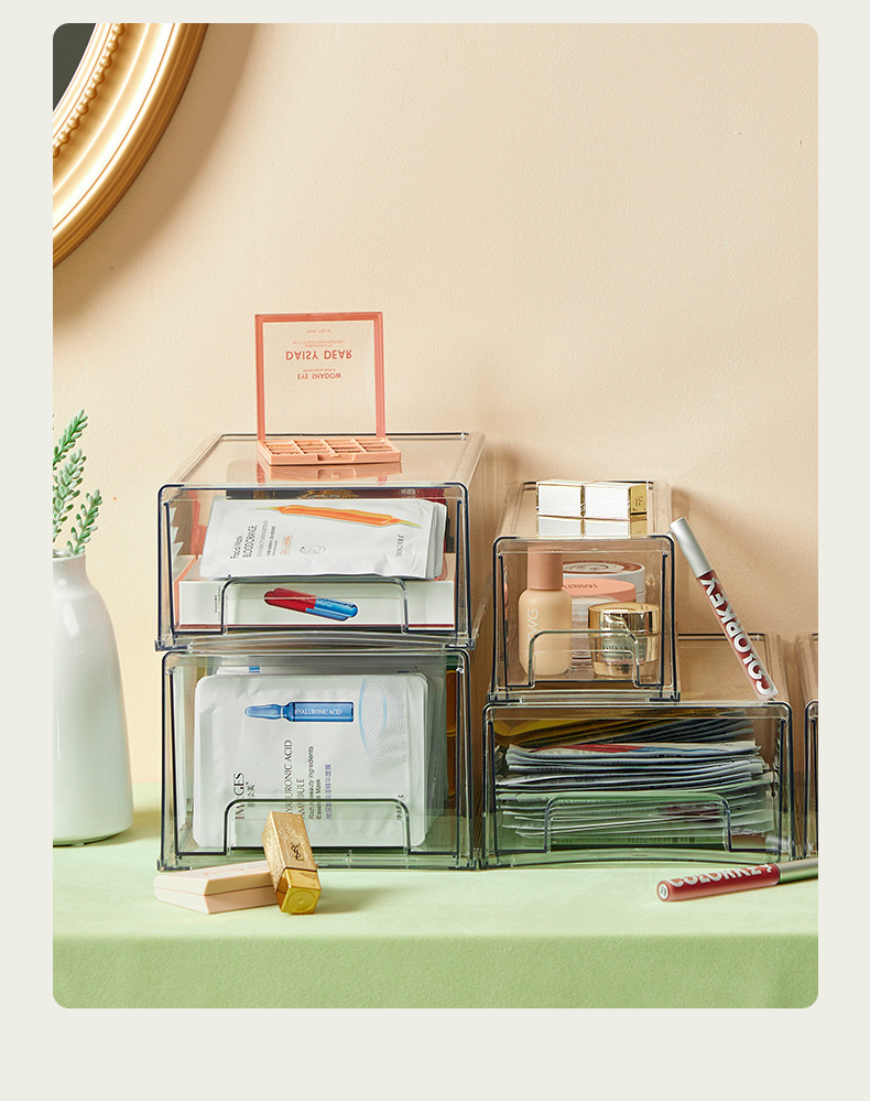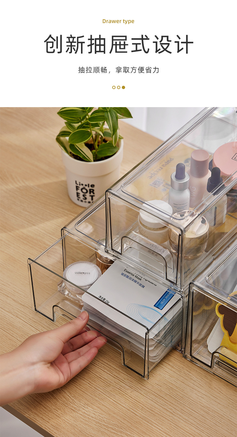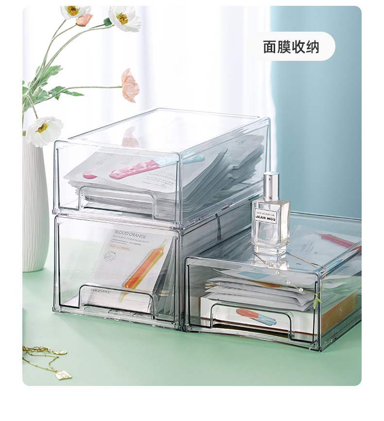 透明亚克力抽屉式整理盒面膜收纳盒桌面化妆品护肤品家用宿舍杂物