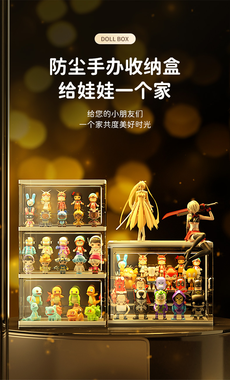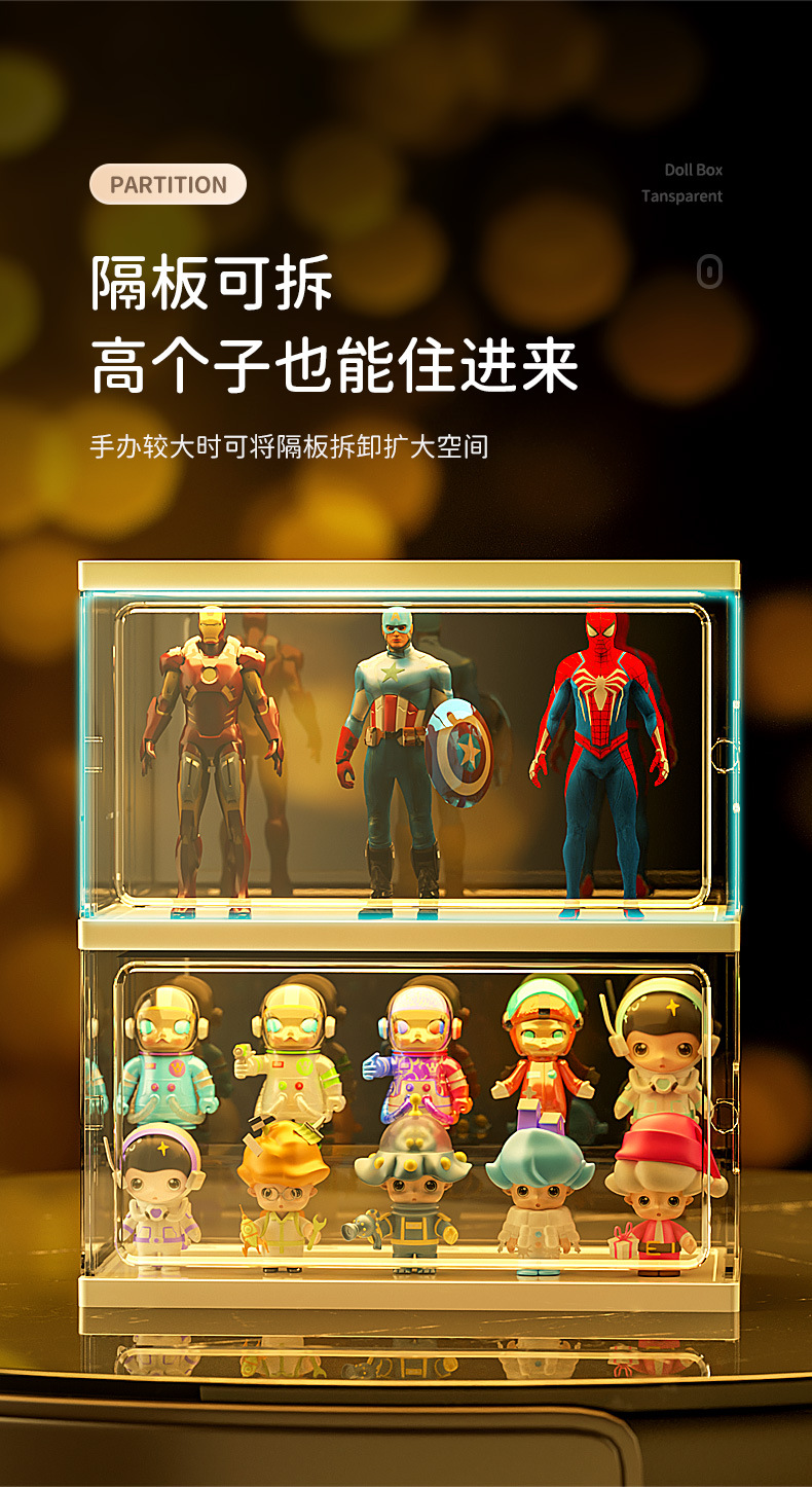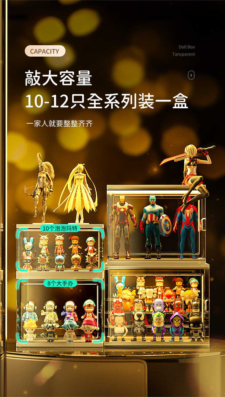 手办盲盒收纳展示架 泡泡玛特娃娃展示盒乐高手办透明摆柜亚克力