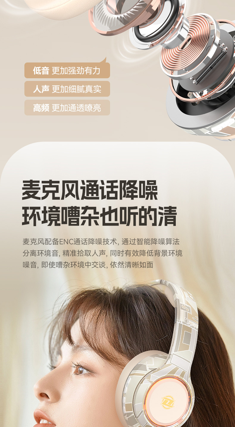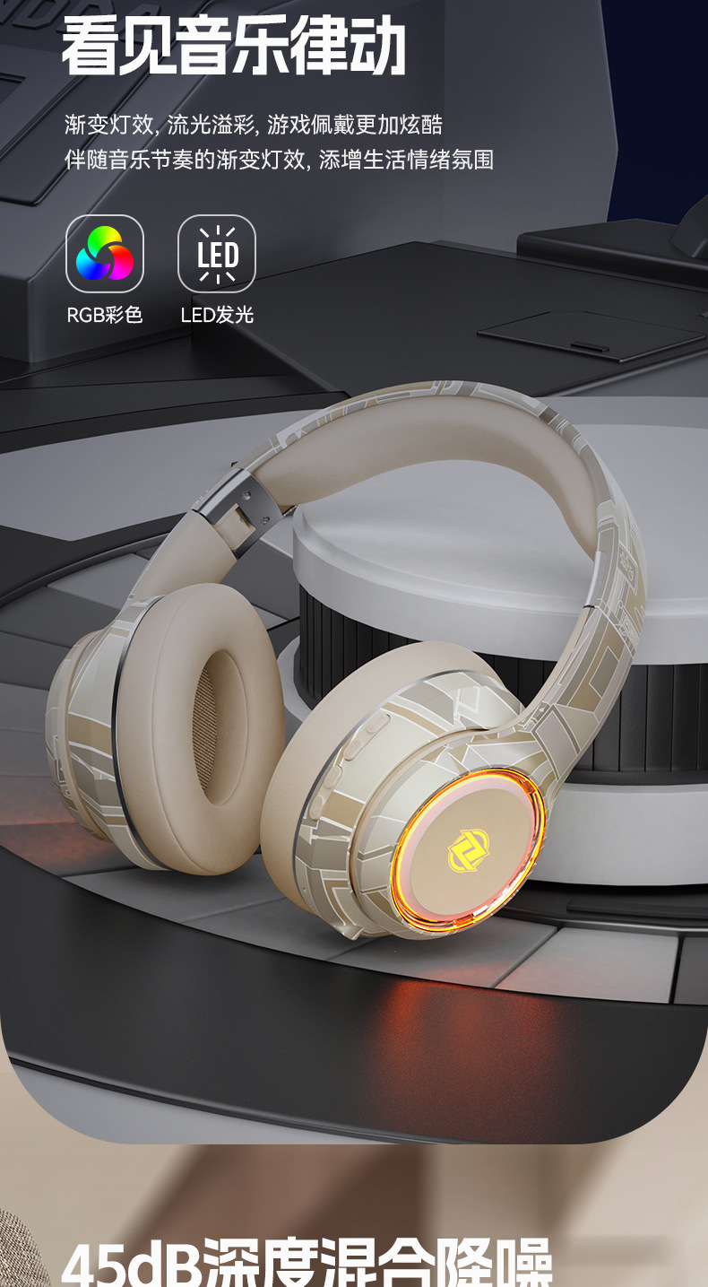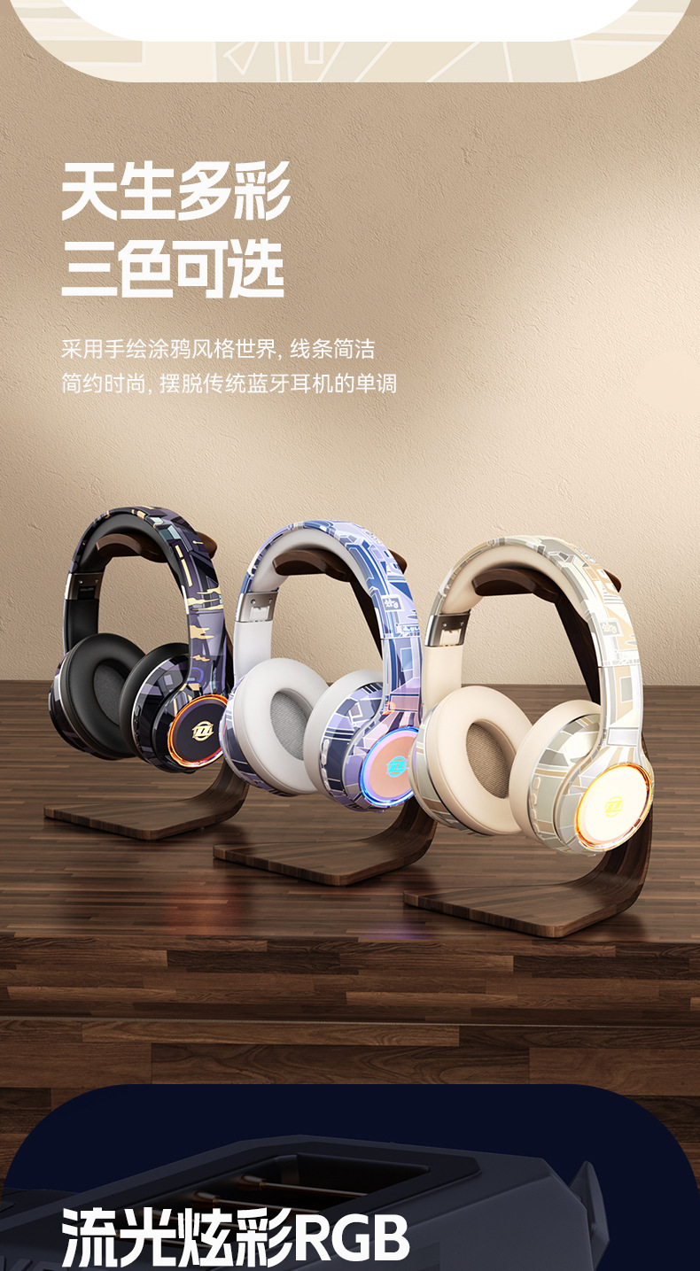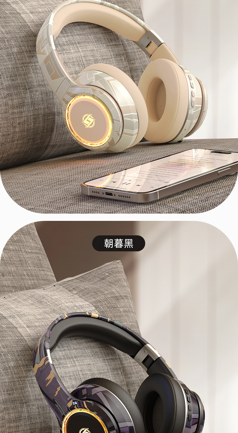 国潮风5.3爆款蓝牙耳机头戴式电竞运动重低音无线耳麦厂家现货批