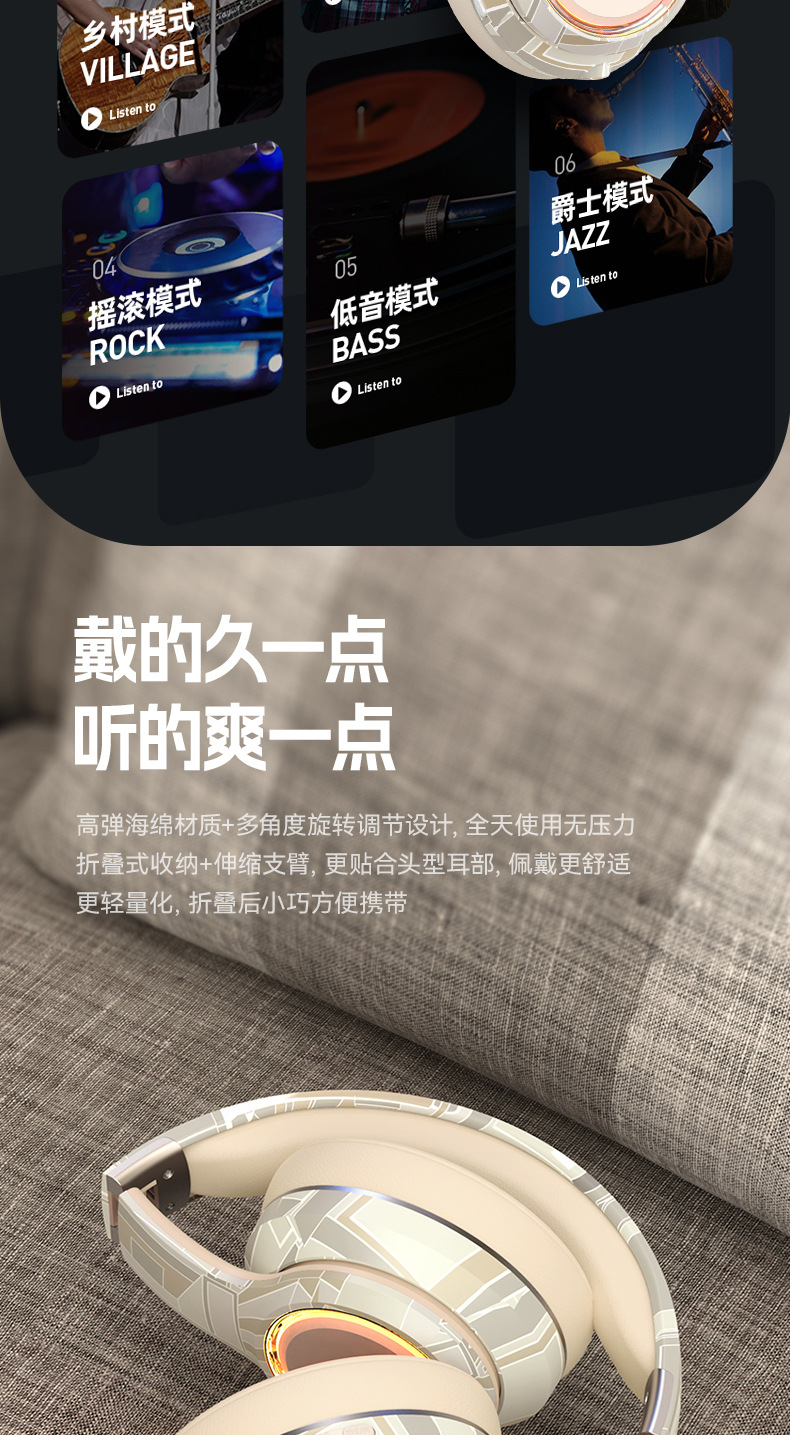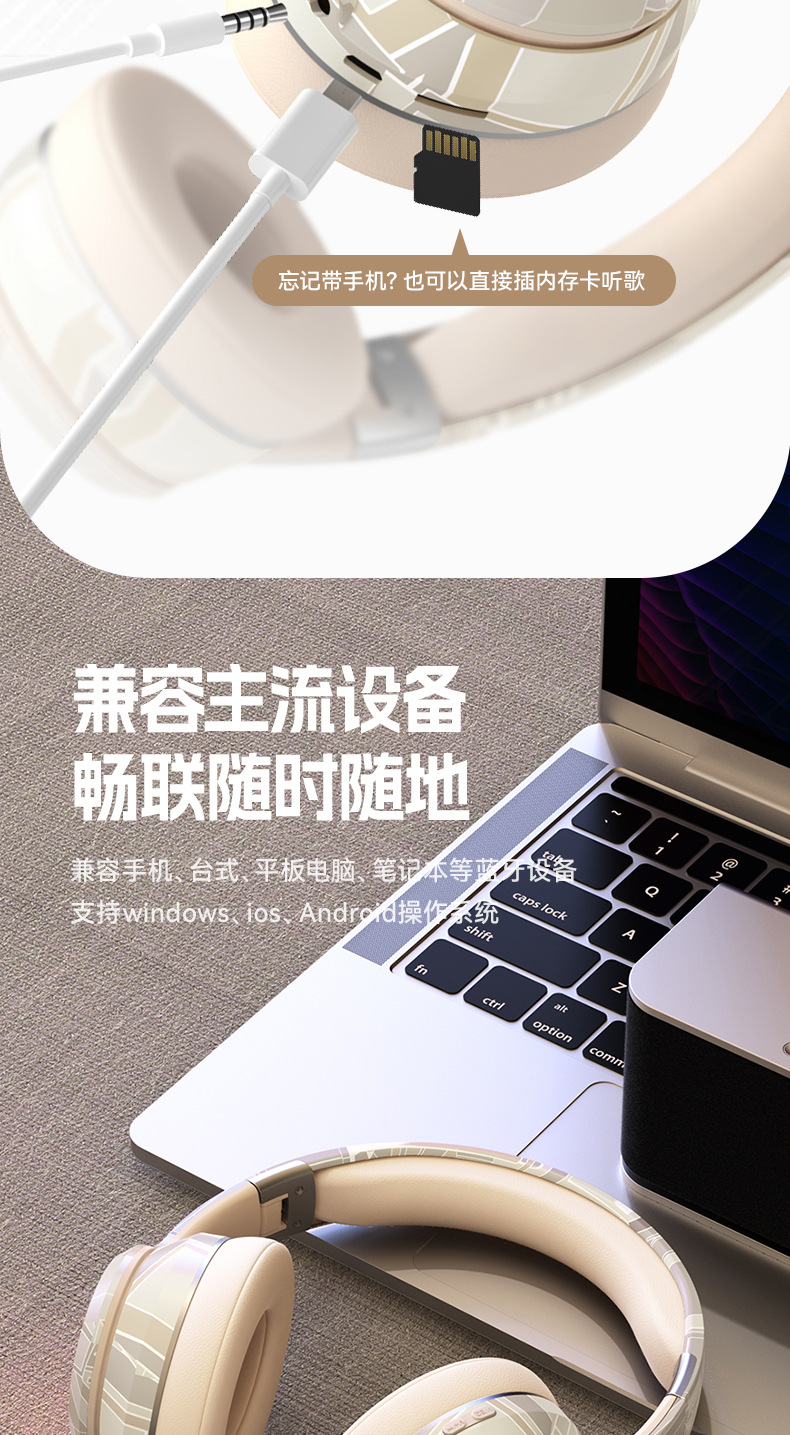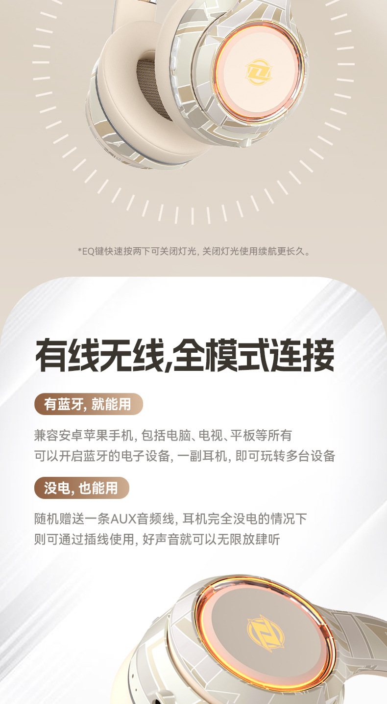 国潮风5.3爆款蓝牙耳机头戴式电竞运动重低音无线耳麦厂家现货批