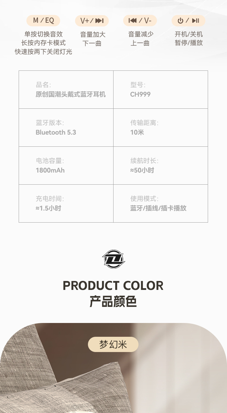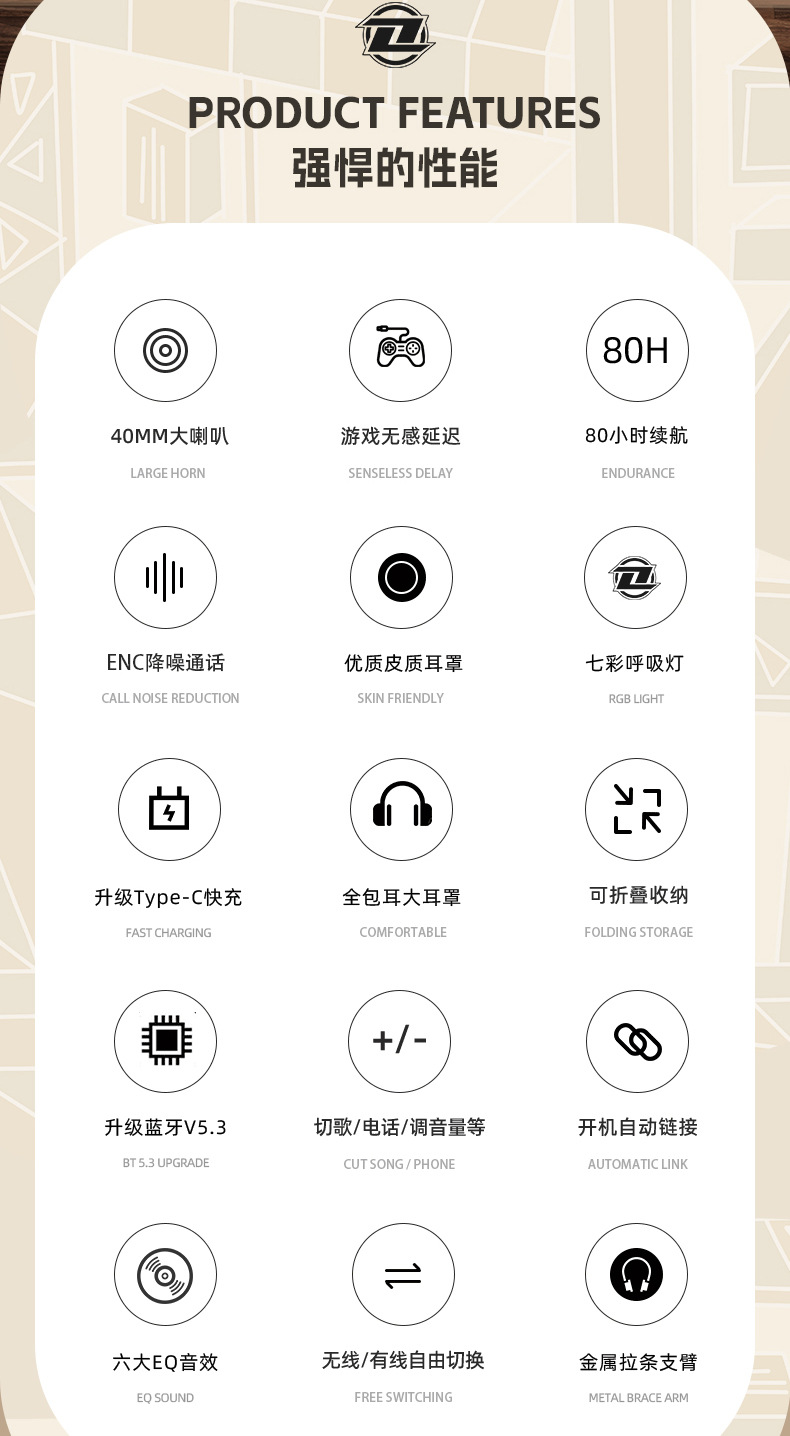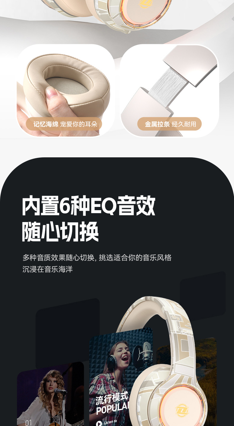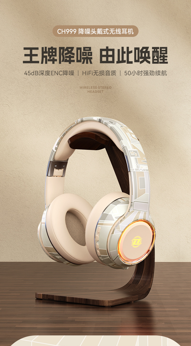 国潮风5.3爆款蓝牙耳机头戴式电竞运动重低音无线耳麦厂家现货批