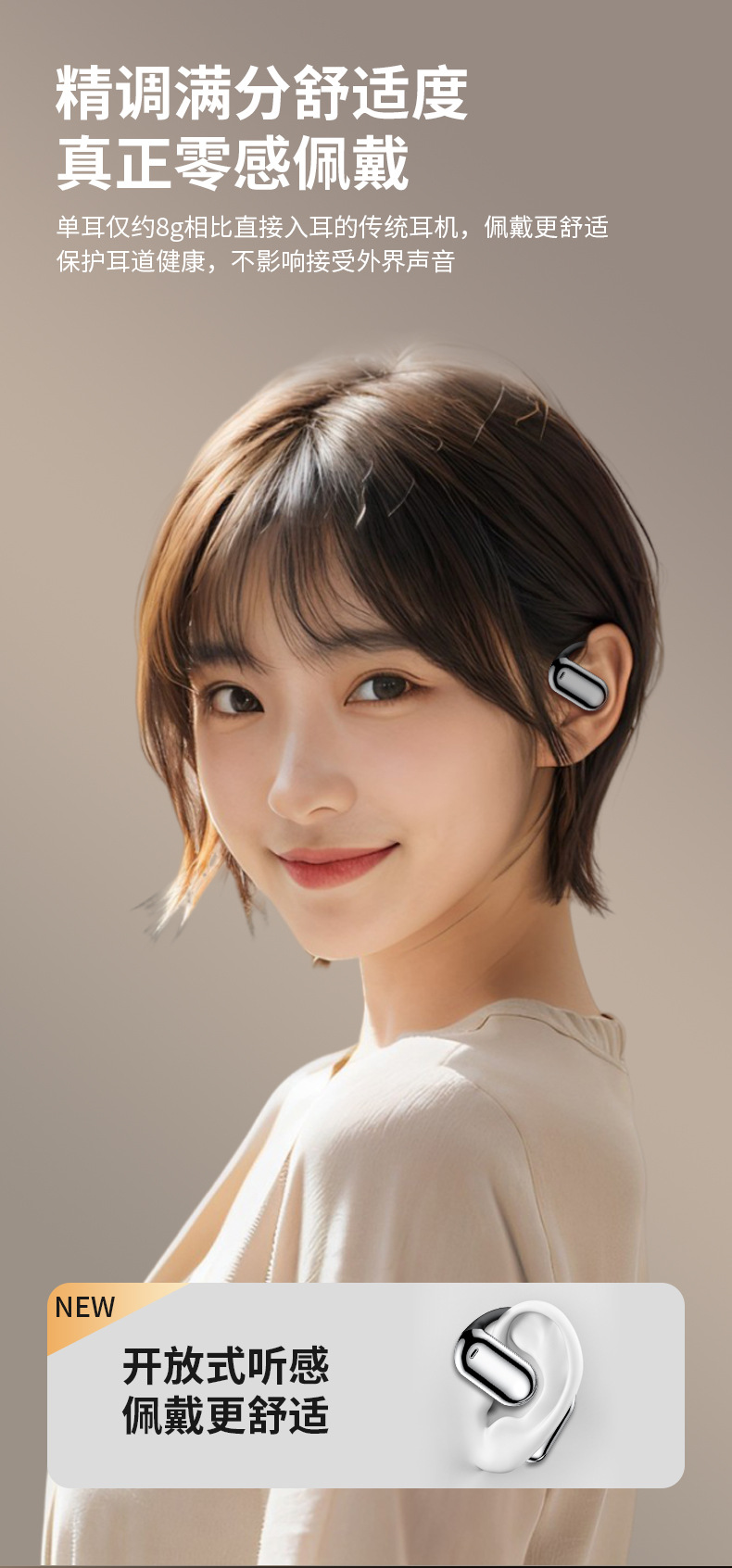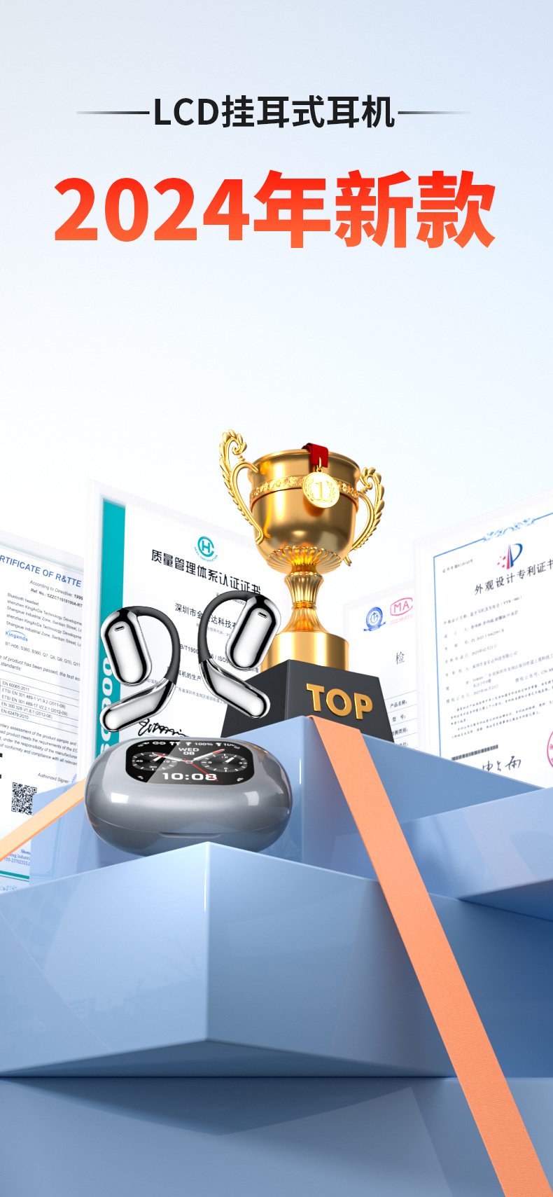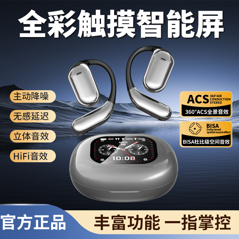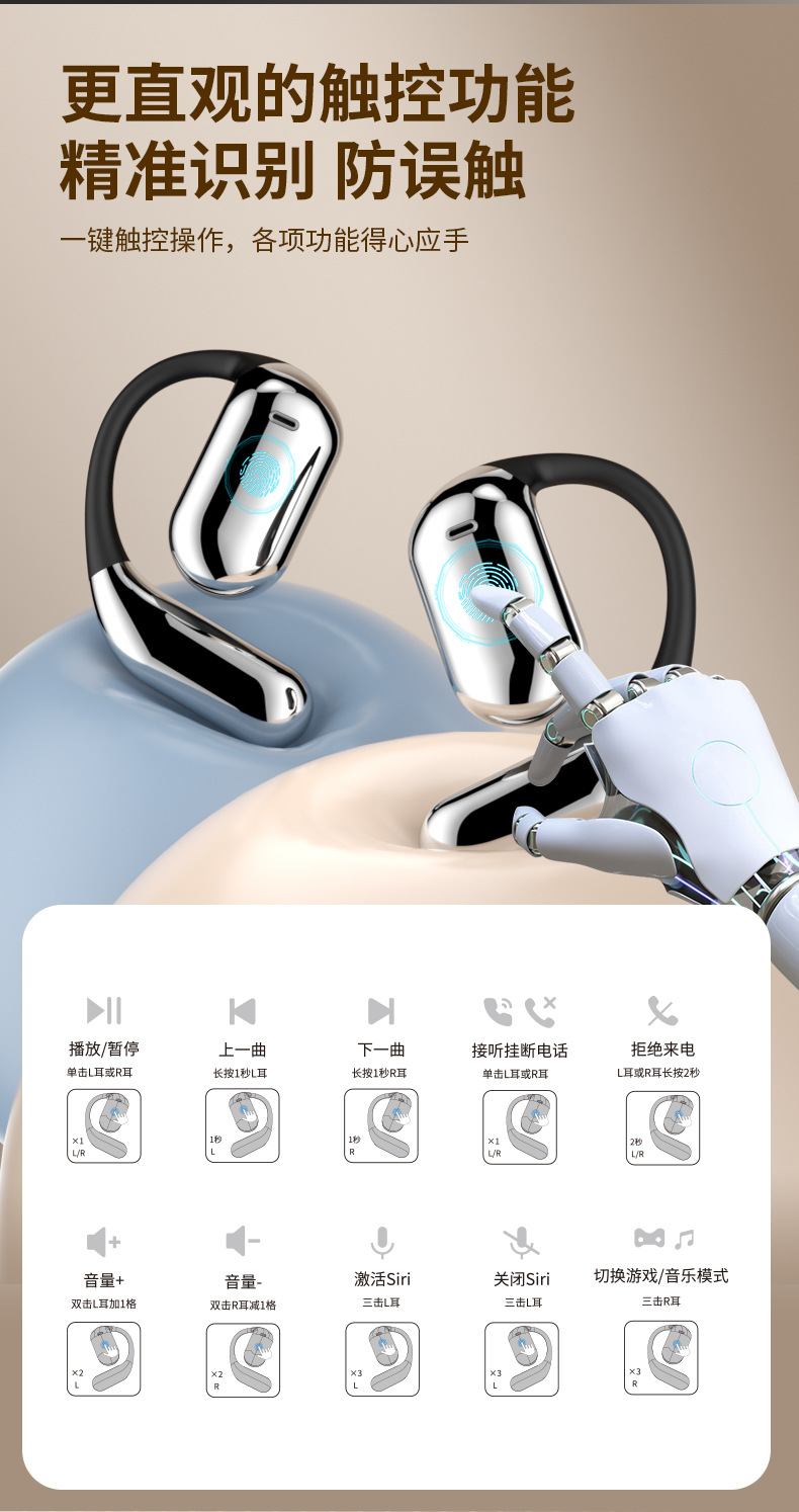 爆款挂耳式LCD彩屏蓝牙耳机开放式不入耳运动无线智能AI翻译耳机