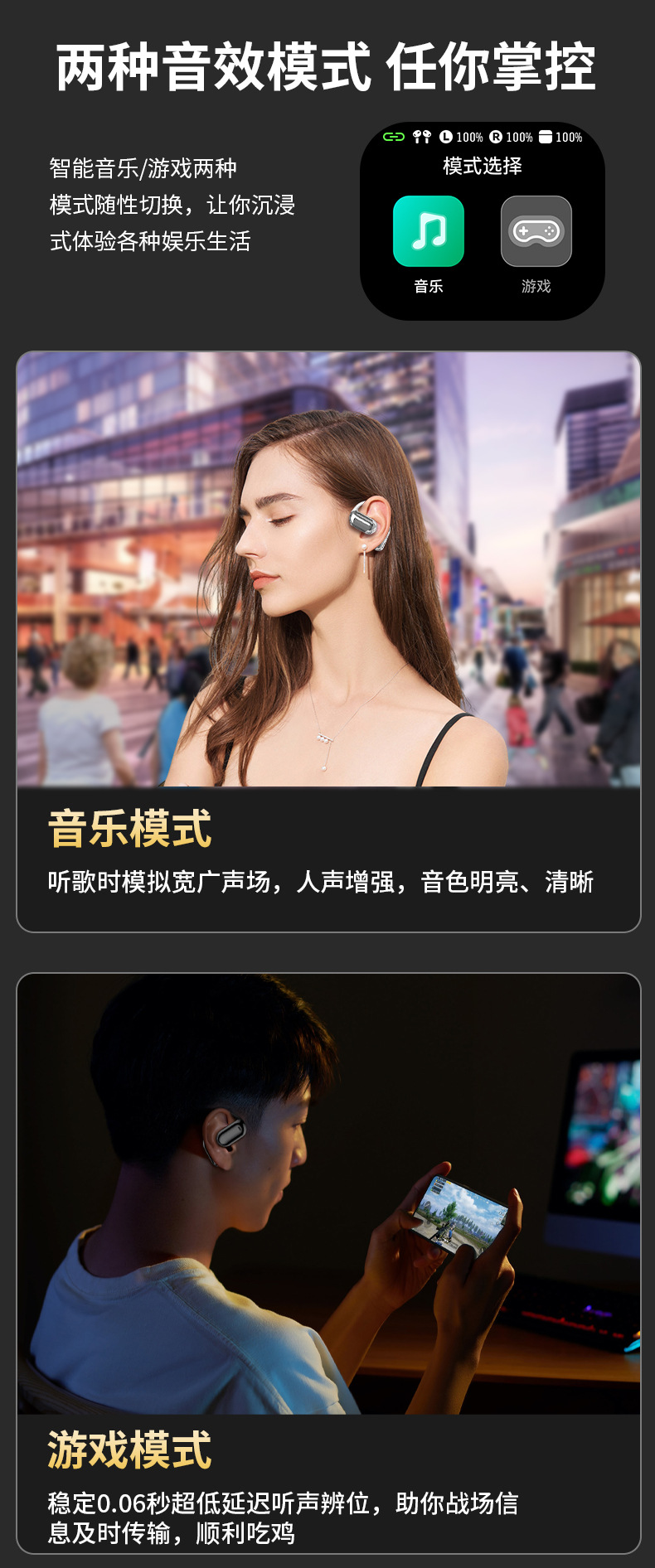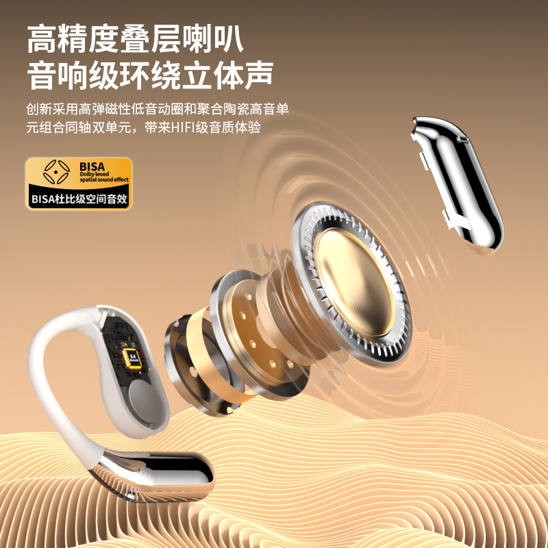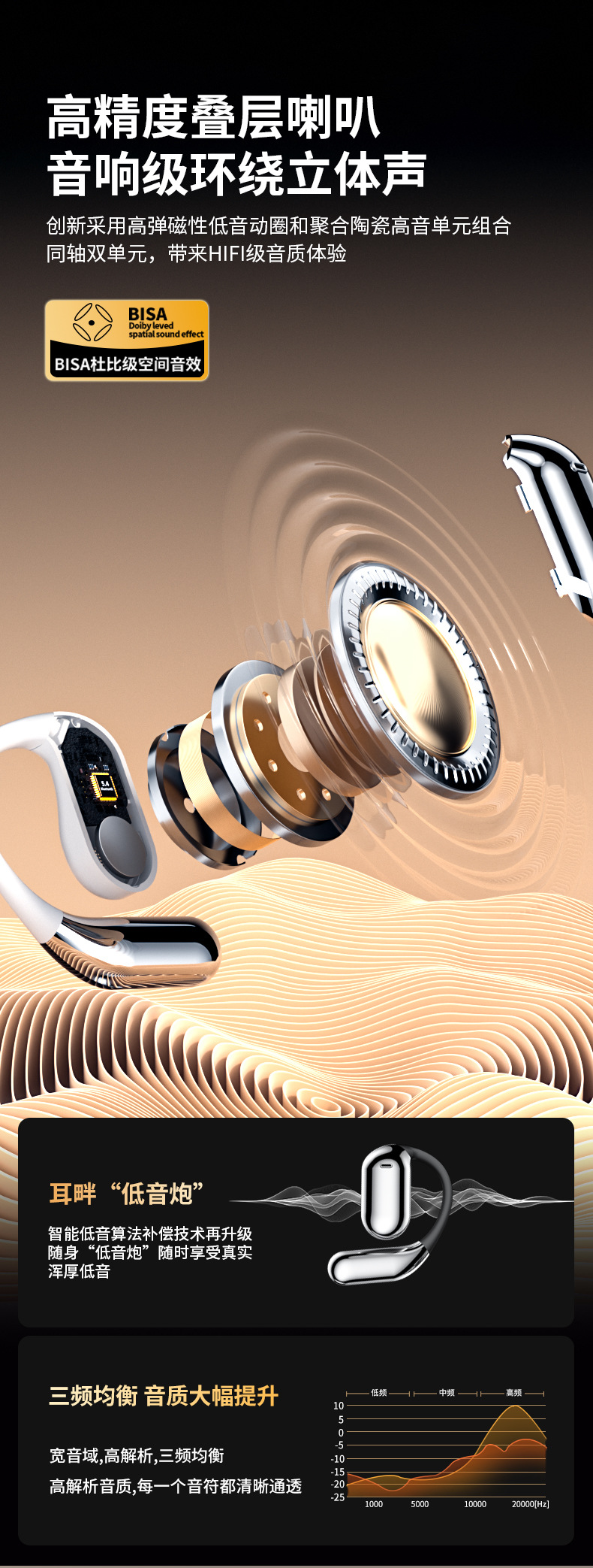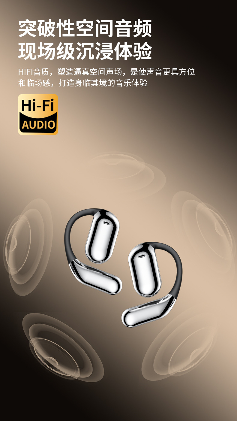 爆款挂耳式LCD彩屏蓝牙耳机开放式不入耳运动无线智能AI翻译耳机